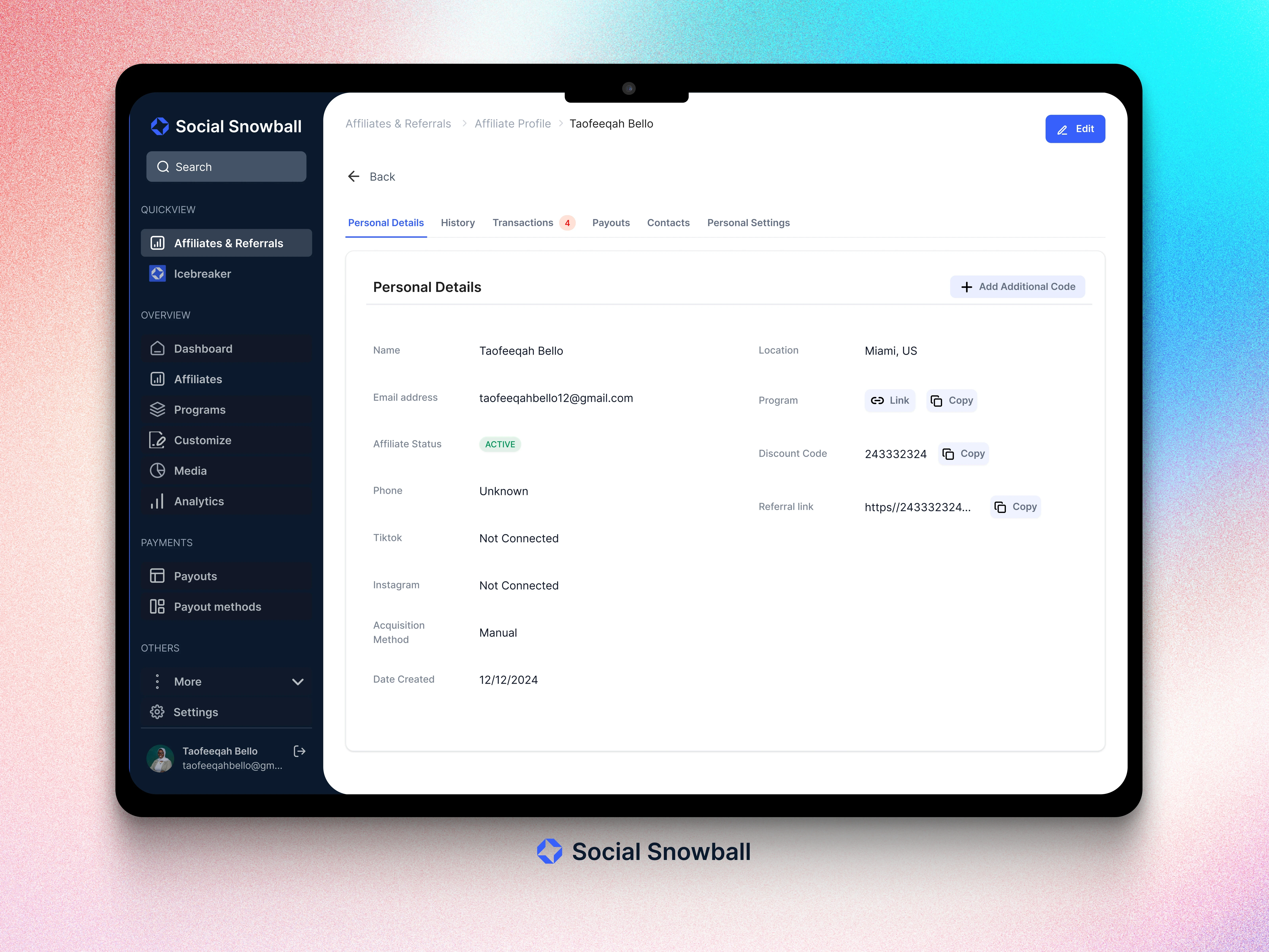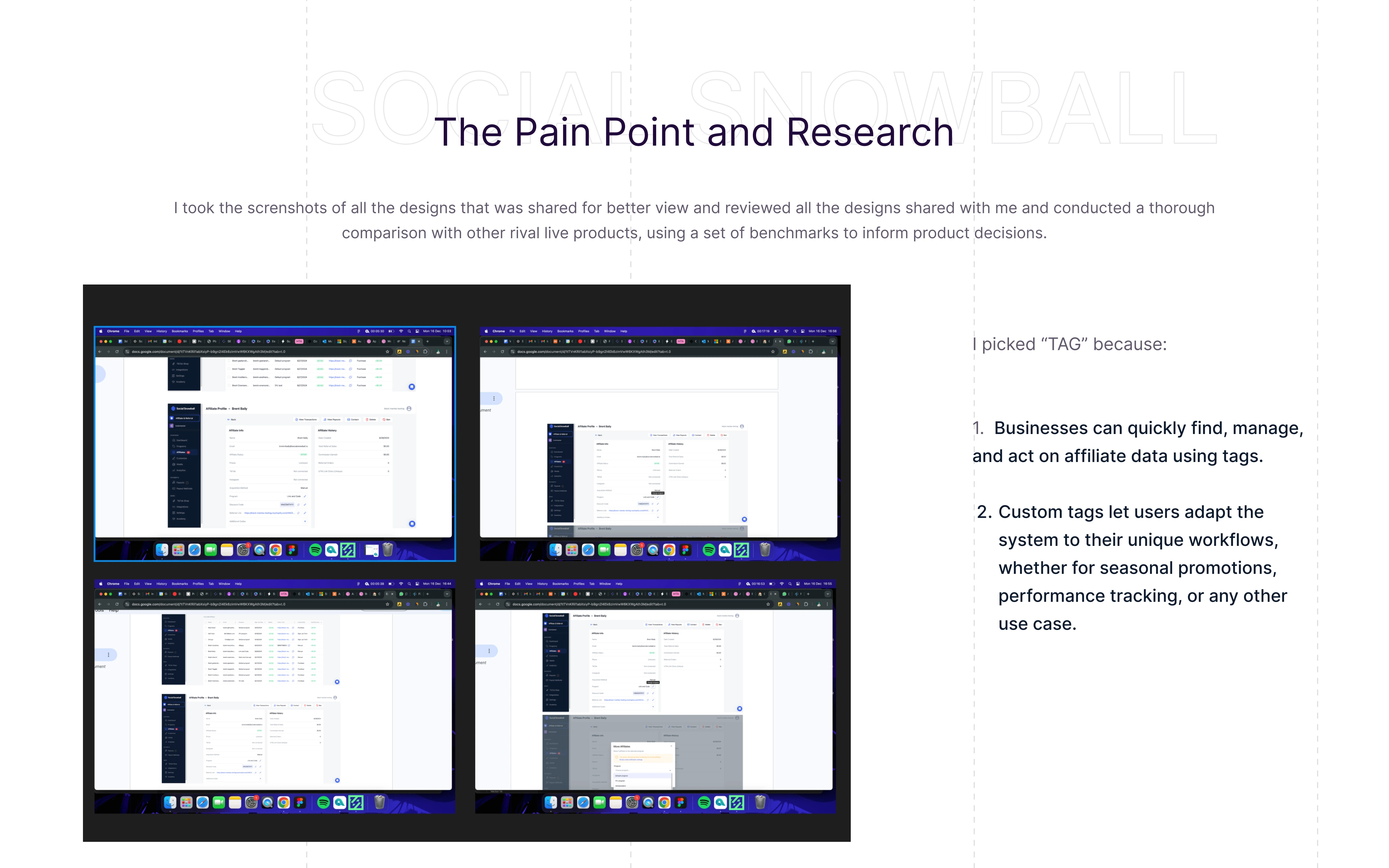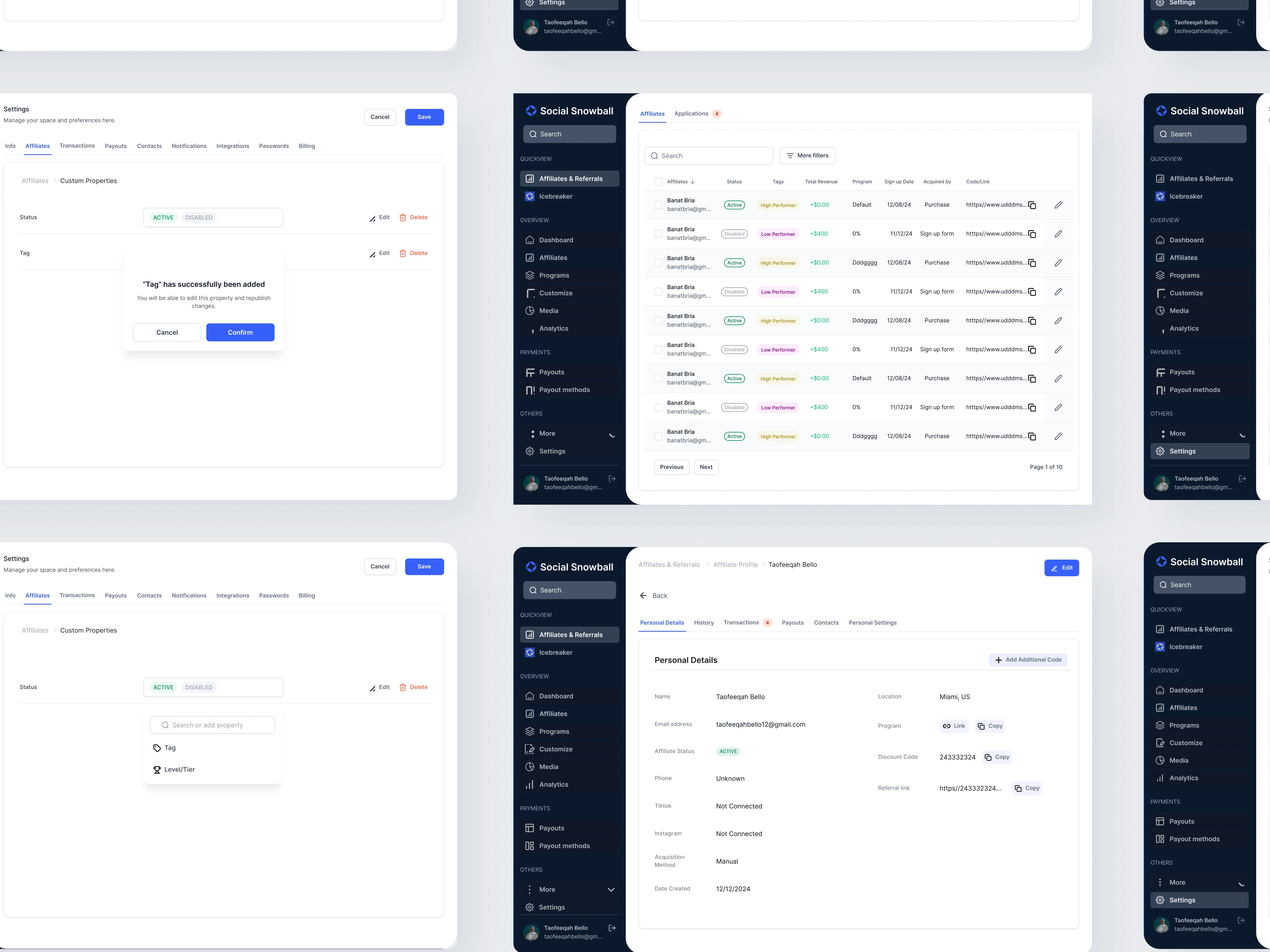 Designed an intuitive feature that empowers businesses to personalize and manage affiliate profiles with custom properties such as tags, tiers, and preferences.