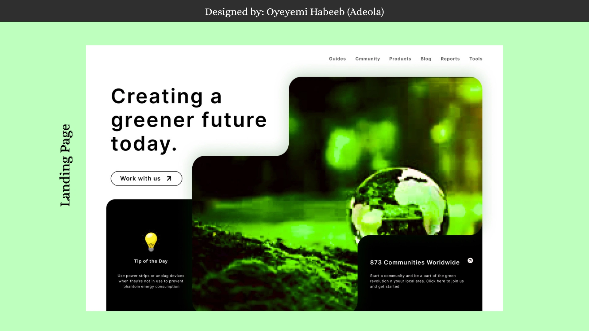 Designed EcoVision landing page in Figma, promoting sustainability with clean layouts, bold visuals, and an engaging call-to-action.