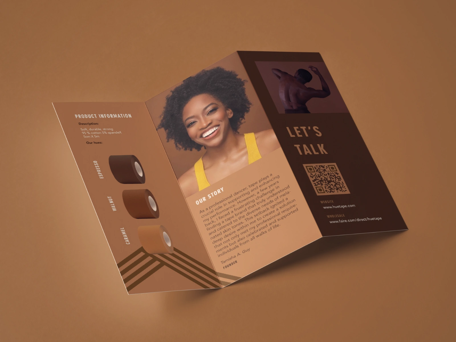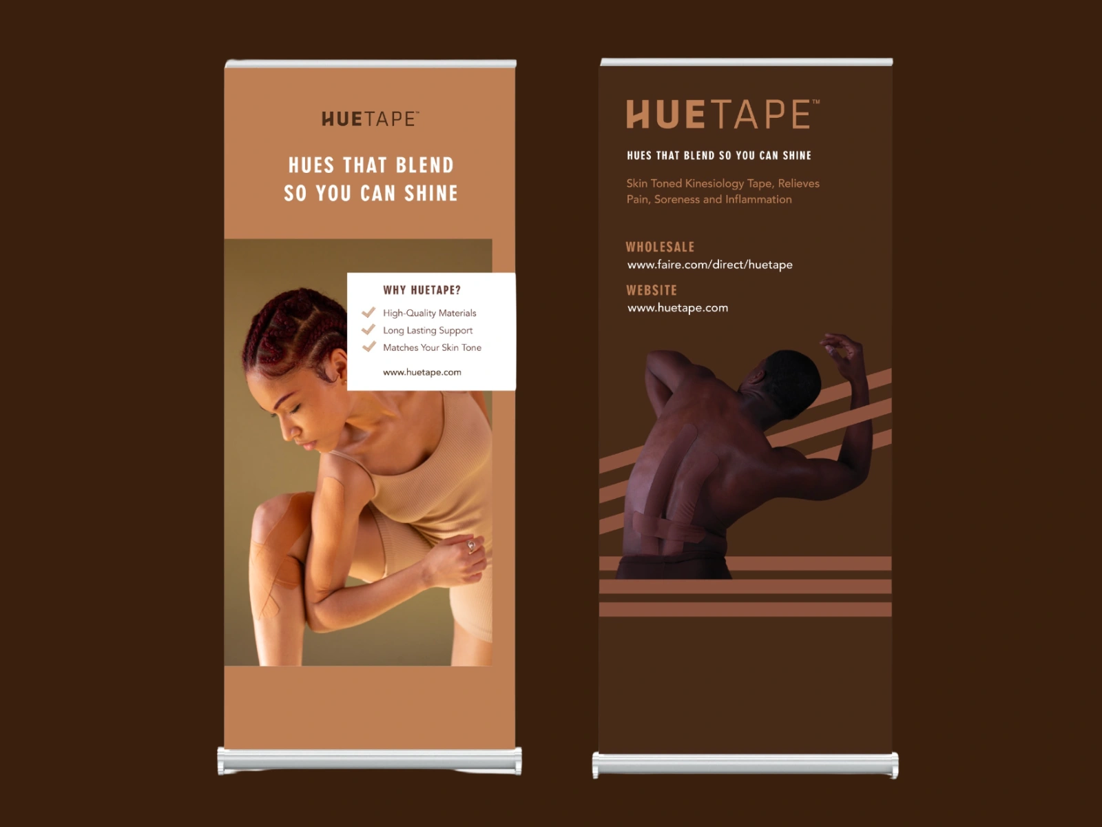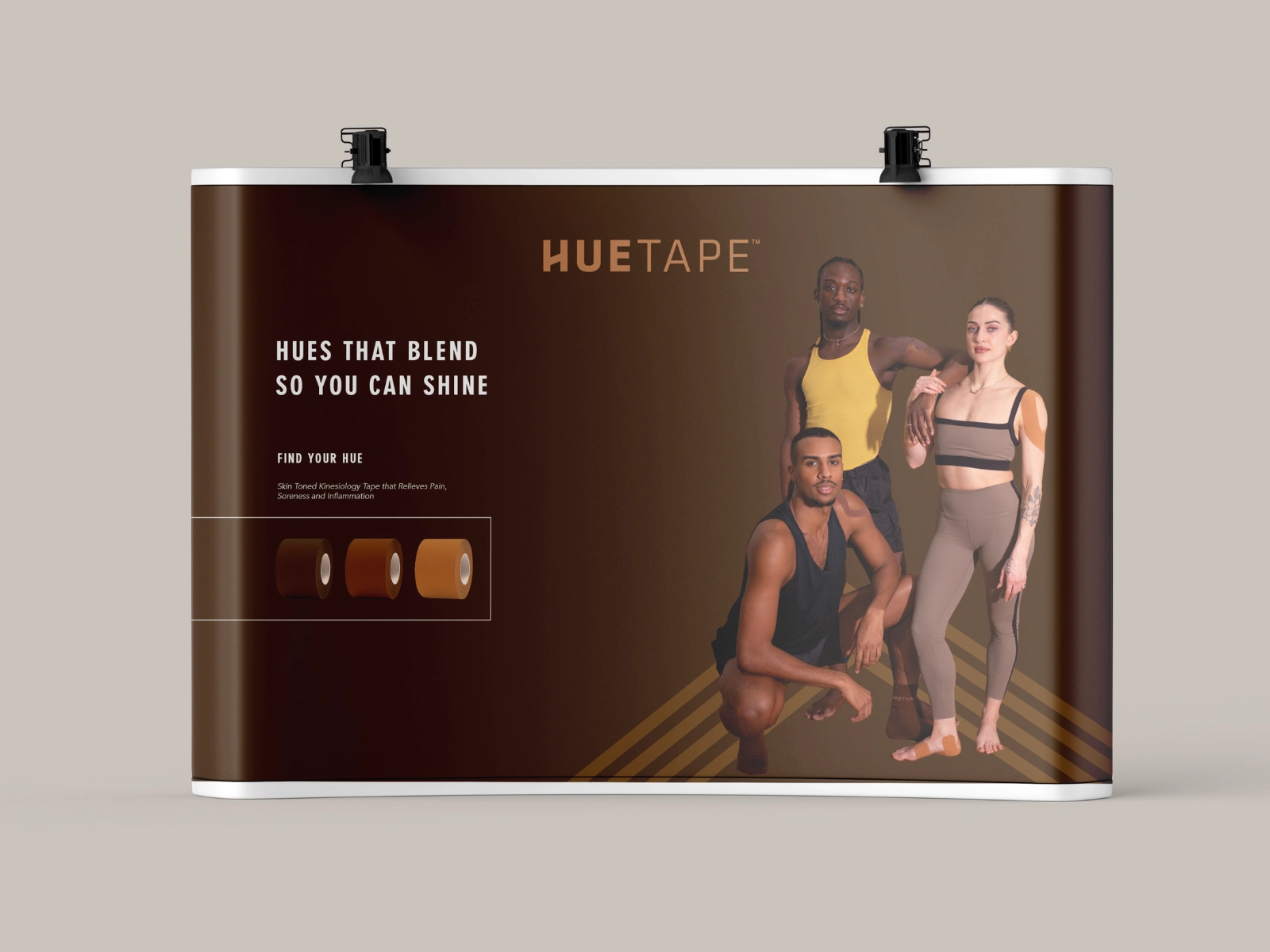 Tradeshow materials for HUETAPE, a performance tape for athletes of different skin tones. I designed a brochure, roll up banners and backdrop.