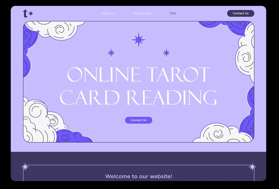 To design an atmospheric and visually engaging landing page for a tarot reader, aimed at attracting clients and presenting online consultation services.