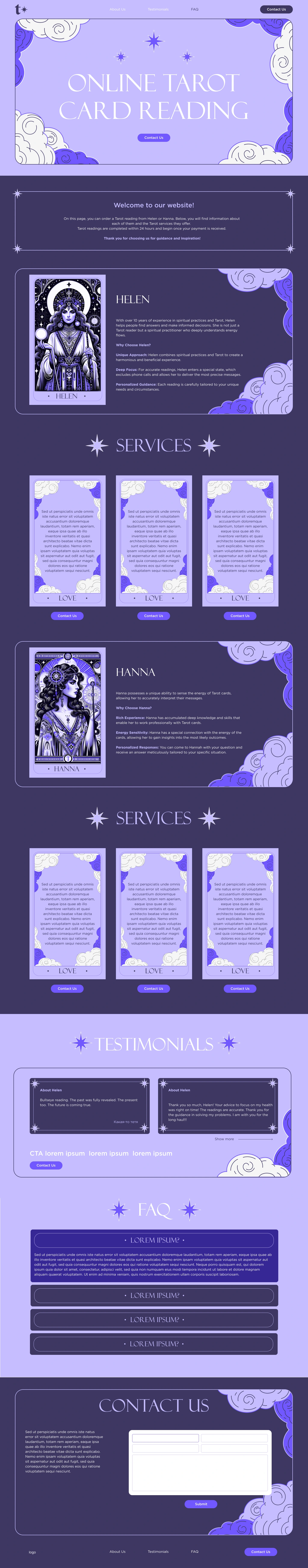 Tarot landing page design in Figma with mystical UI, clear structure, and conversion-focused flow for online reading services.