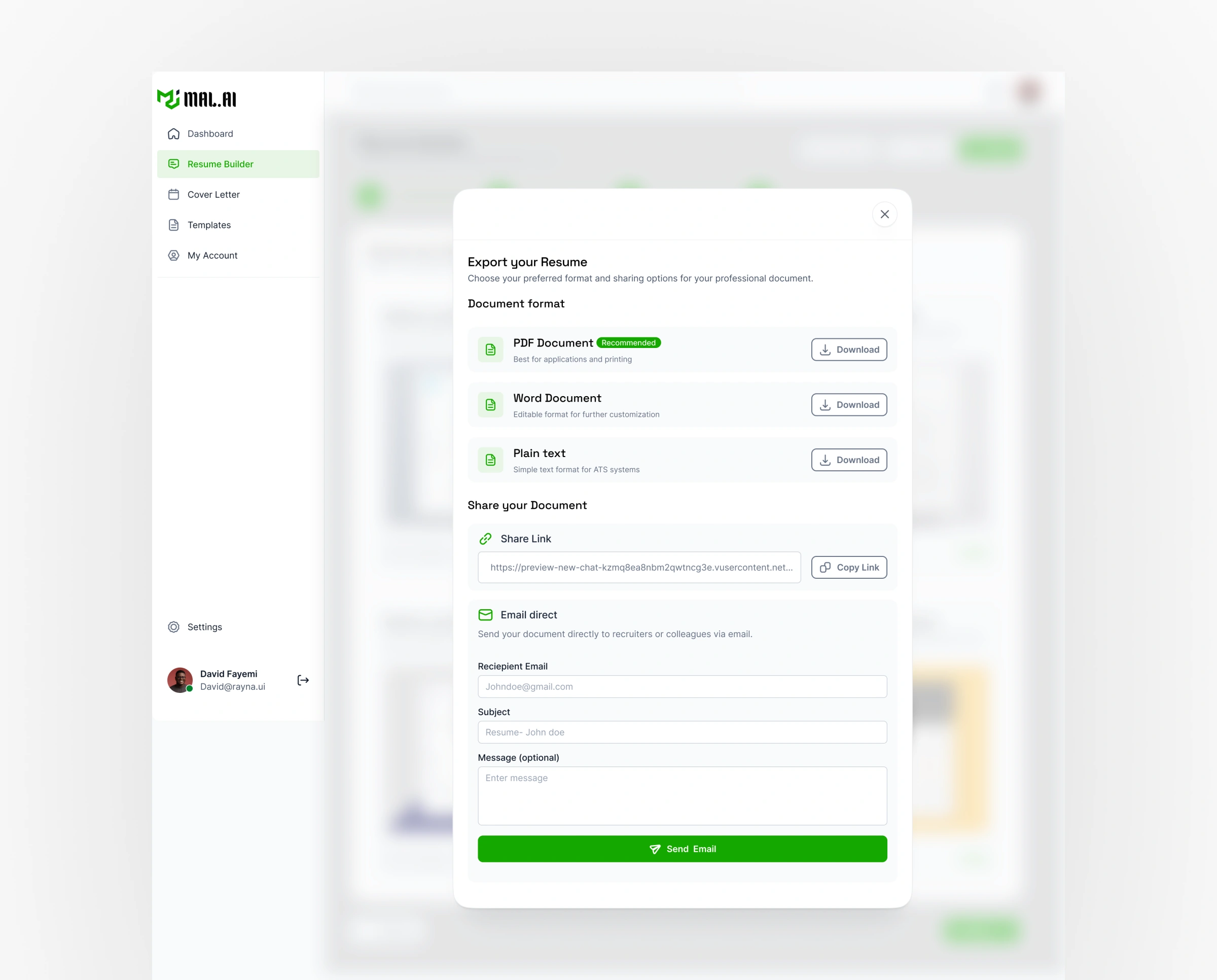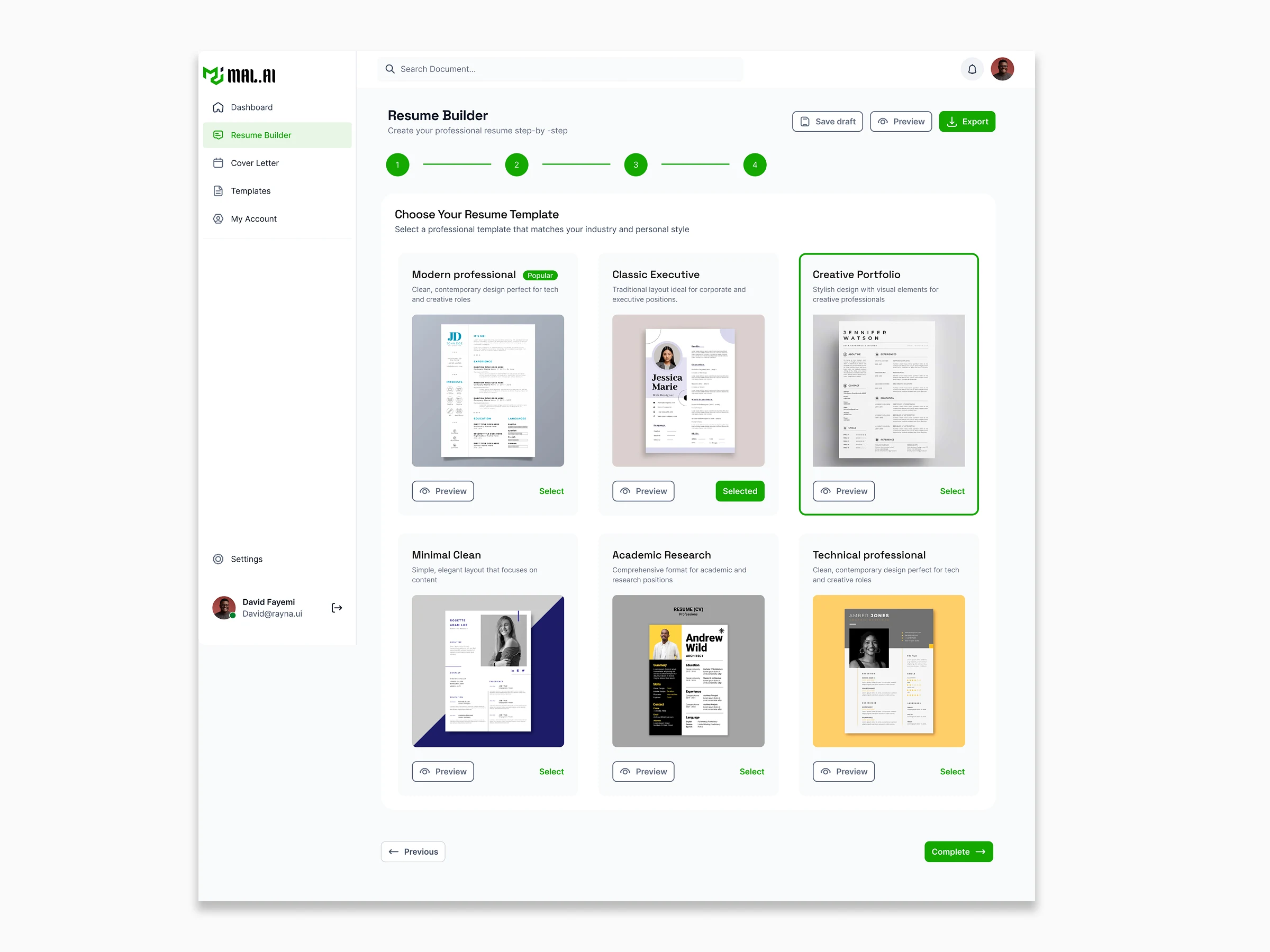 Many applicants struggle to present their skills effectively. They either lack design knowledge, spend too much time formatting, or submit generic applications that don’t stand out to recruiters. The challenge was to design a solution that felt intuitive, professional, and accessible to users of all backgrounds.