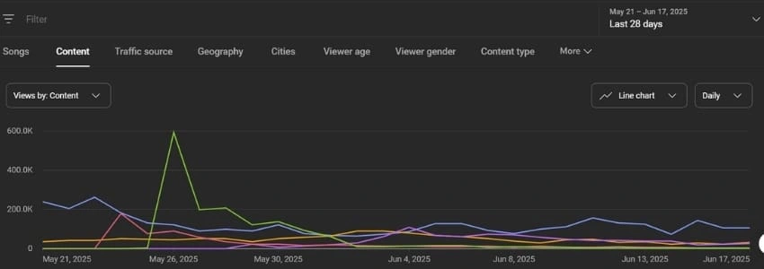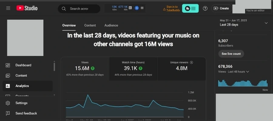 I successfully managed a large-scale YouTube music promotion campaign that resulted in 15.6 million views, 39.1K+ watch hours, and 4.8 million unique viewers within 28 days. The campaign was focused on distributing client music across various niche channels using targeted strategies, SEO optimization, and audience behavior insights. Using advanced YouTube Studio analytics, I tracked and optimized content performance, ensuring consistent growth and increased visibility. I also collaborated with music channels to feature the content organically, achieving high engagement and viral traction.