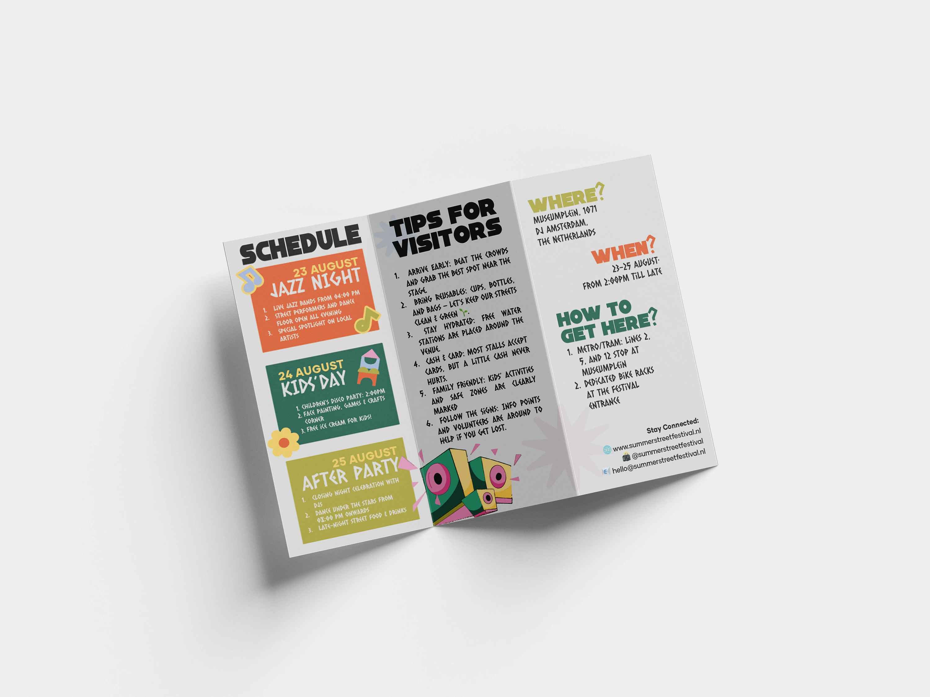 My goal was to capture the feeling of the festival in a visual way. I wanted to mix bold, abstract shapes, playful typography, and vibrant, clashing colors. The mix of modern photography with retro illustrations gave me the perfect balance of old and new, which is a key part of the festival's unique identity.