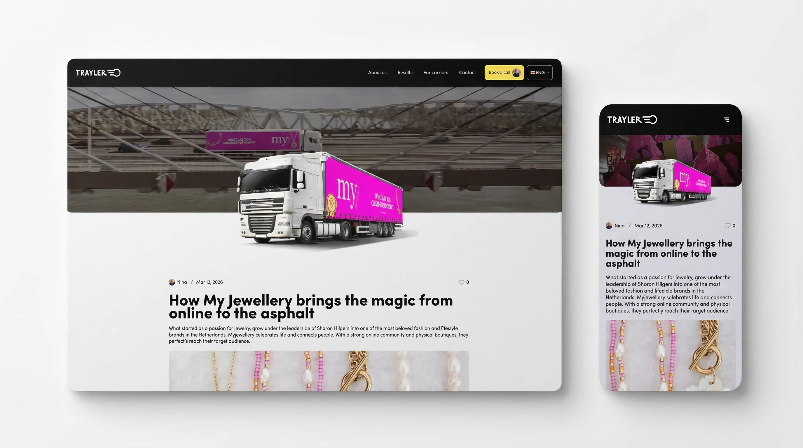 Traylerhttps://www.trayler.eu/ is a specialized marketing agency focused on "Trailermade Advertising," a modern take on Out-of-Home (OOH) media. The company transforms standard transport trucks into high-impact "Moving Billboards," allowing brands to reach millions of road users across the Netherlands, Belgium, and wider Europe.
