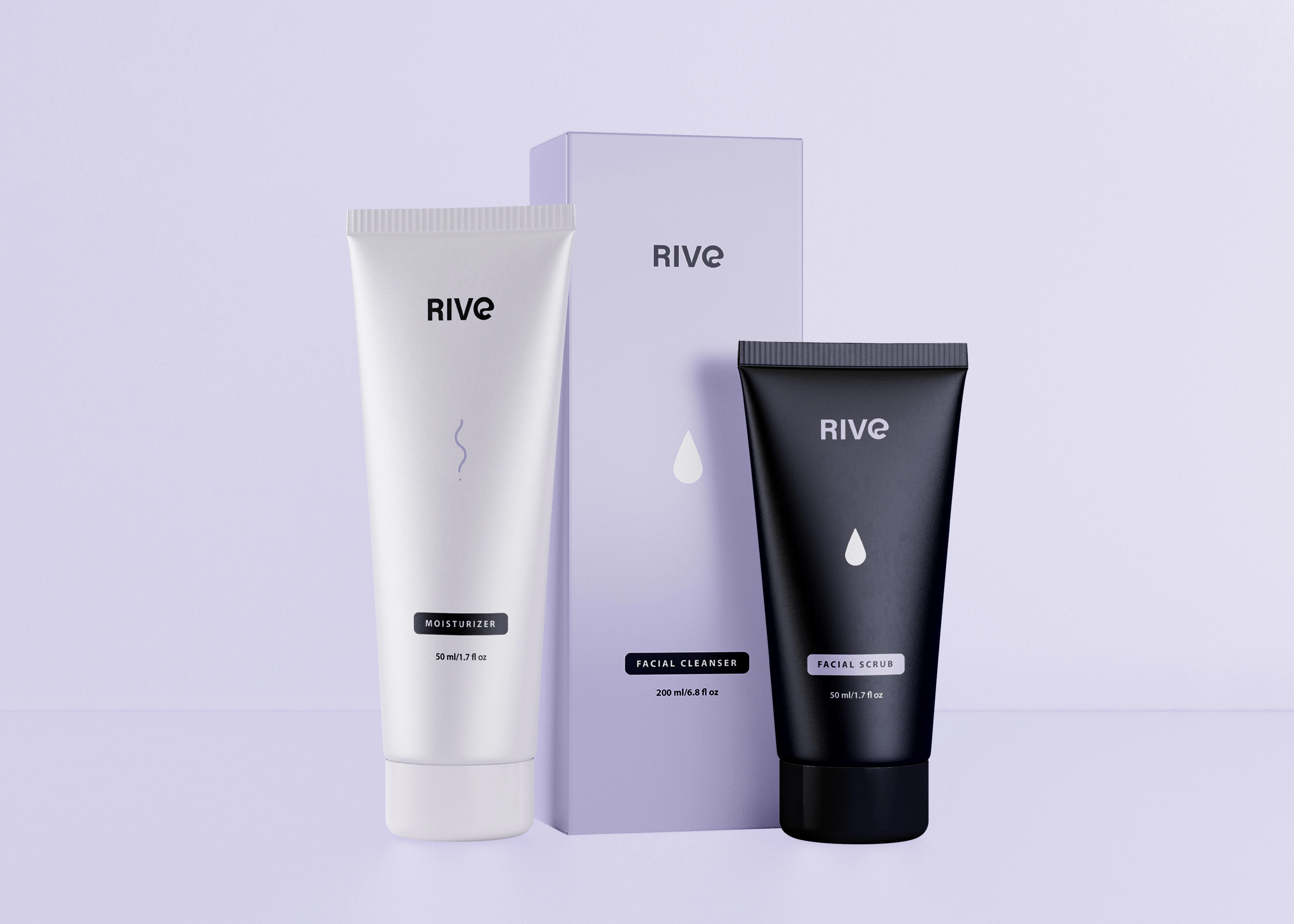 Rive's visual identity communicates its promise of gentle yet effective skincare for women with sensitive skin.