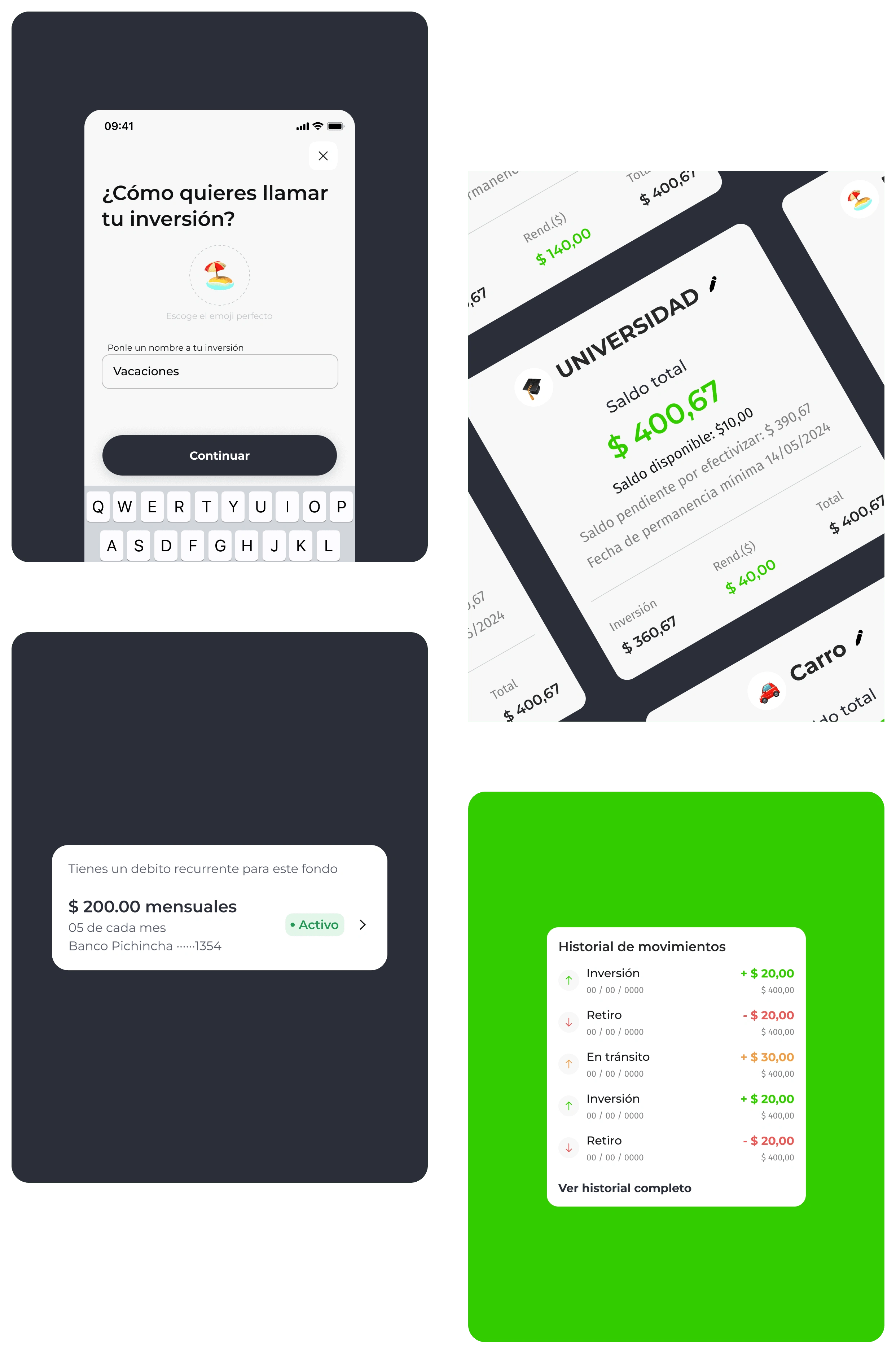 The main goal was to define the products and flows to ensure that users are clear about how and how much to invest according to their needs, offering them products with different percentages of performance and retention time.