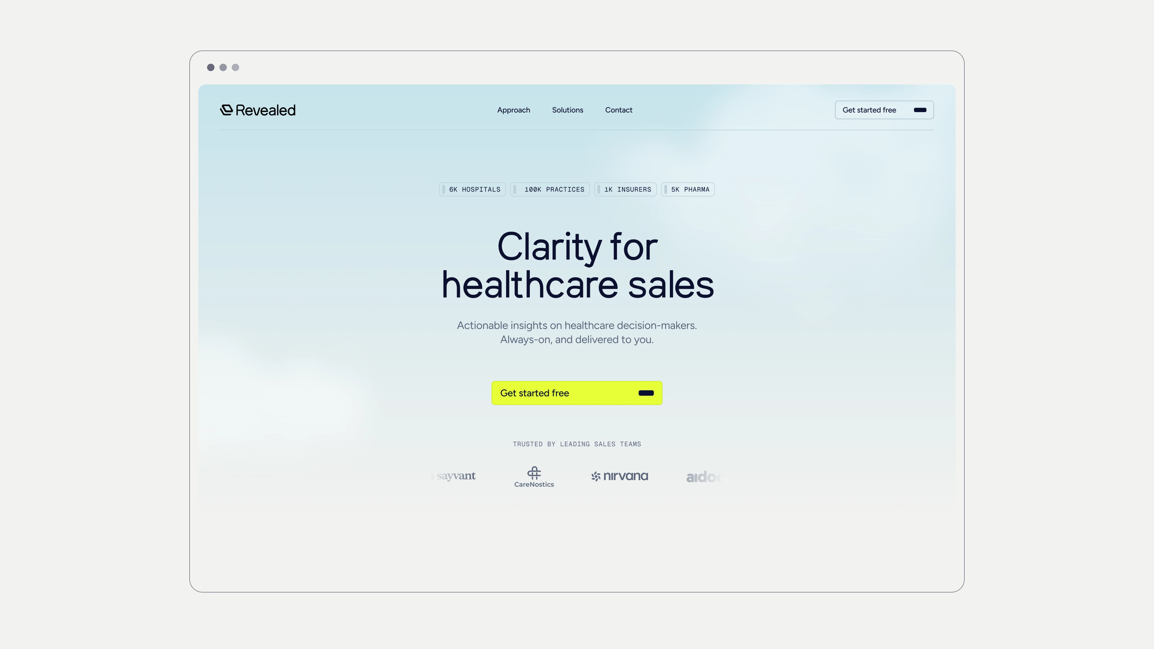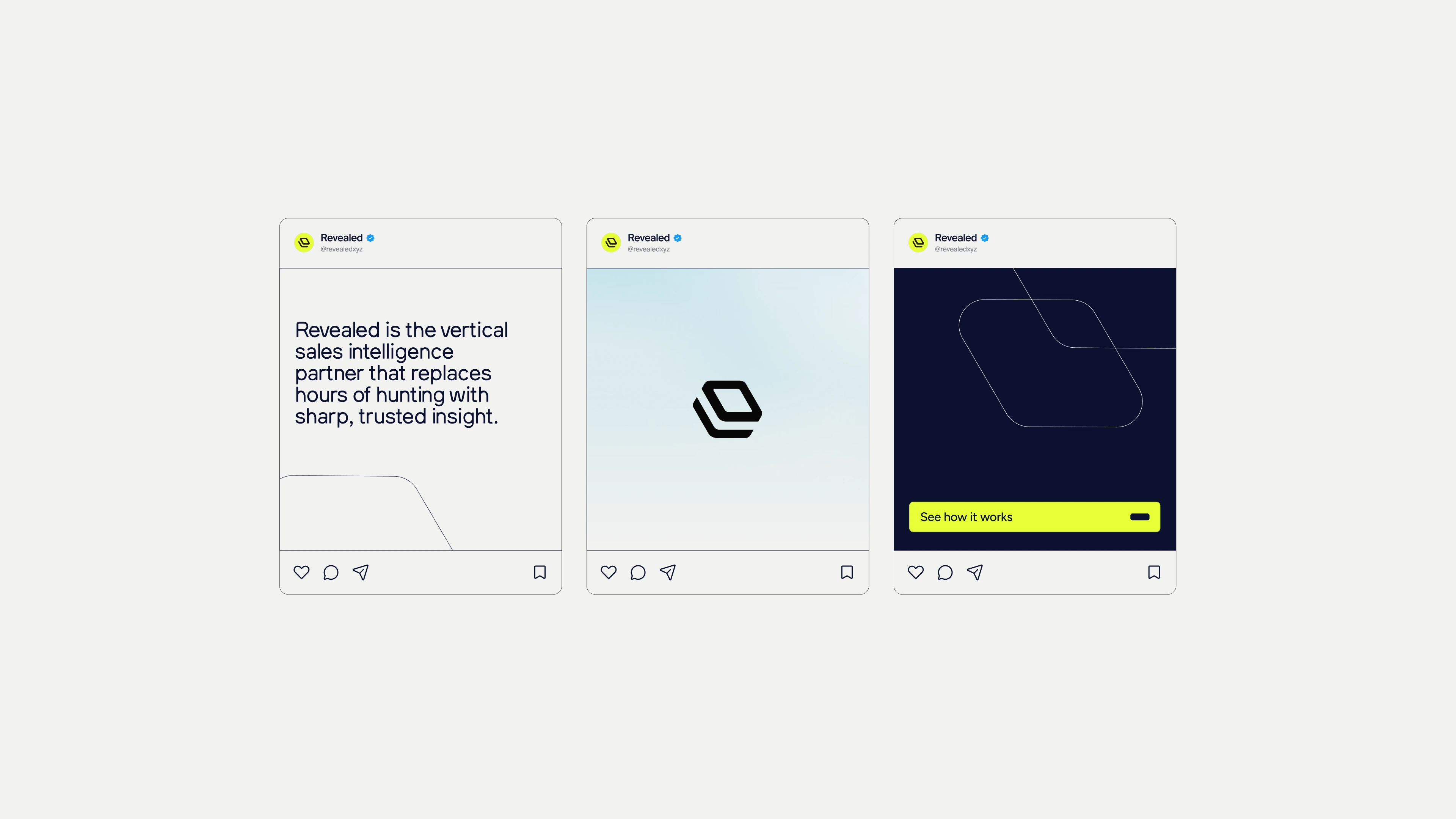 Complete brand identity and website for Revealed, built around a layered visual system expressing clarity, precision, and enterprise credibility.