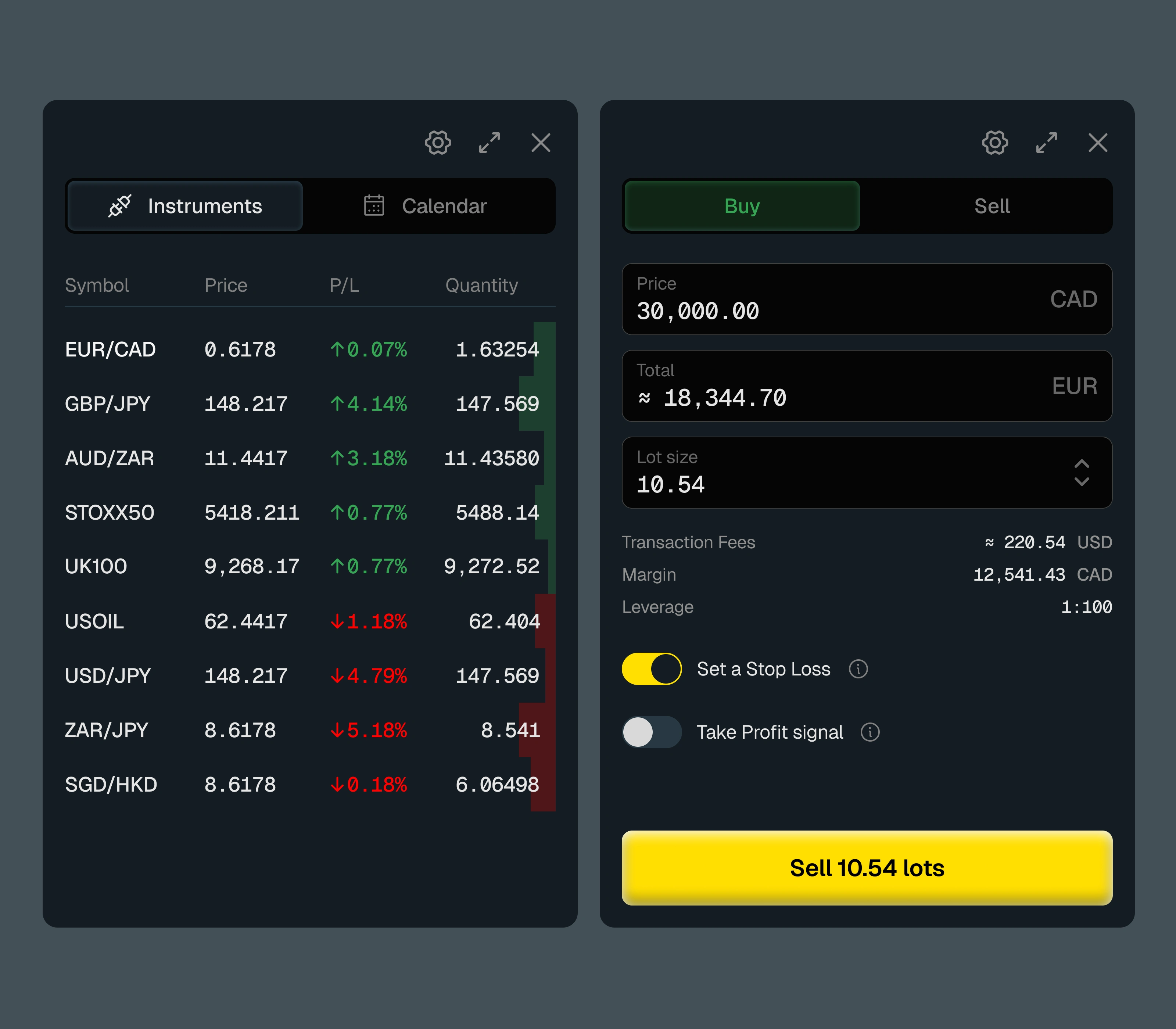 Redesign on Exness' web-based trading terminal