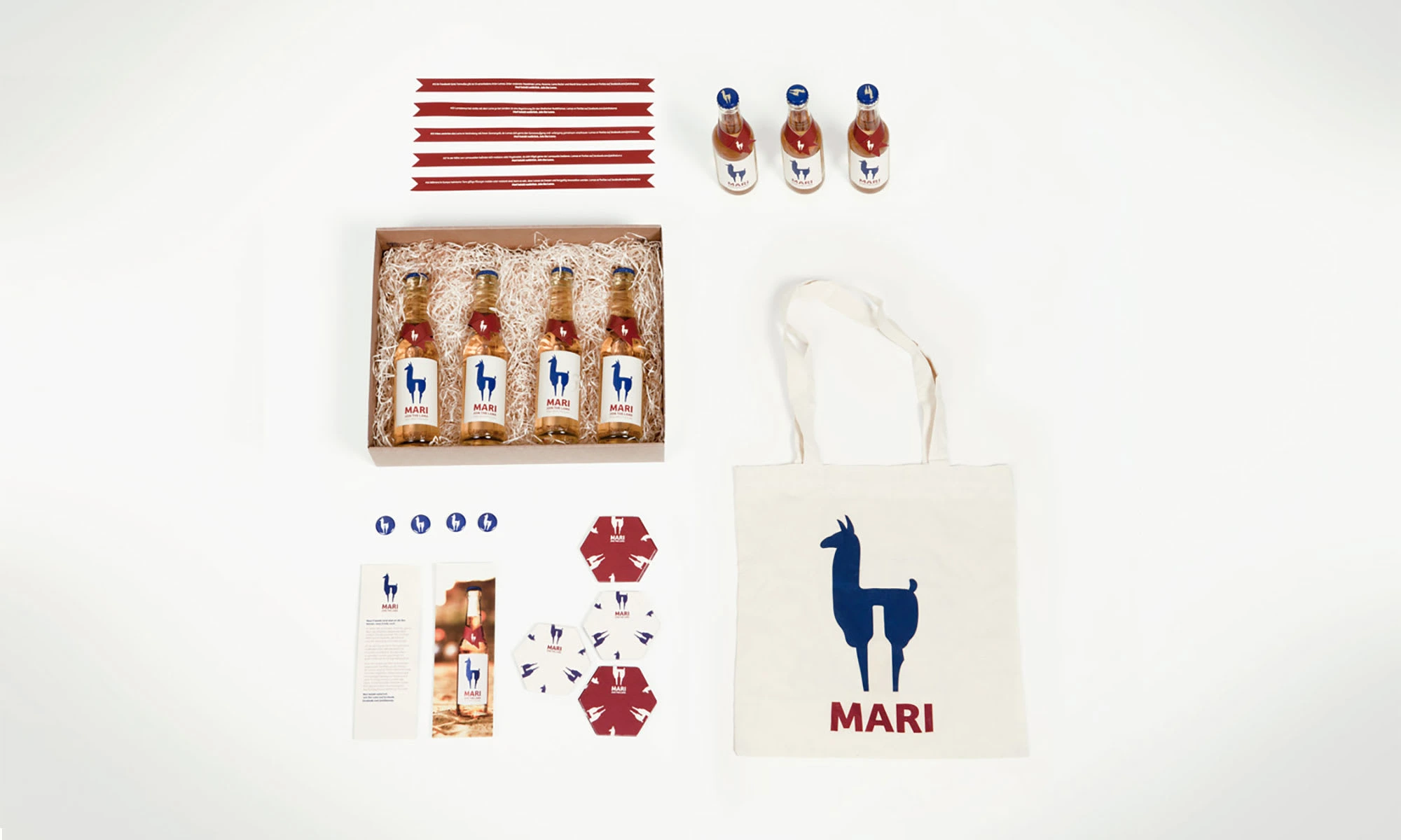 Mari is a unique wine-cocktail blend of mate, wine, and elderflower. A distinctive brand identity was developed, featuring eye-catching packaging and engaging promotional materials. The llama, a playful symbol of Mari’s South American and European heritage, adds a touch of whimsy to the brand. Over two years, the flavor range was expanded, marketing materials were created, and social media was managed to drive brand awareness and sales.