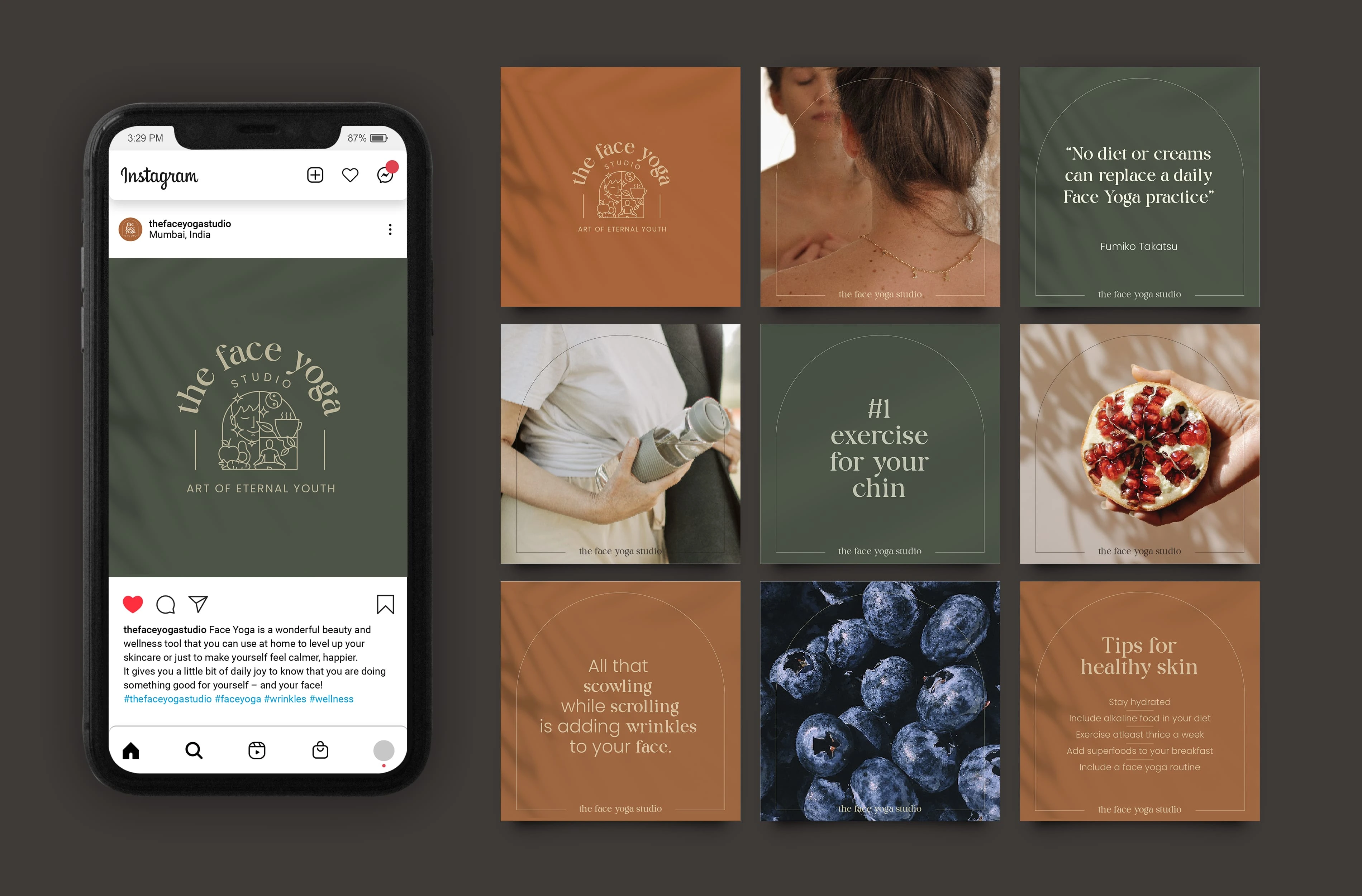 Designed an intricate logo with the elements essential for face yoga with an indie feel, which gives a unique and a clean and lifted feel to brand