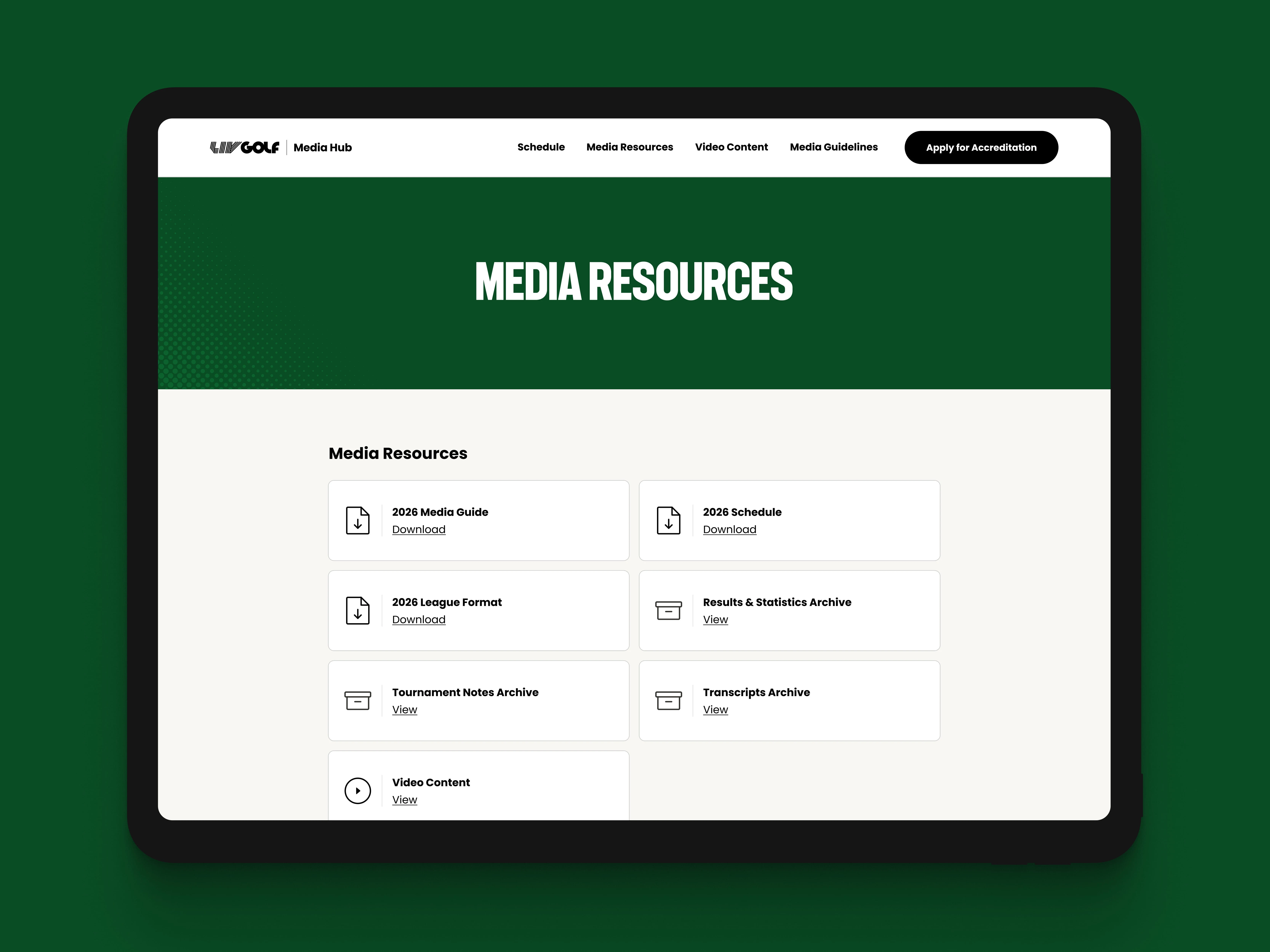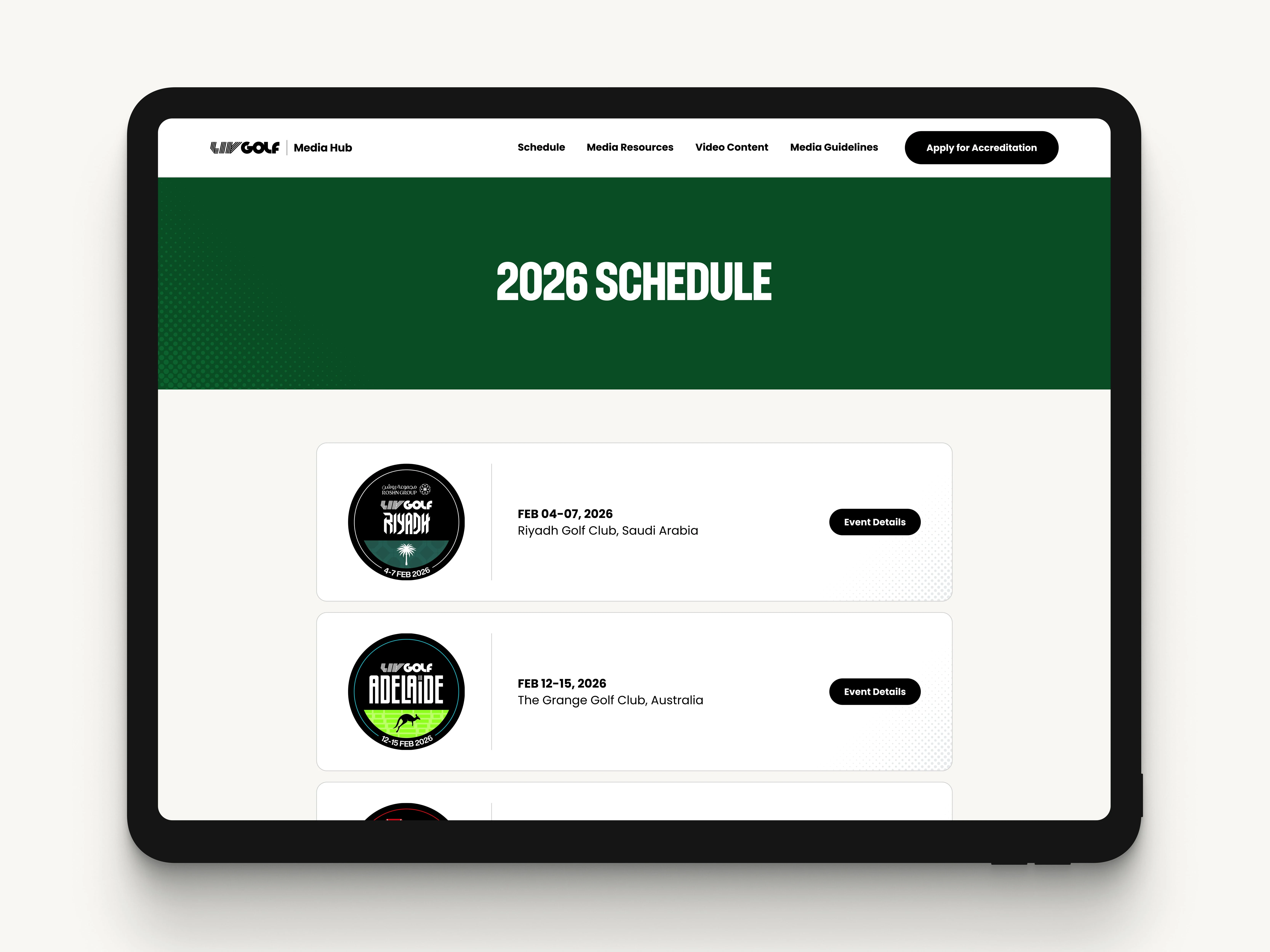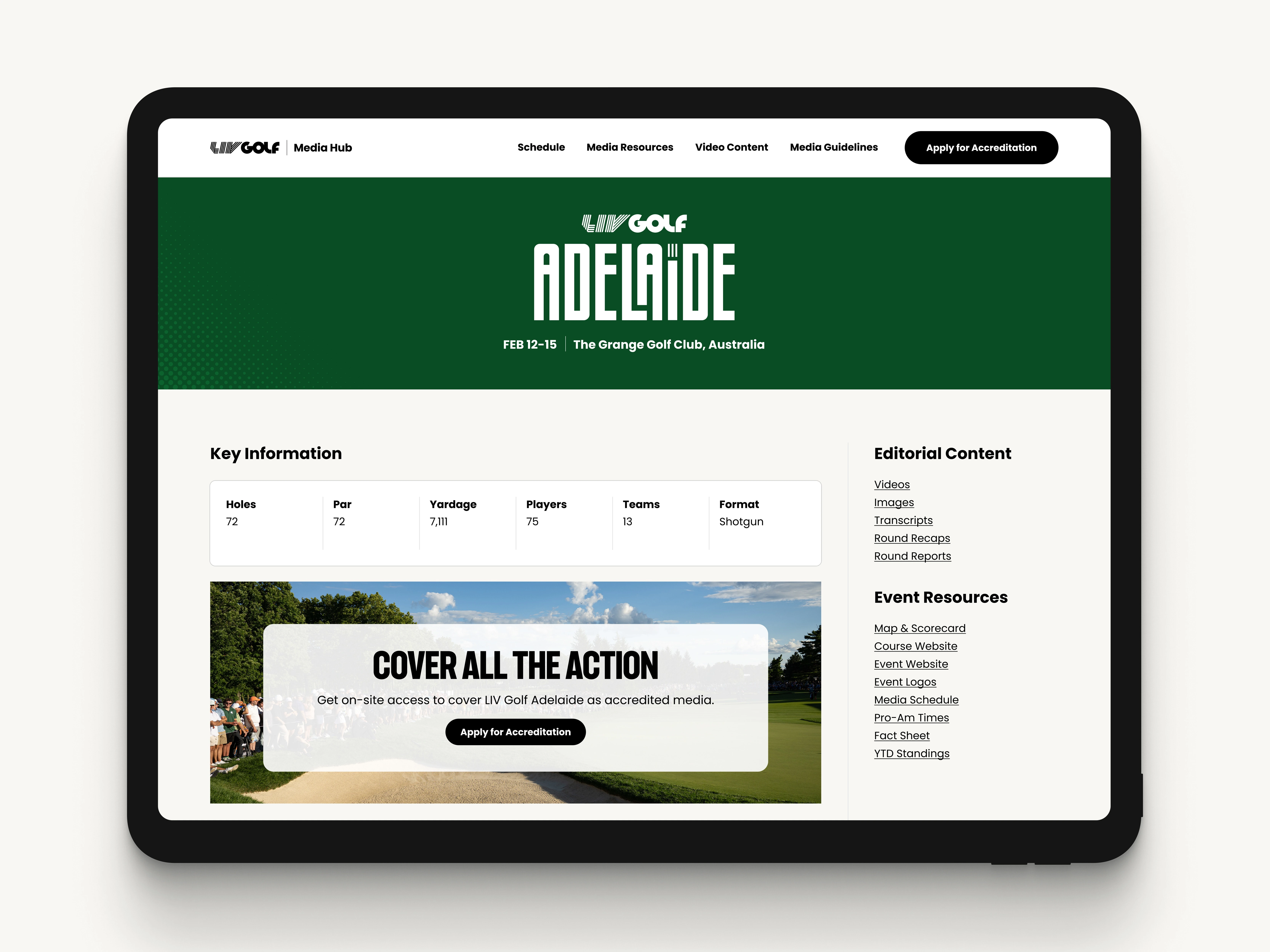 LIV Golf is a global professional golf league operating a multi-event international calendar, with a team-based format and worldwide broadcast coverage. Its Media Hub sits at the center of the league’s media operations, serving accredited journalists, broadcasters, and communications teams who rely on it to access content, schedules, assets, and resources. As the league expanded its footprint and reach, the platform, originally built in Wix, became a primary source of information during live tournament cycles, placing increased pressure on how information was structured, updated, and maintained.