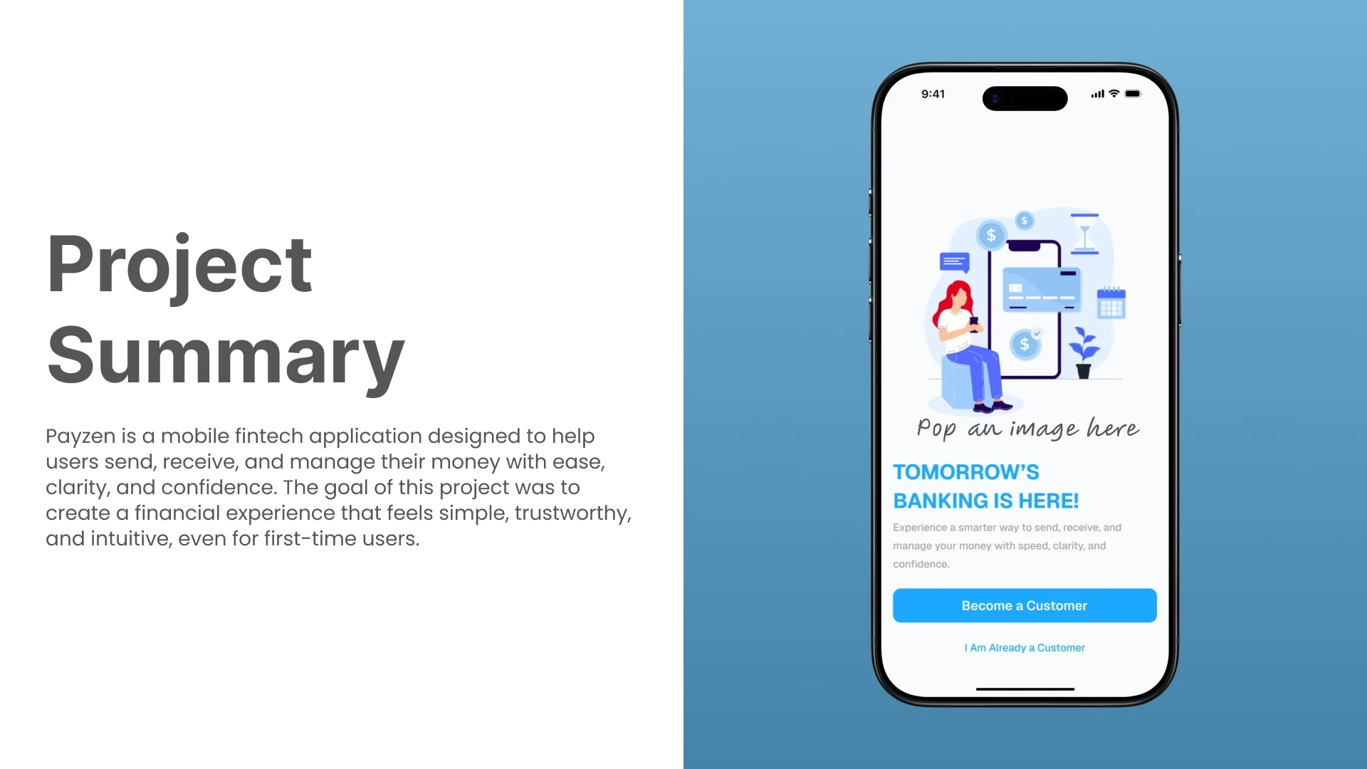 Payzen is a mobile fintech application designed to help users send, receive, and manage their money with ease, clarity, and confidence. The goal of this projec…