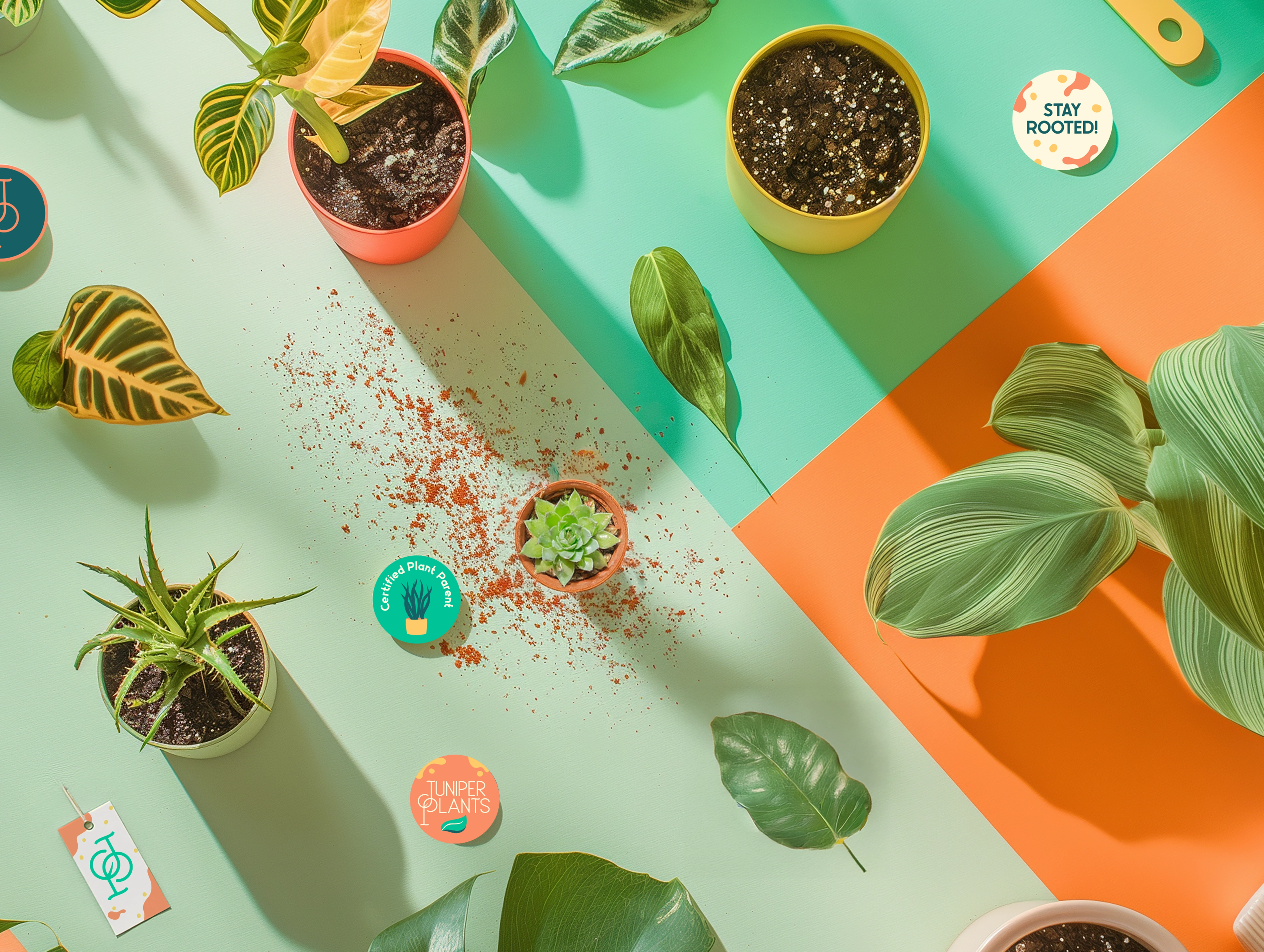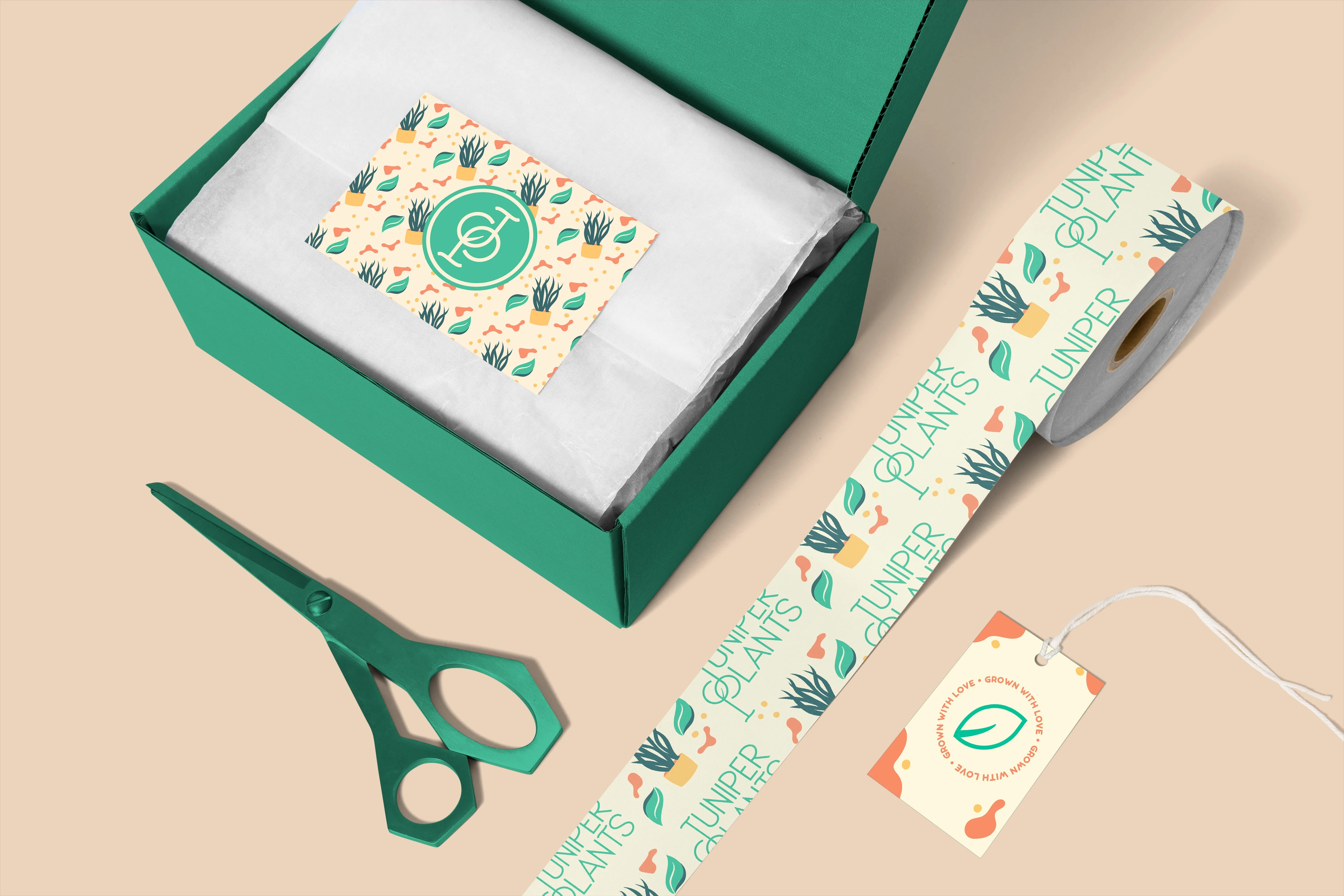 I developed a lively visual identity built around playful shapes, hand-drawn patterns, and a warm, sun-washed color palette inspired by fresh soil and leafy greens. A circular monogram adds structure and balance, while the mix of teal and orange tones keeps the system bold, friendly, and full of personality. Every piece from care tags and aprons to packaging and social assets, was crafted to feel approachable, joyful, and unmistakably Juniper.