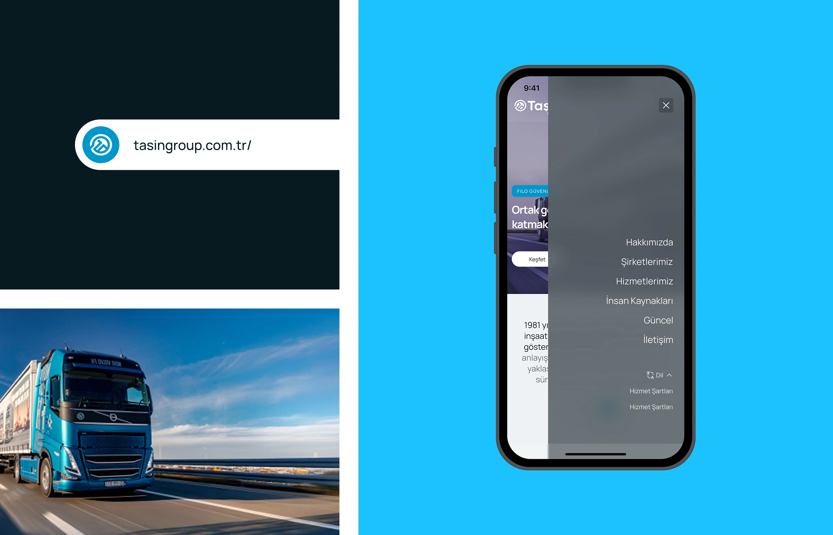 Designed a modern B2B website for Taşın Group, focusing on clarity, strong brand visuals, and a structure that highlights their logistics services.