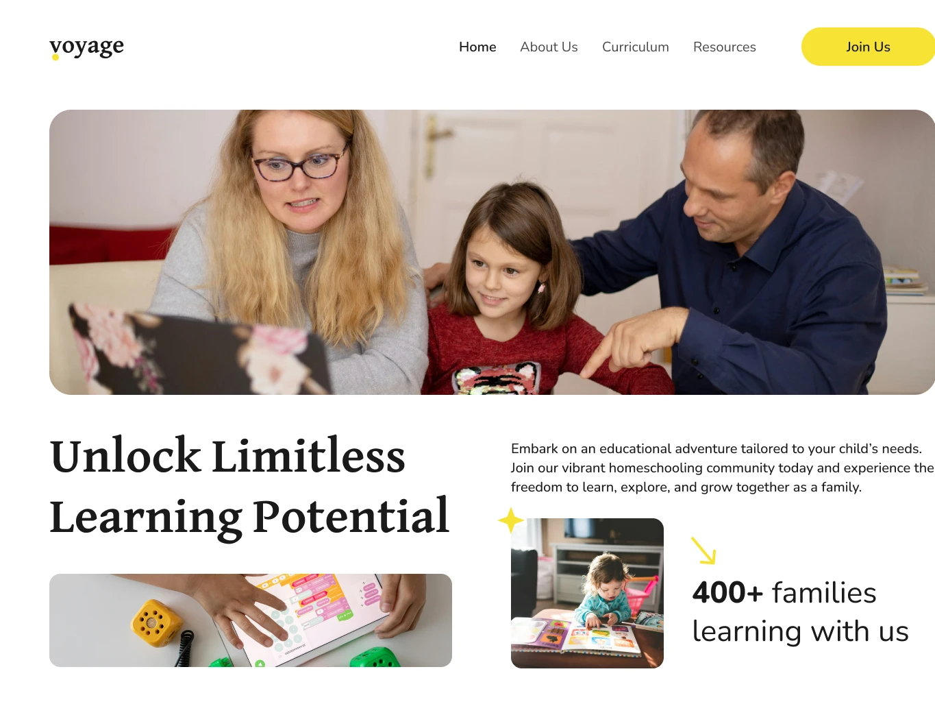 A focused landing page designed to attract and convert homeschooling parents by showcasing flexible learning, trusted teachers, and easy sign-up.