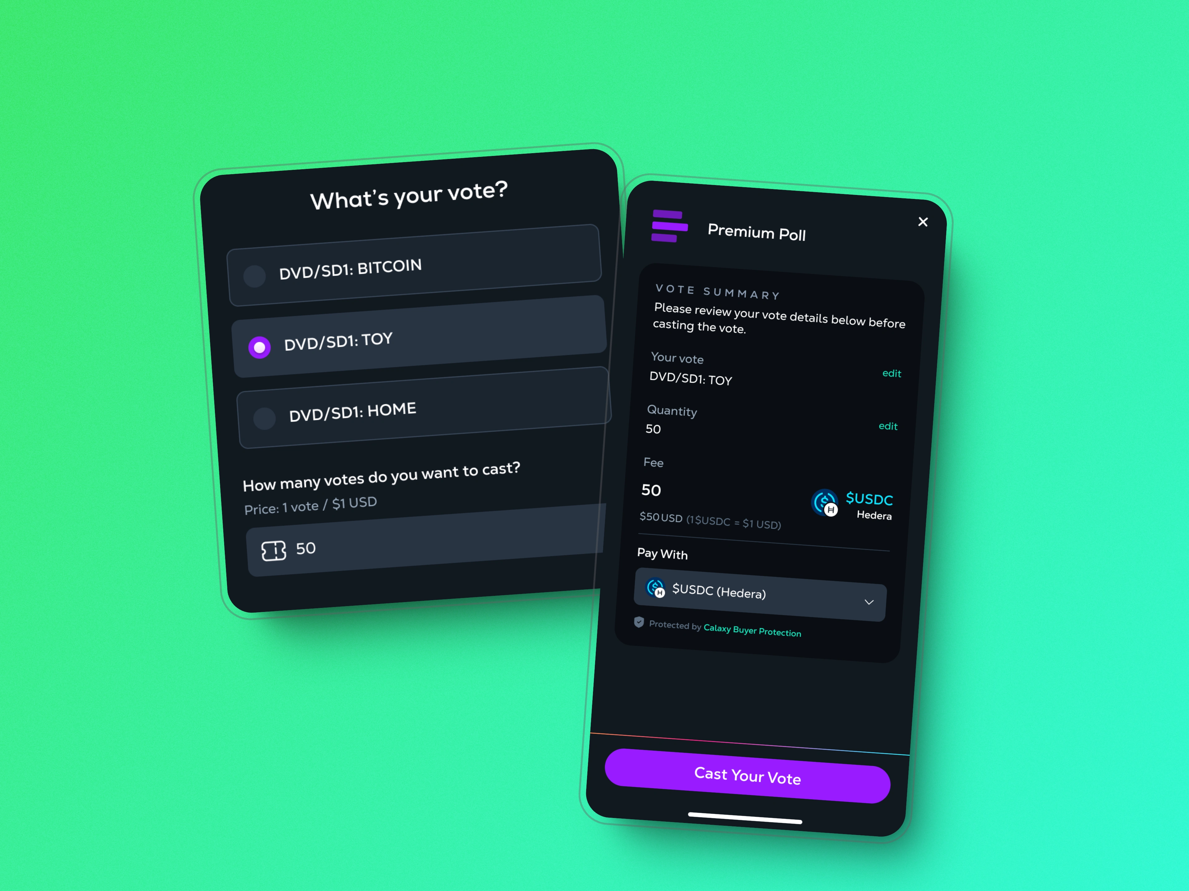 Designed a paid polls feature for Calaxy's blockchain social app — UX prototype enabling token-based voting with USDC payments. Built in Figma & ProtoPie.