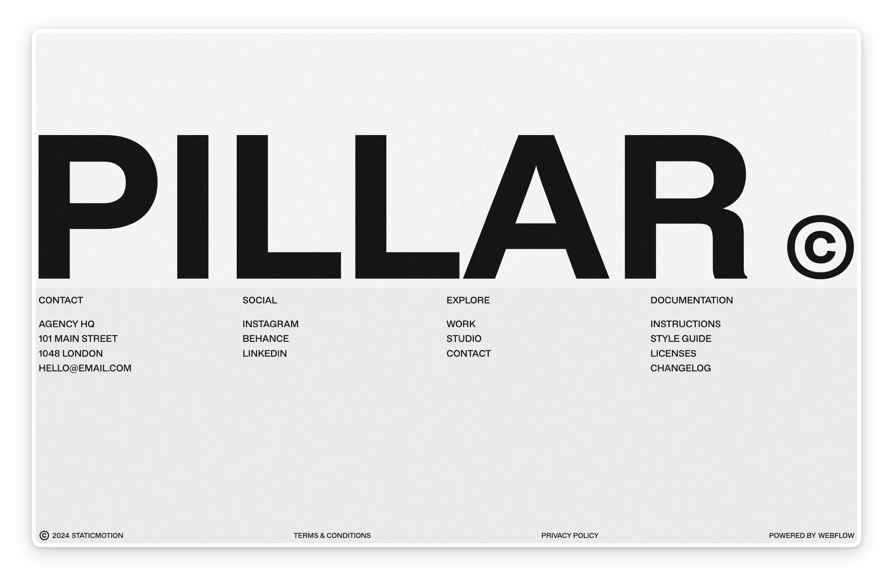 Pillar is a bold Webflow project with a modern, light design system, built to help agencies and freelancers showcase their work with impact and clarity.