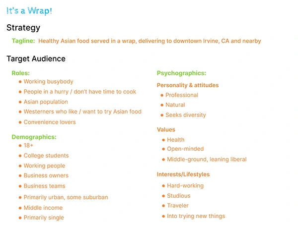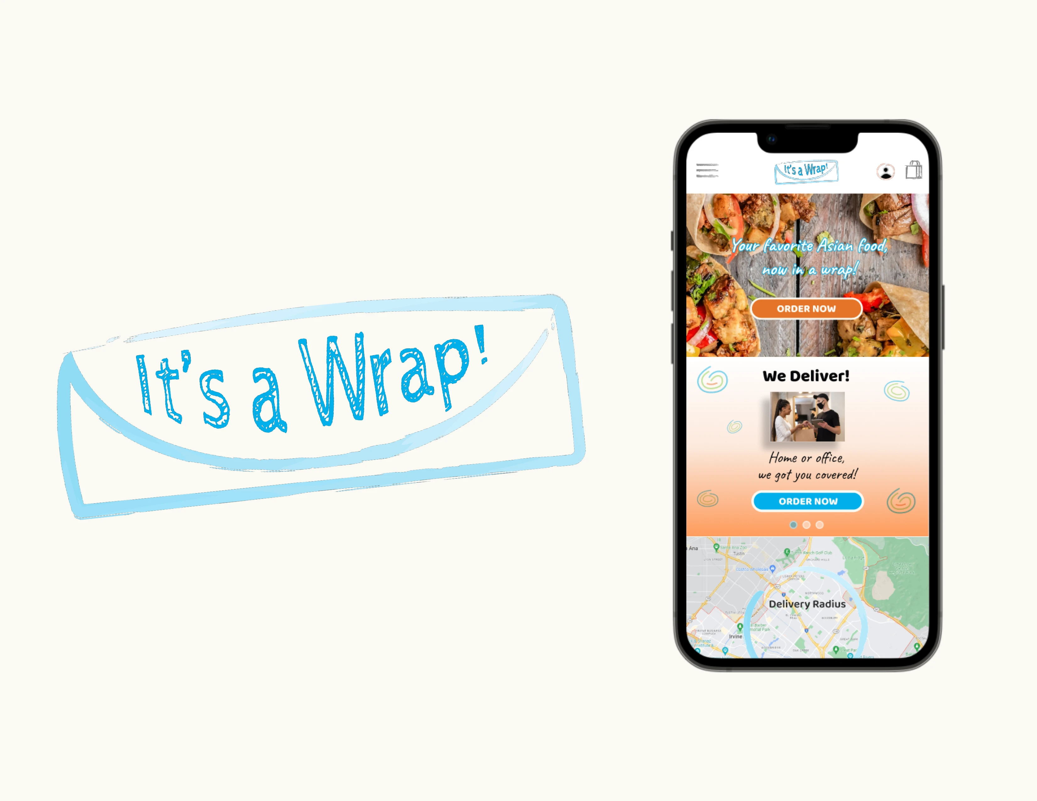 App / website for a make-believe restaurant featuring a unique style of serving different Asian dishes in a wrap.
