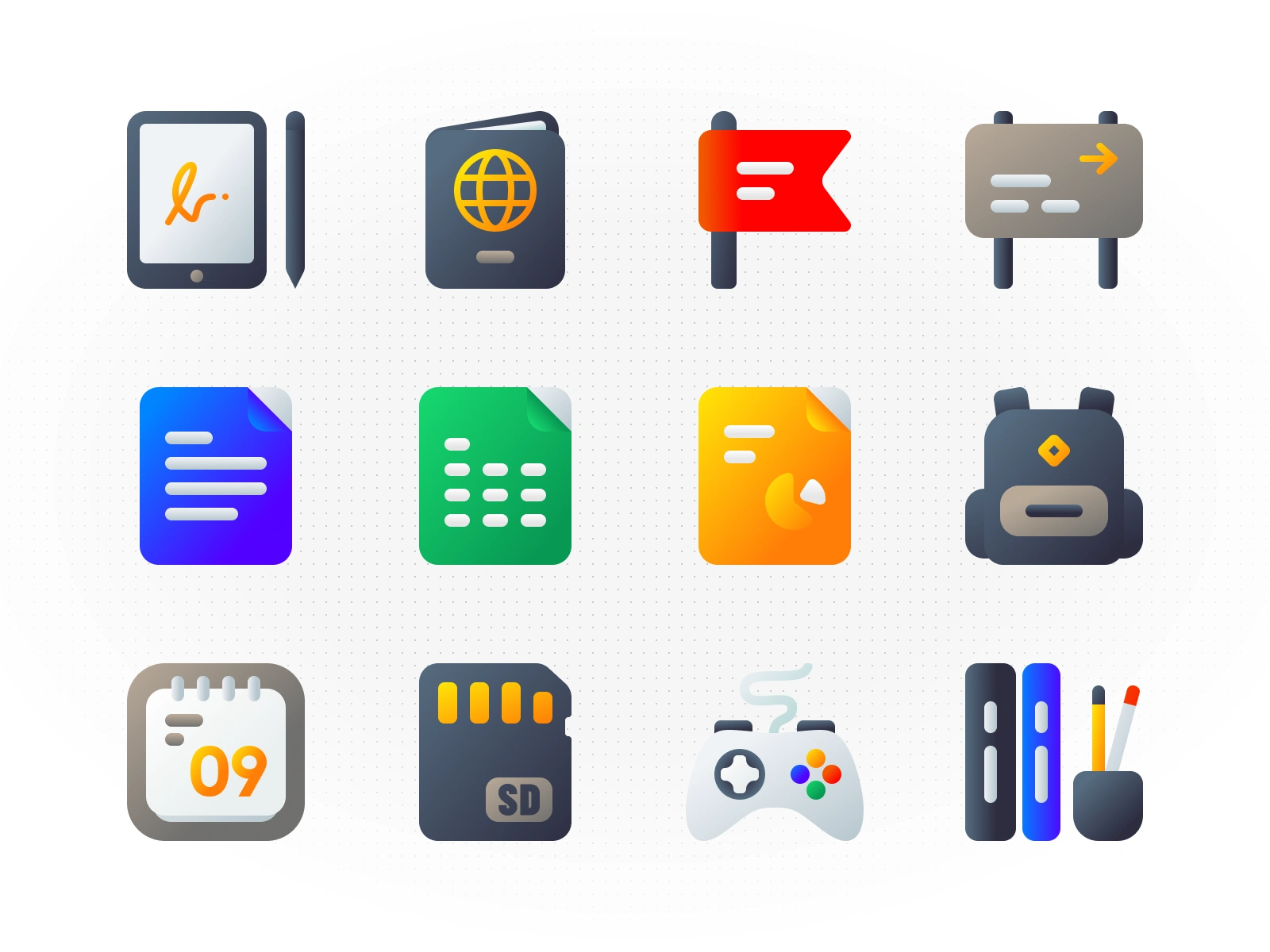 A set of miscellaneous icons designed to fit a wide range of categories, can be use for dashboards, apps, websites, and more. The collection includes icons for productivity, finance, media, shopping, tech, fitness, and everyday tools. Each icon is crafted with a modern, vibrant style that keeps things both functional and visually appealing. Whether you're building a feature-rich app or designing an intuitive interface, this set adds that extra polish and consistency to help bring everything together.