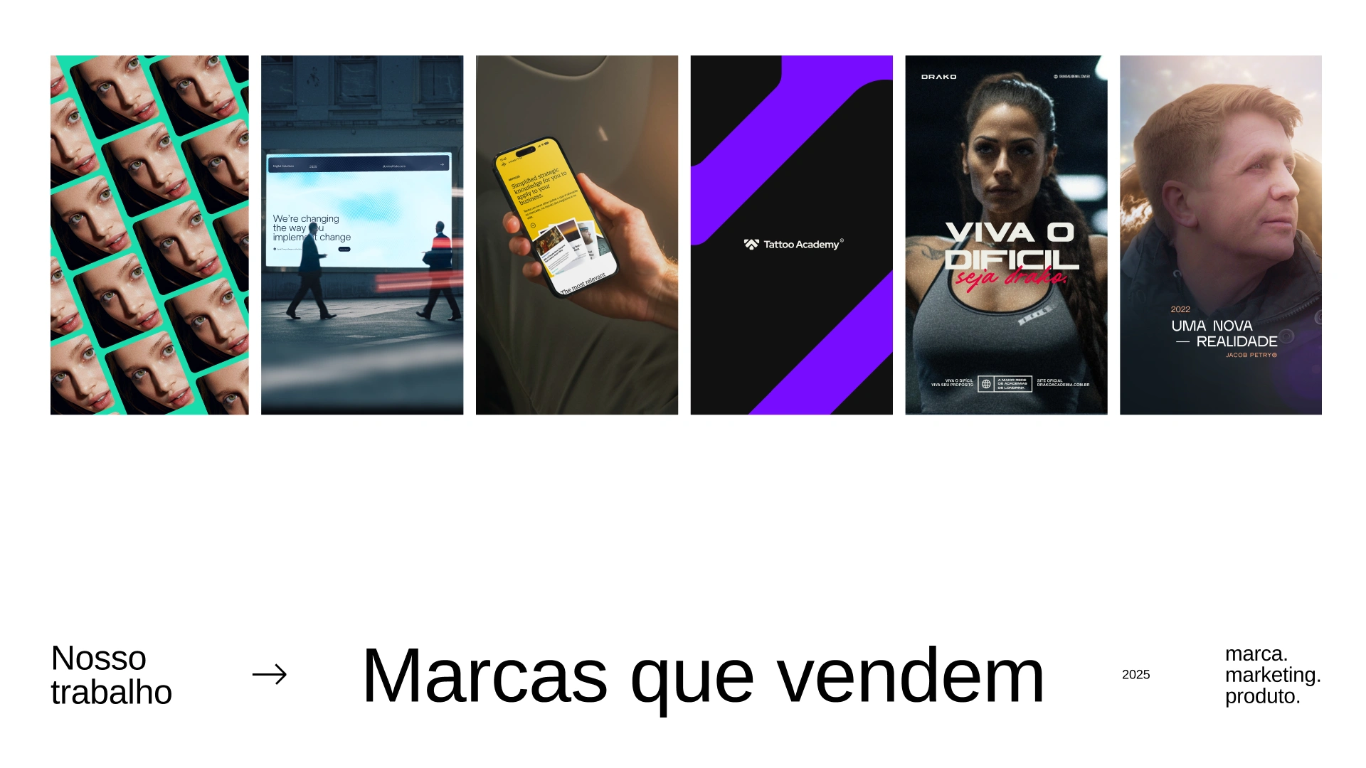 Identidade visual, site, naming, campanhas — tudo isso fala por você antes mesmo do cliente ouvir sua voz. Uma marca bem-feita transmite valor, cria desejo e abre portas. E bem... sem clareza visual, verbal e estratégica, sua empresa é só mais uma.