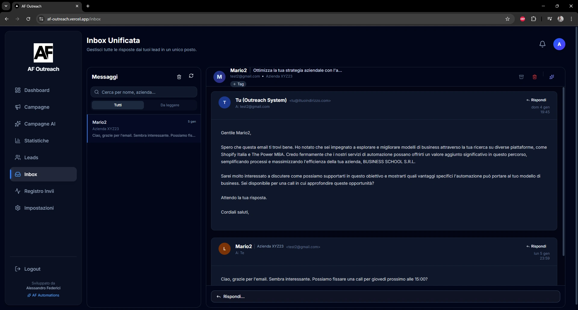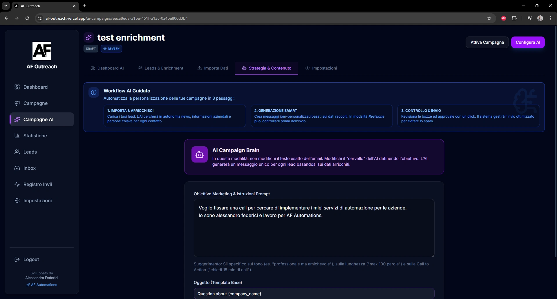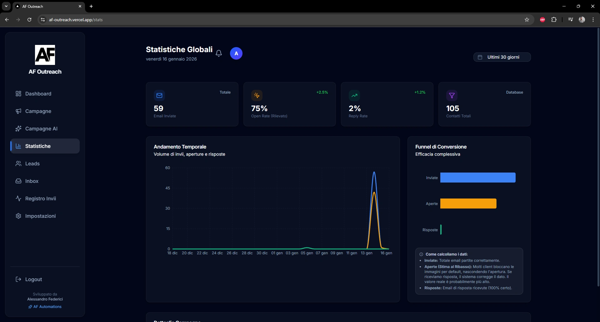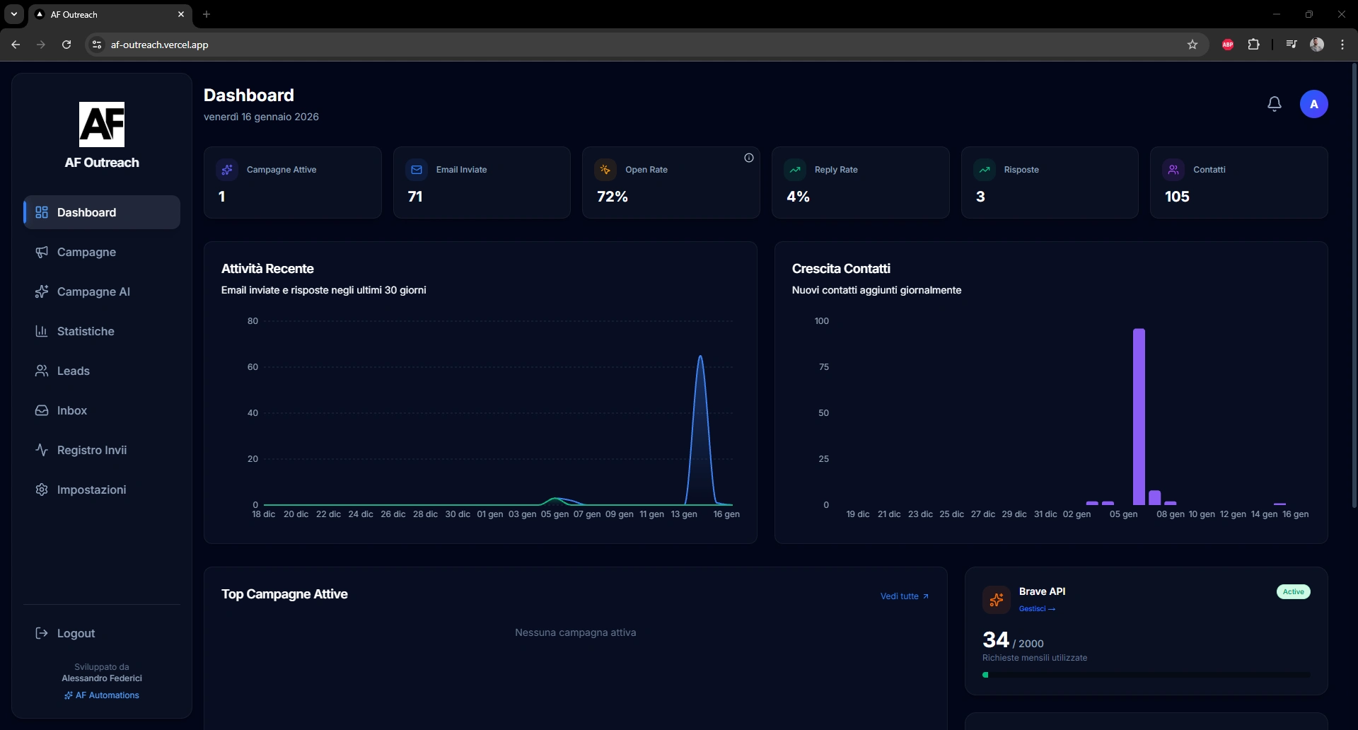 AF Outreach resulted in a fully functional outreach platform tested with real campaigns.