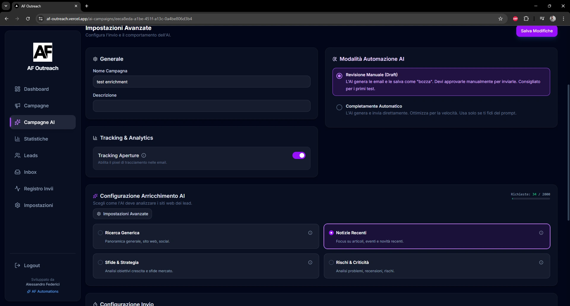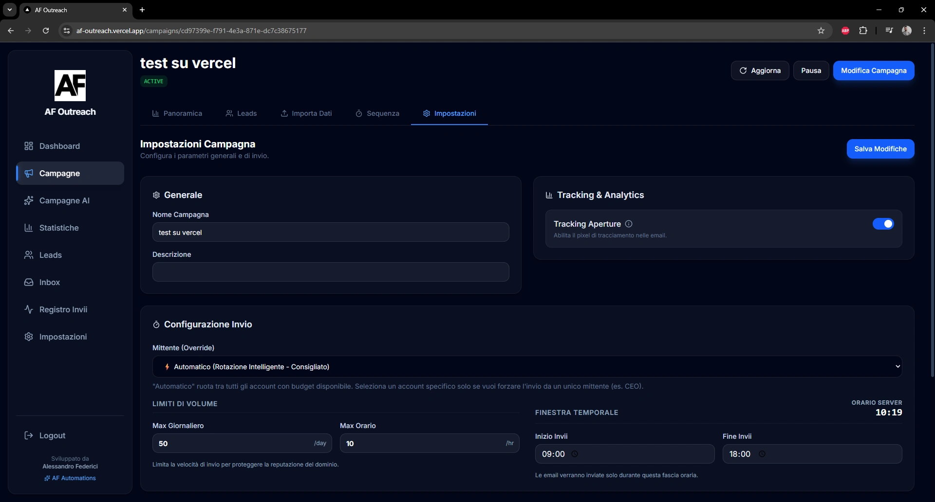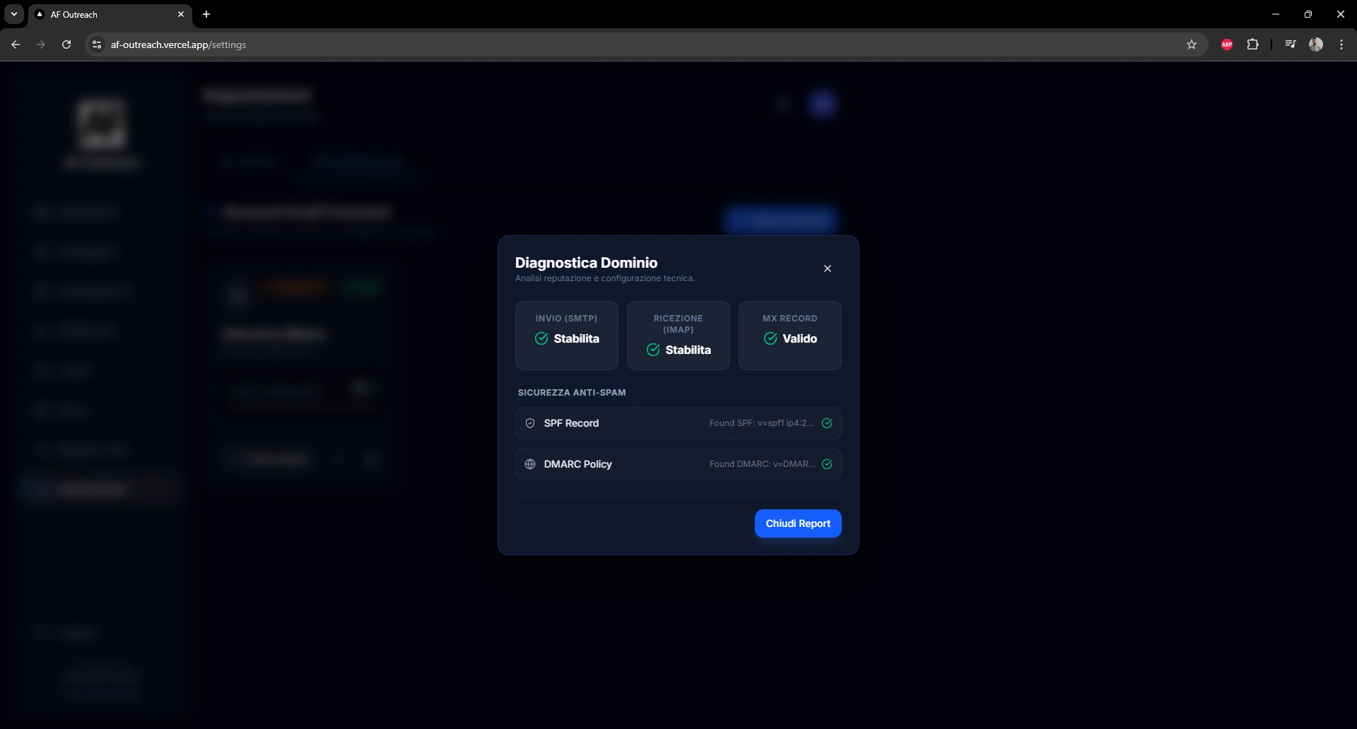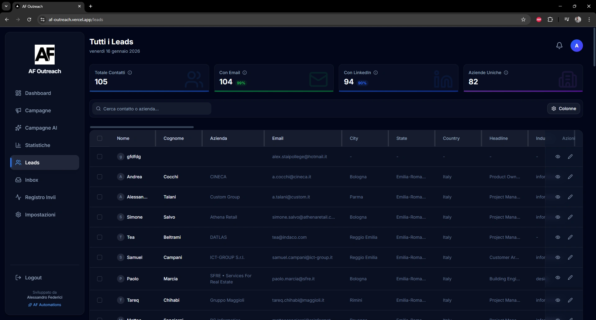 AF Outreach resulted in a fully functional outreach platform tested with real campaigns.