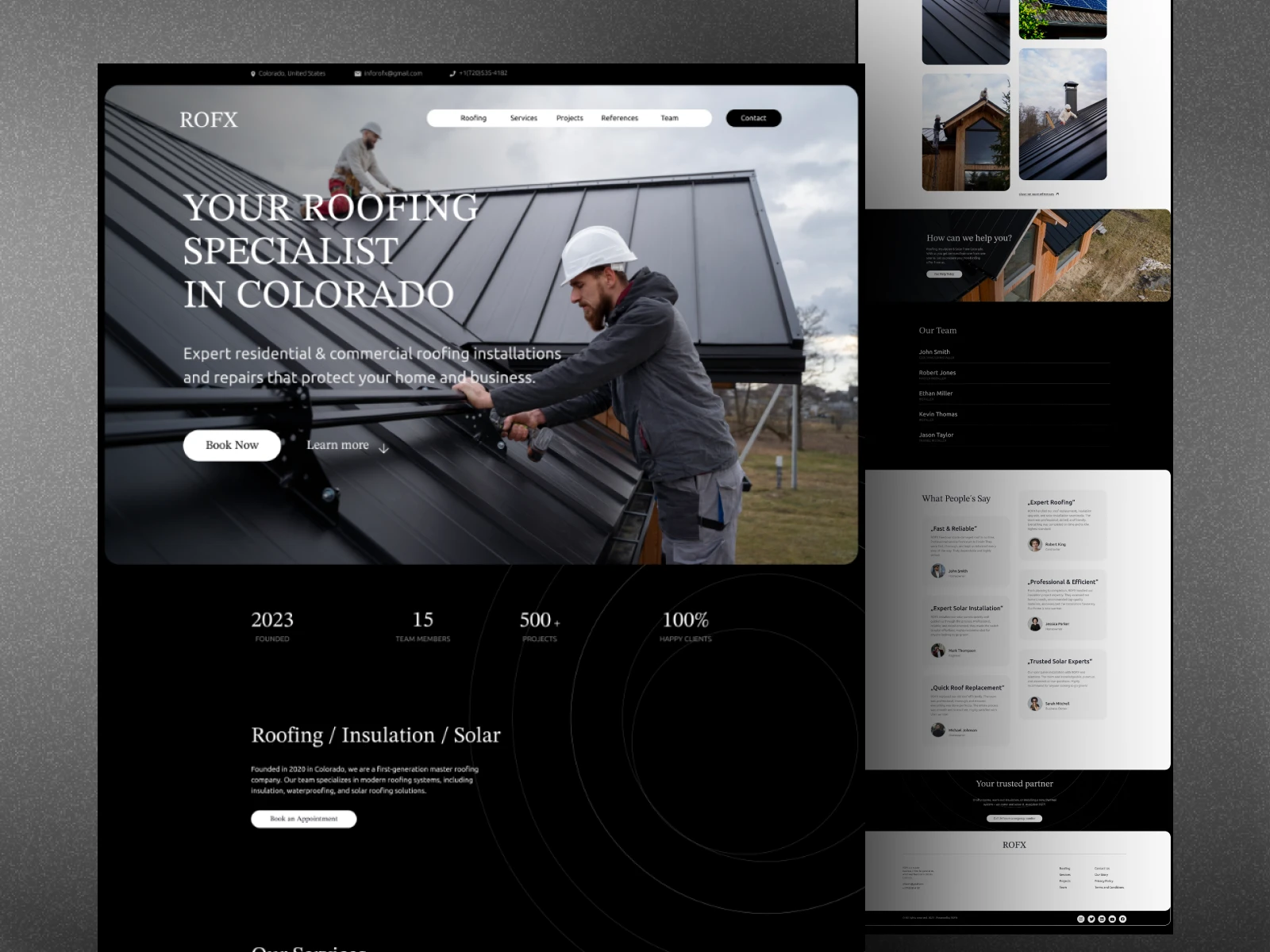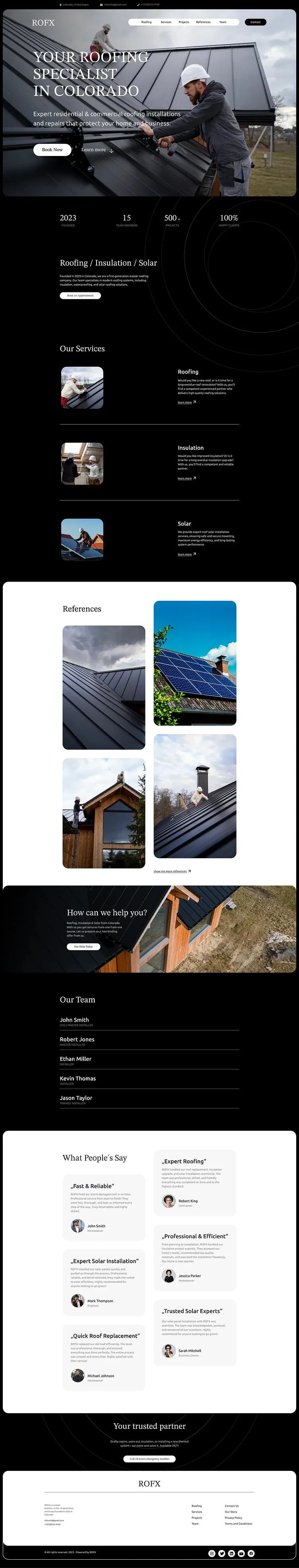 I designed this for Finuxlabs to show how a roofing service brand can communicate trust, quality, and expertise in a simple, direct way without unnecessary distractions. The layout keeps everything focused on core services, real results, and a clear path for customers to request a quote with zero friction.