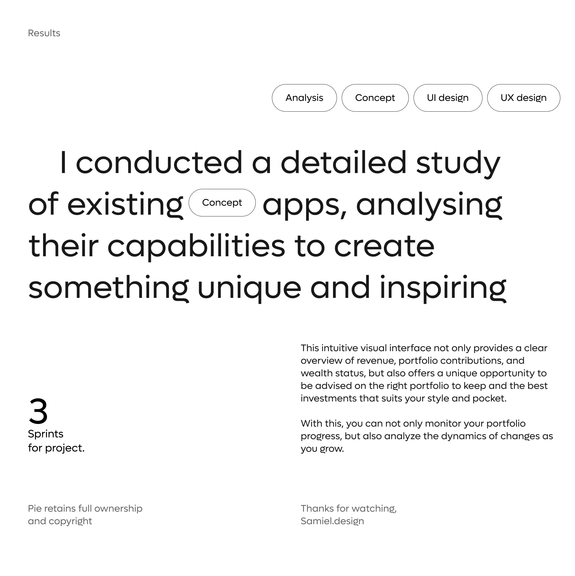 Designed the PIE investment app to simplify investing, leading to a 50% increase in user retention and a 35% boost in portfolio creation.