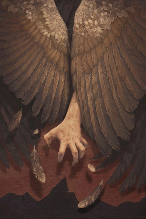 This painting was created as a book cover for the author Midori Snyder’s ebook re-release of her Oran Trilogy, and titled after its respective volume in the trilogy. To create this cover, I combined digital images with an oil-painted (and digitally-tweaked) background.