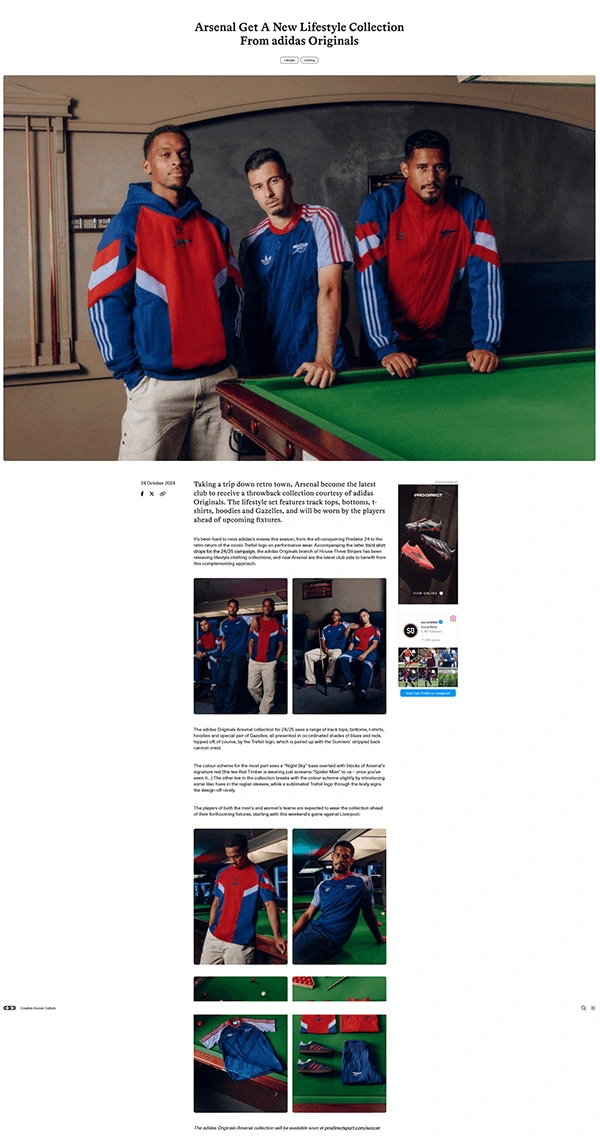 Retouching project for the Adidas Originals and Arsenal FC collab. Lifestyle featuring Arsenal players William Saliba, Gabriel Martinelli & Jurrien Timber.