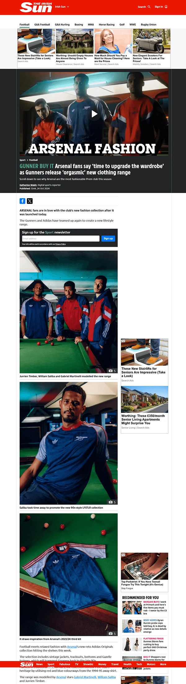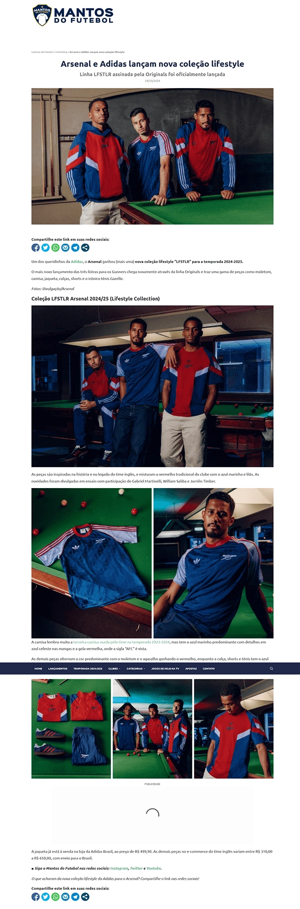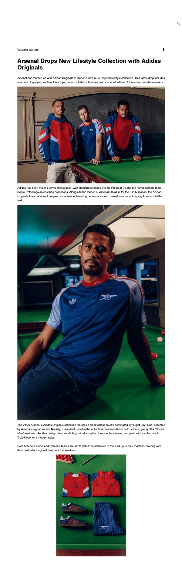 I have been aproached by photographers' agency AtTrayler to work in collaboration with award-winning Photographer Lewis Khan on a campaign for the Adidas X Arsenal Football Club featuring retro designs for their 2024/2025 originals collection featuring Arsenal Squad Players William Saliba, Gabriel Martinelli and Jurrien Timber