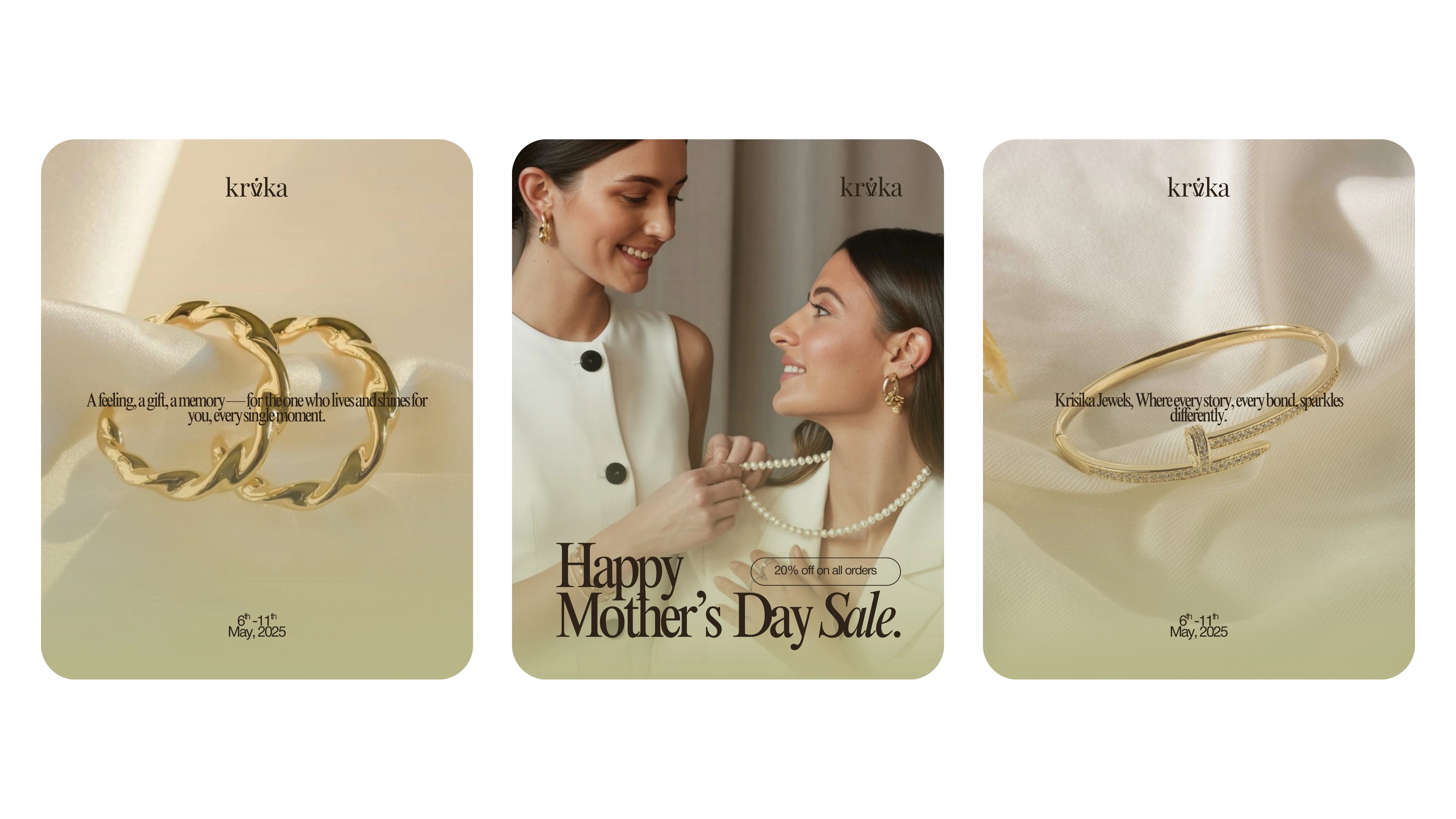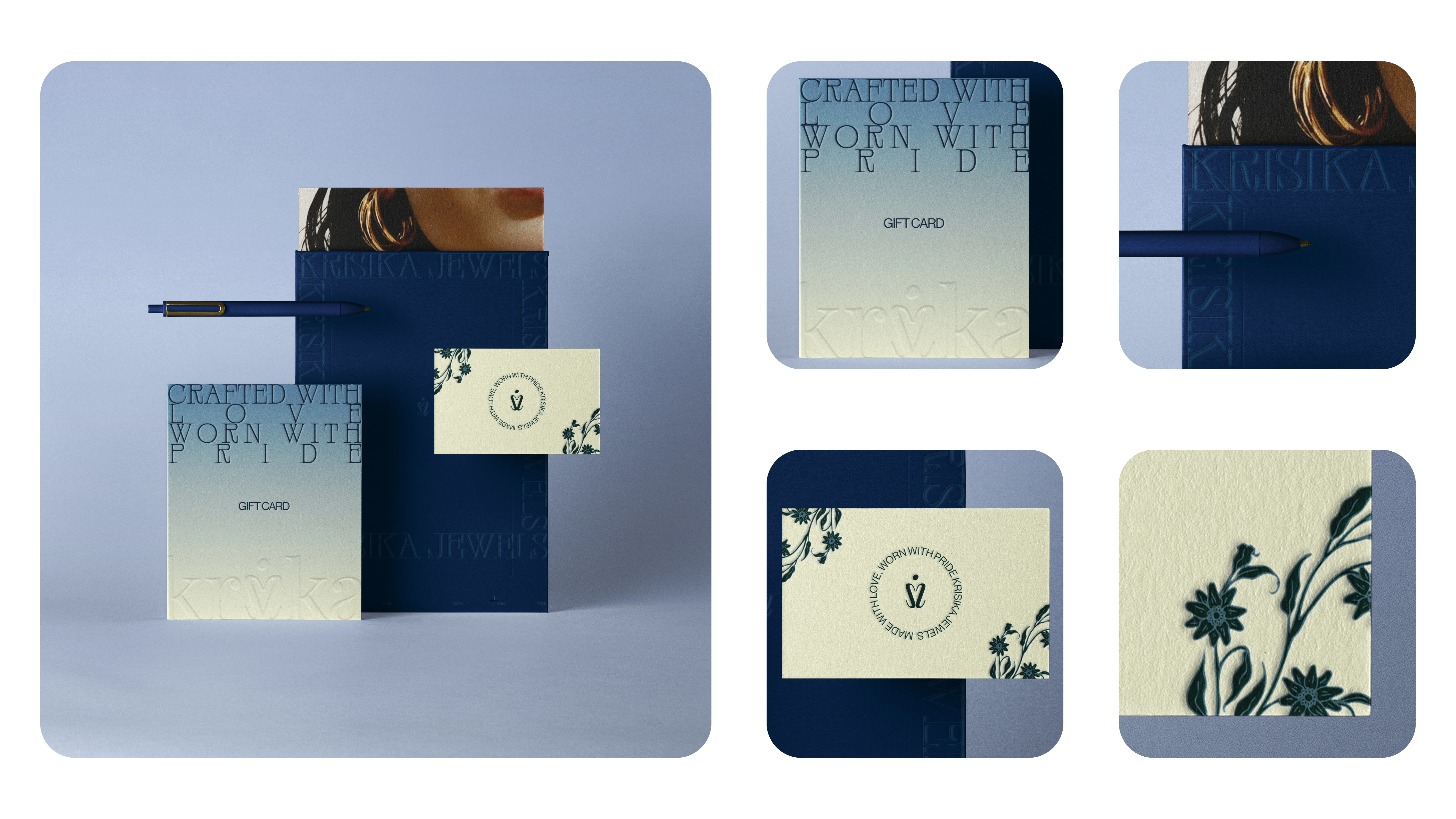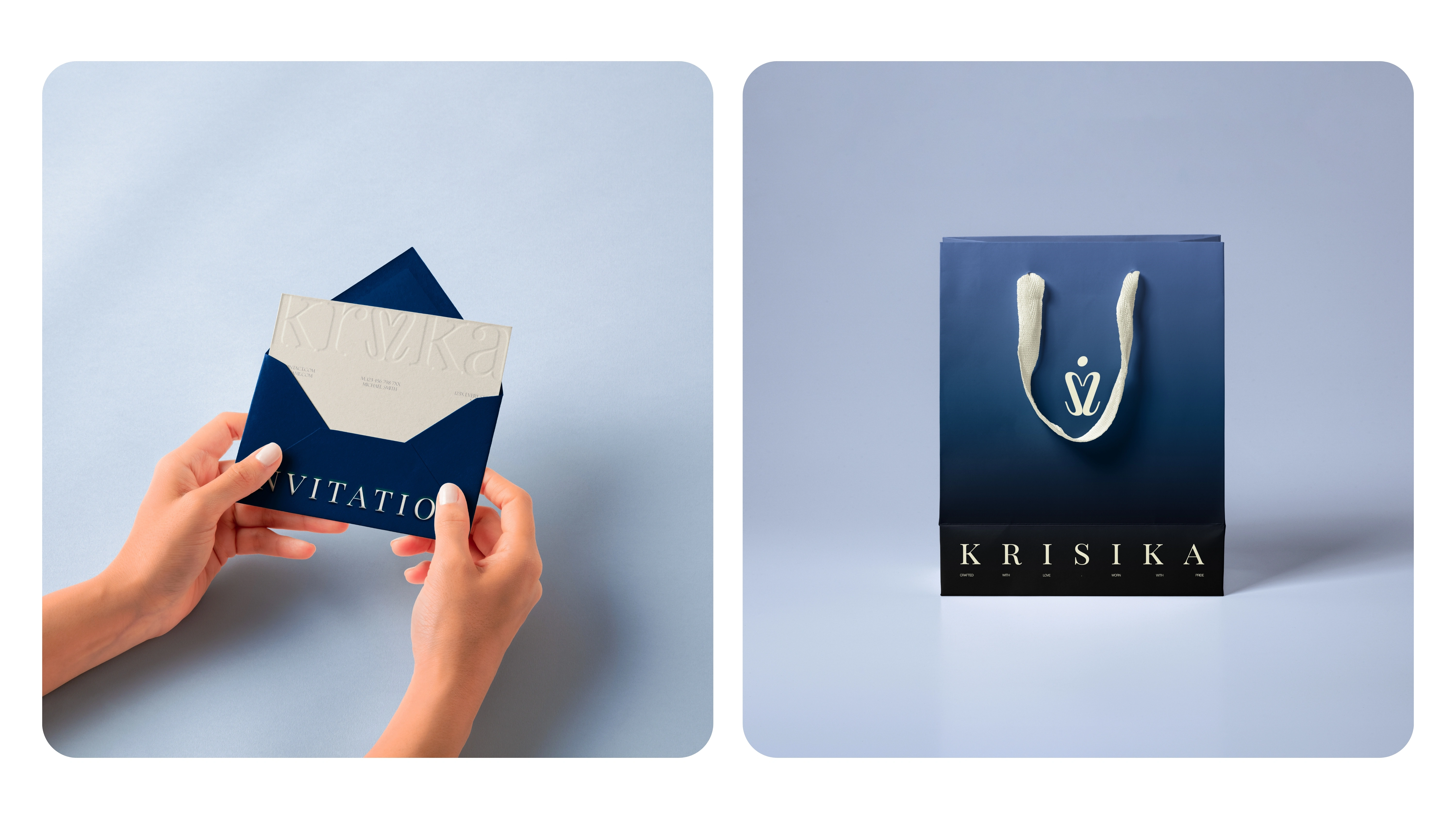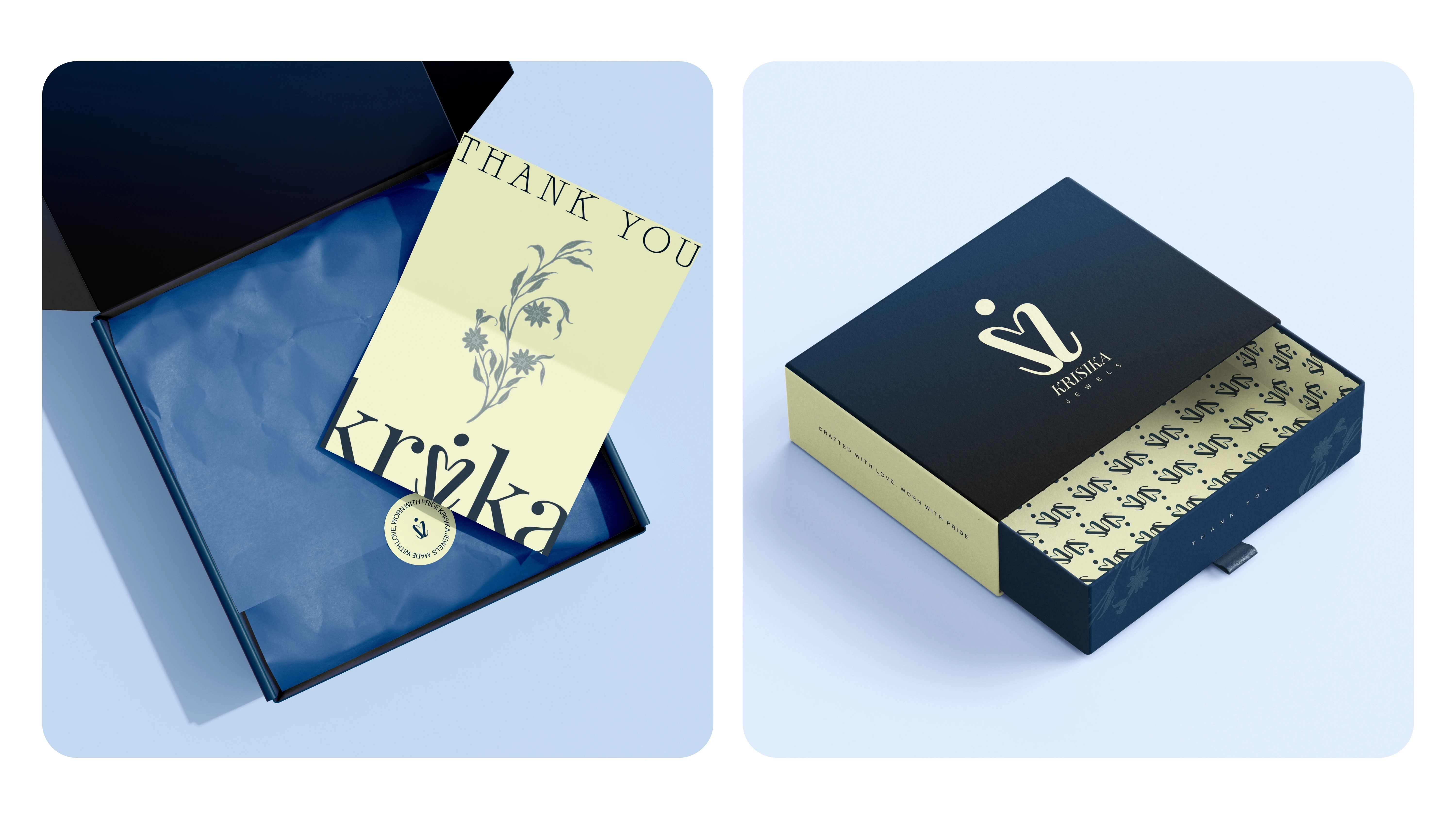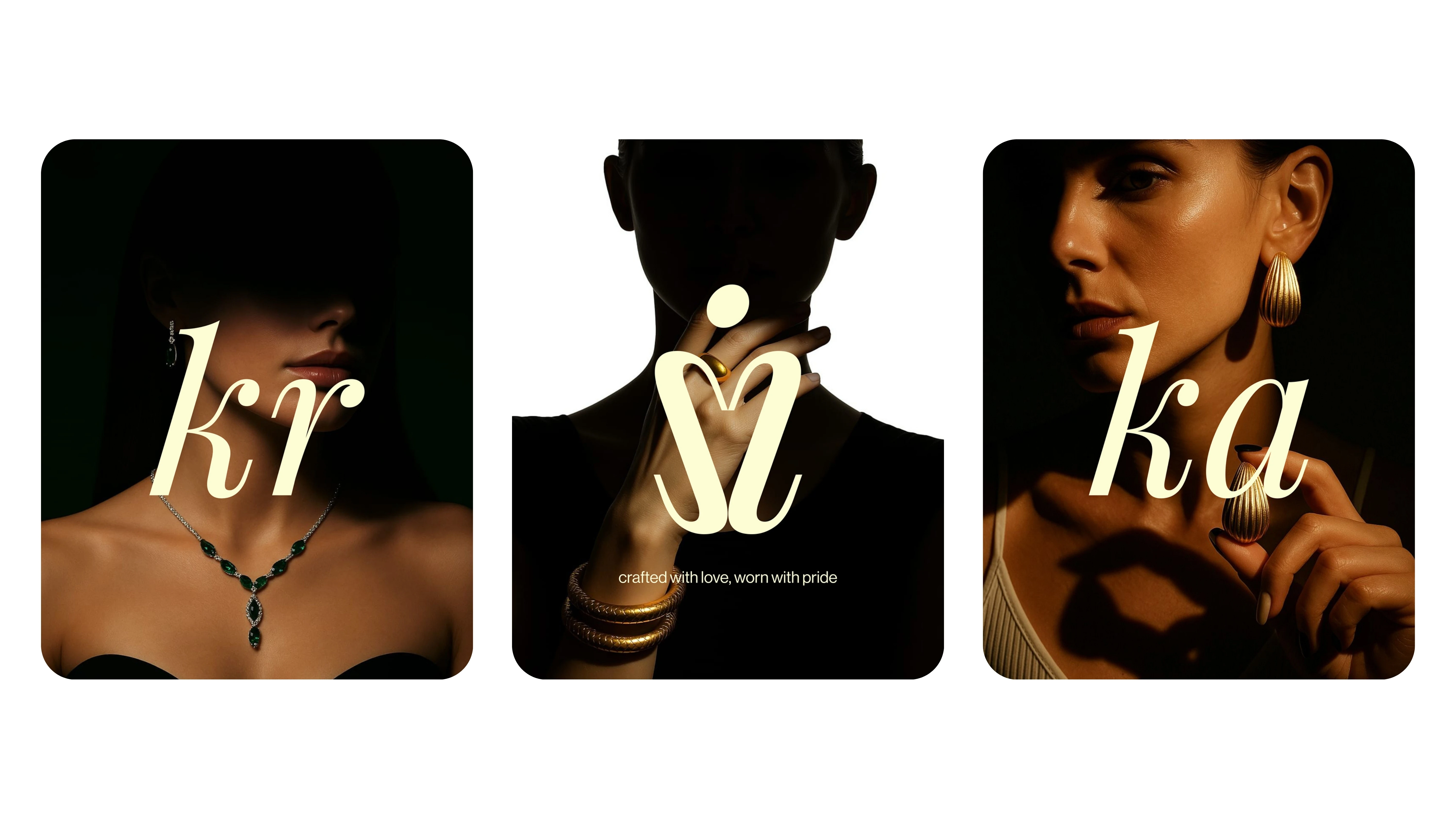 Elegant logo, premium packaging, and refined branding for Krisika Jewels, capturing timeless luxury and modern sophistication in every detail.