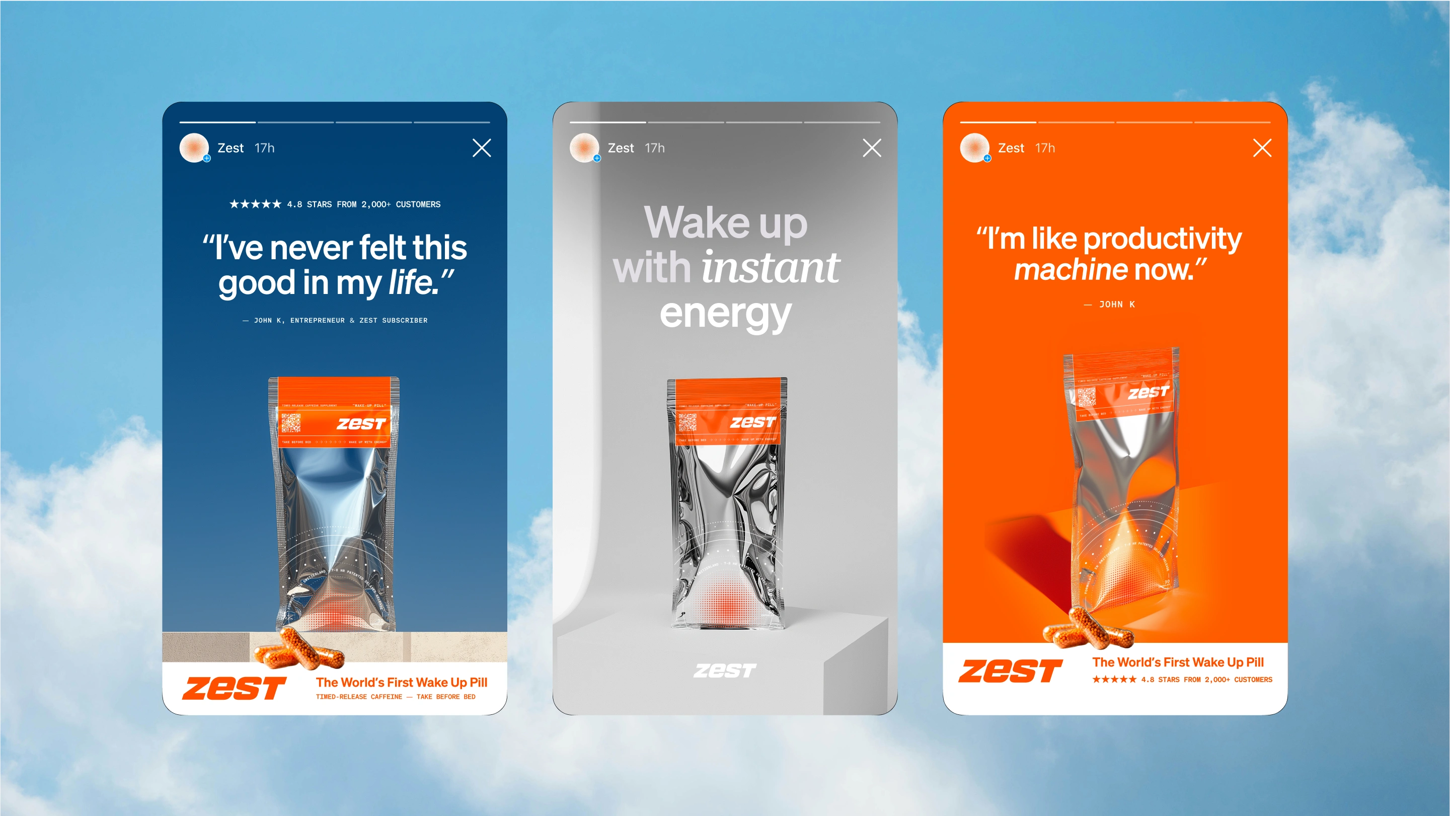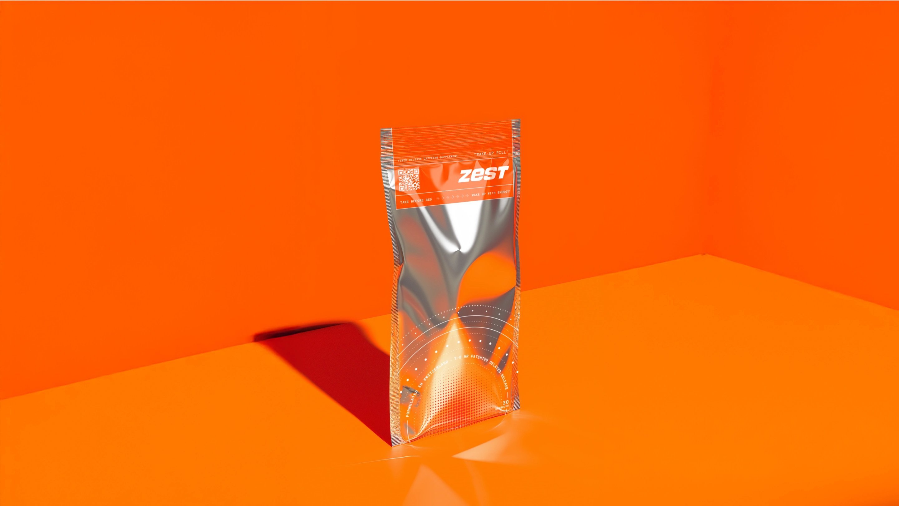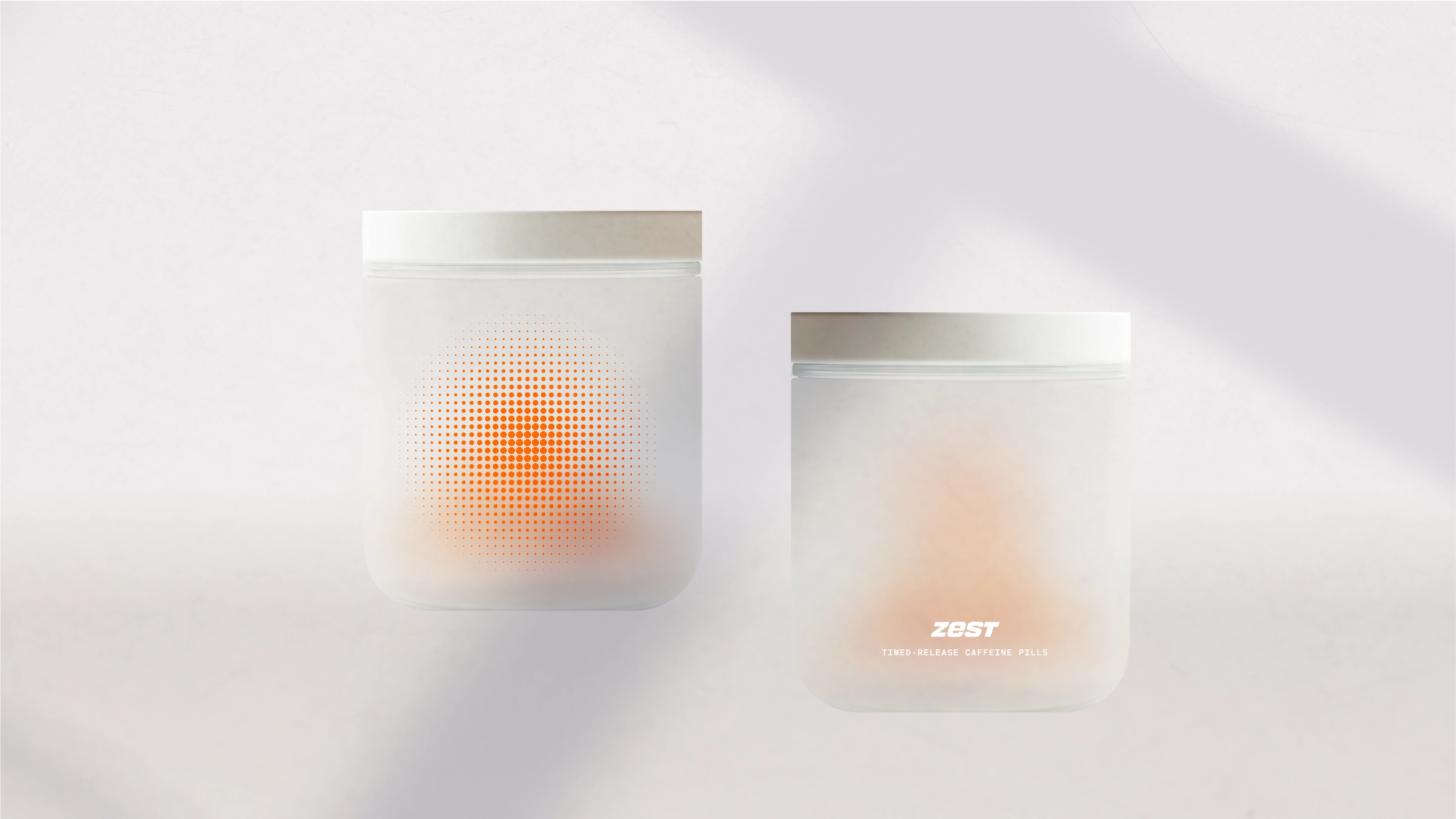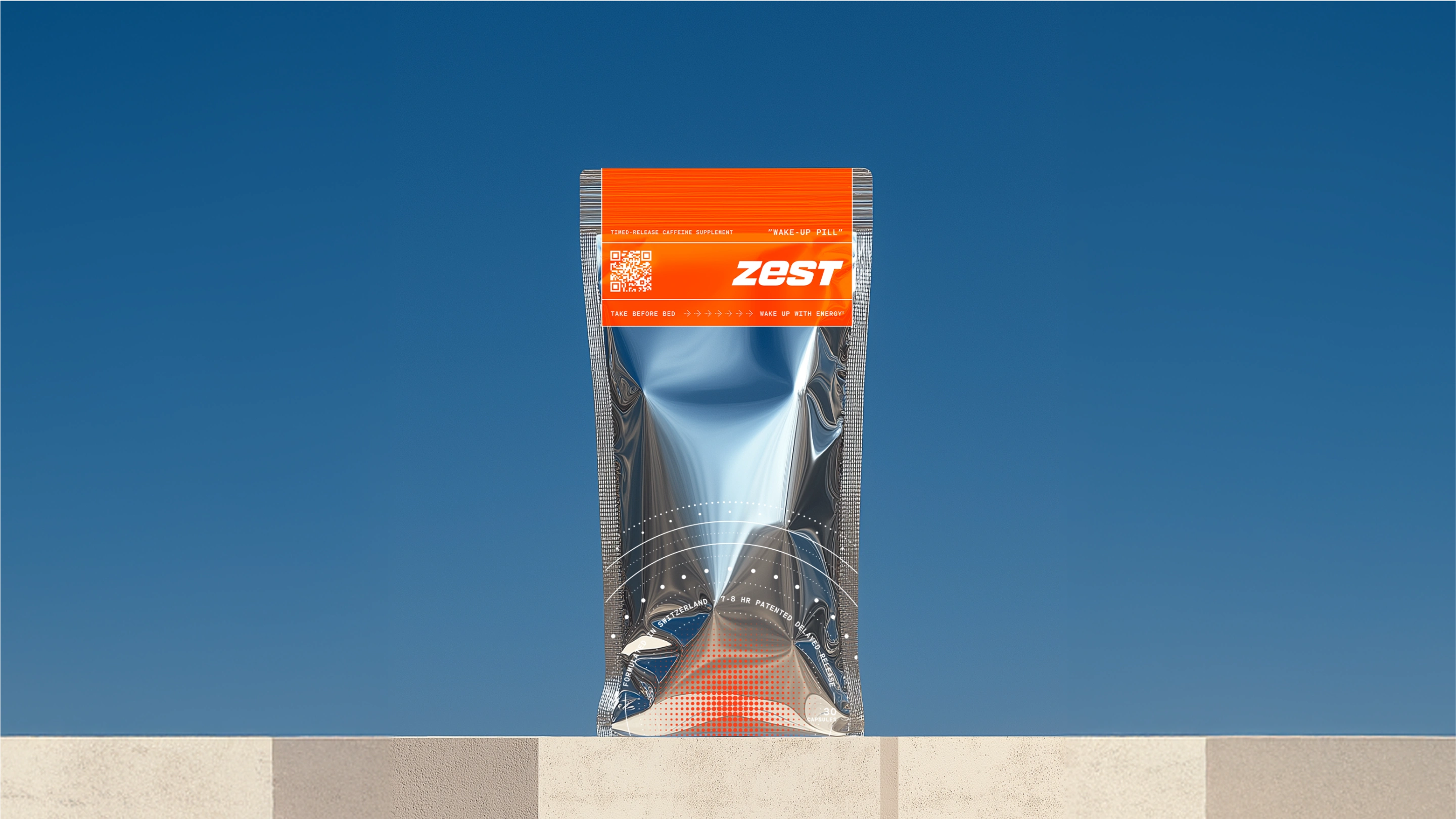 Zest is a timed-release caffeine pill taken before bed. I collaborated deeply with the founder, Jason, to create the brand identity, logo, and packaging.