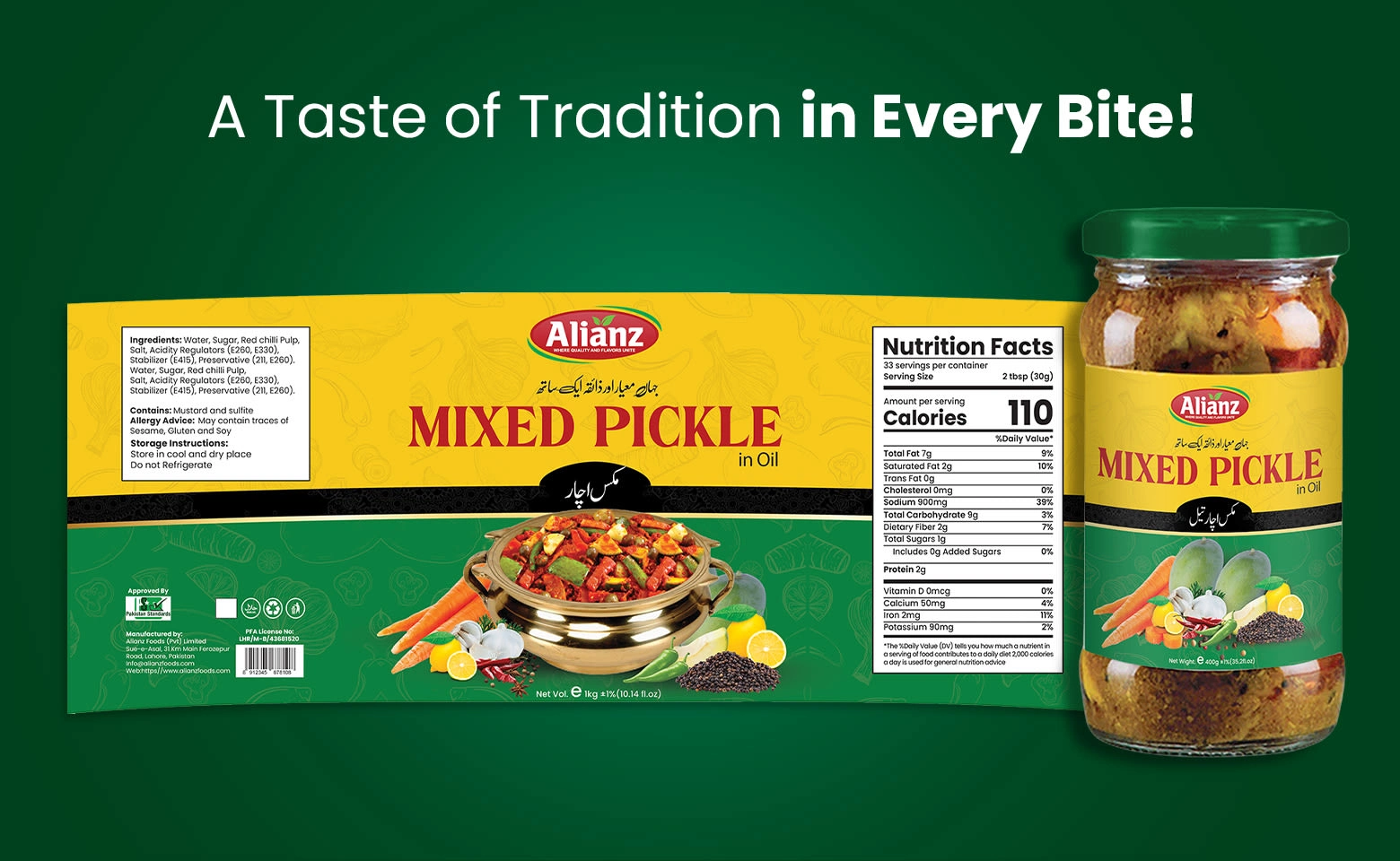 Designed complete label designs for Alianz Foods, creating professional packaging that highlights product quality and builds a strong brand identity.