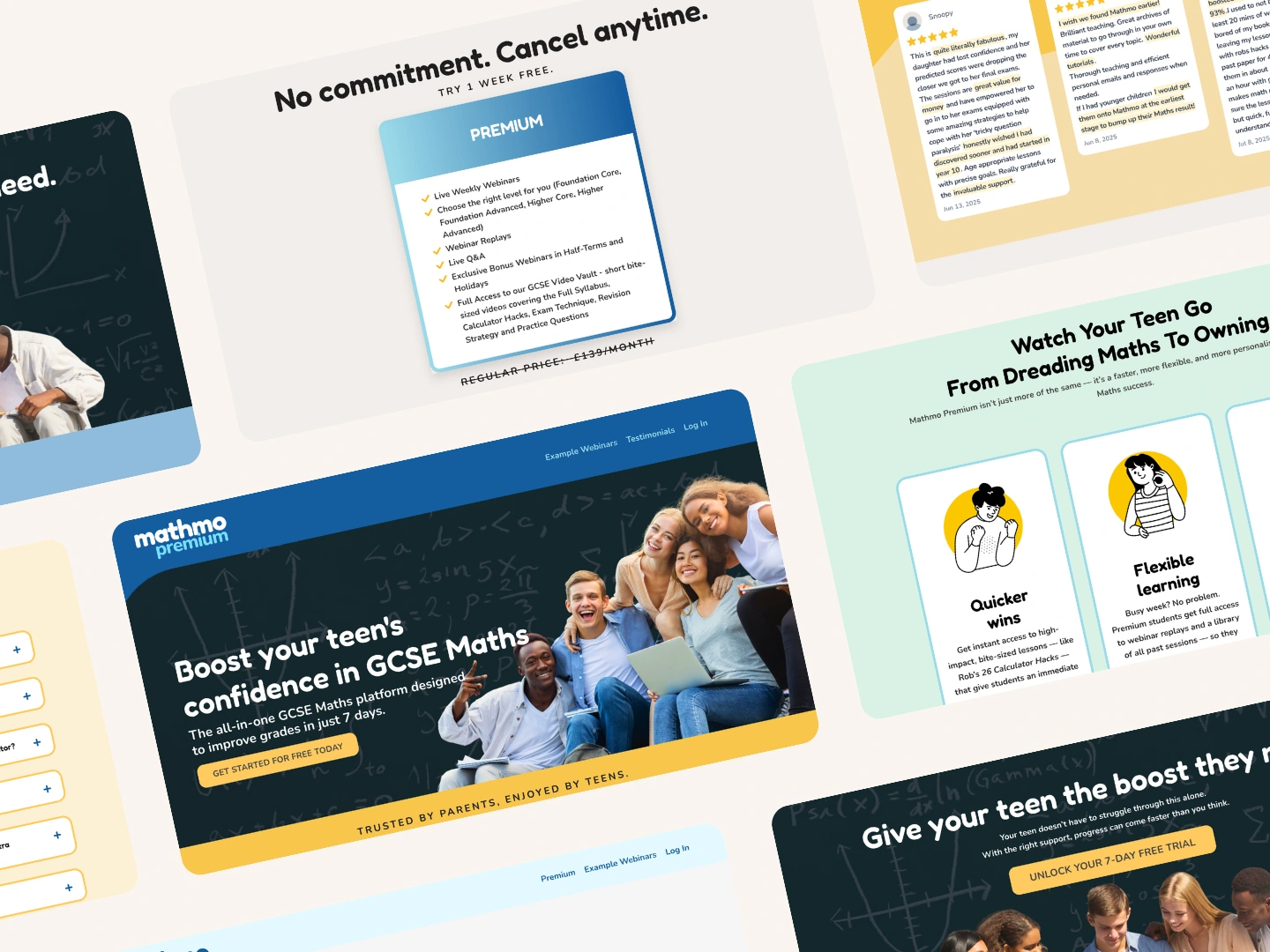 Parents who come to Mathmo aren’t casually browsing — they’re stressed, worried, and often on their last option. Their teens are struggling with GCSE Maths, falling behind, or have already failed exams. That means every touchpoint must do one thing: build trust fast.