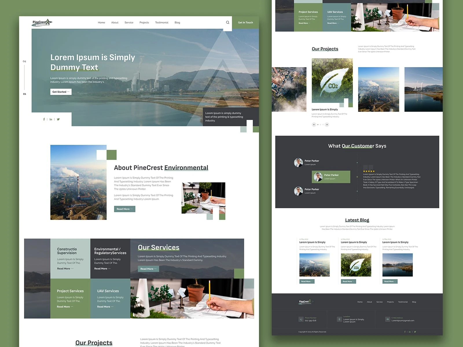Designed a modern and structured website for an environmental consulting company, focusing on clarity, credibility, and sustainability. The layout features a strong hero banner, informative service sections, project showcases, testimonials, and a blog area to support content-driven engagement. A calm color palette, clear typography, and balanced layouts were used to guide users smoothly through the site while presenting complex information in an accessible and professional manner across all devices.