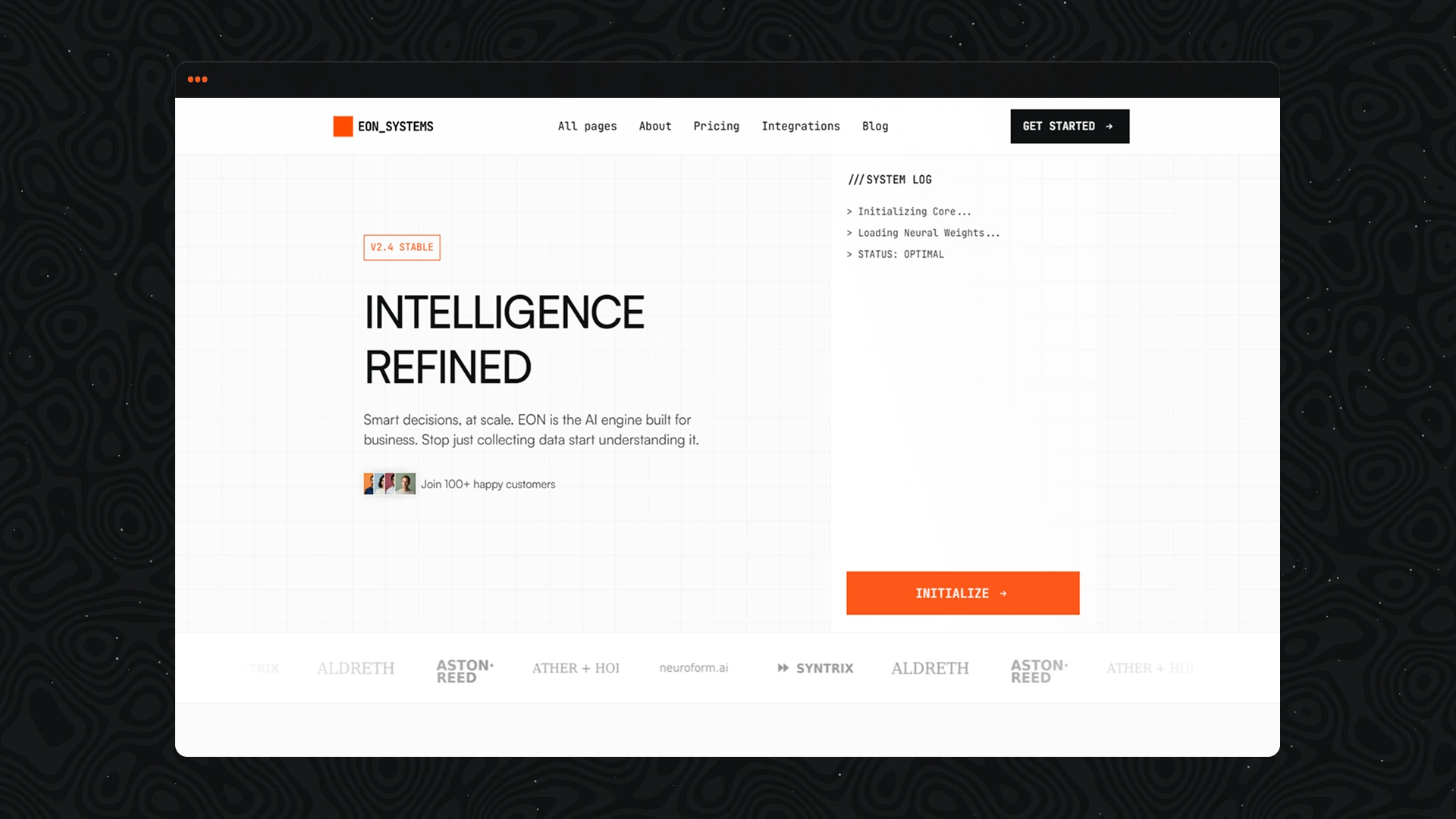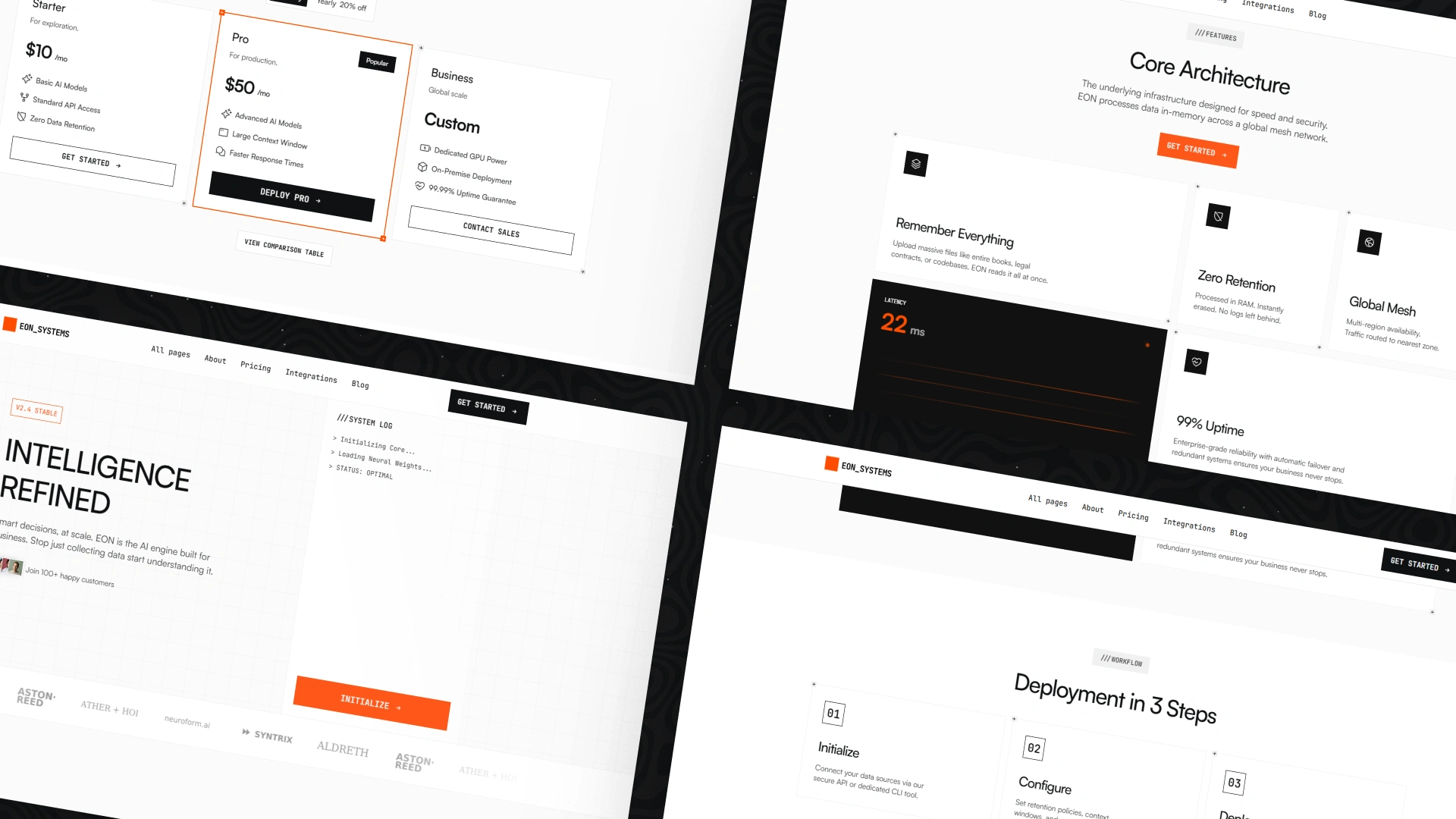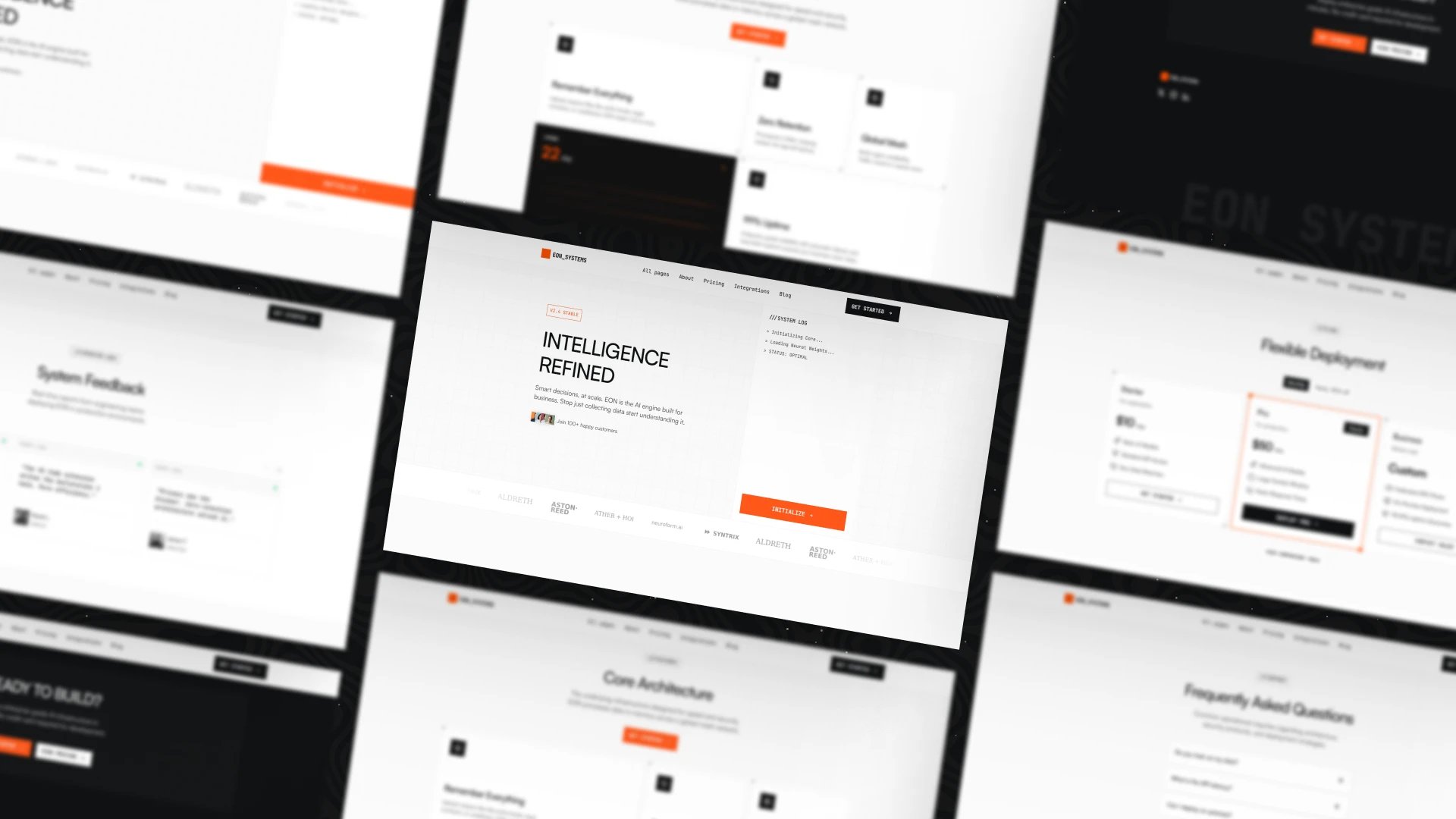 Designed with a light console aesthetic and high-contrast visuals, EON combines bold typography, bright orange accents (#FF6600), and interactive elements to create a strong digital presence that feels engineered, not decorative.