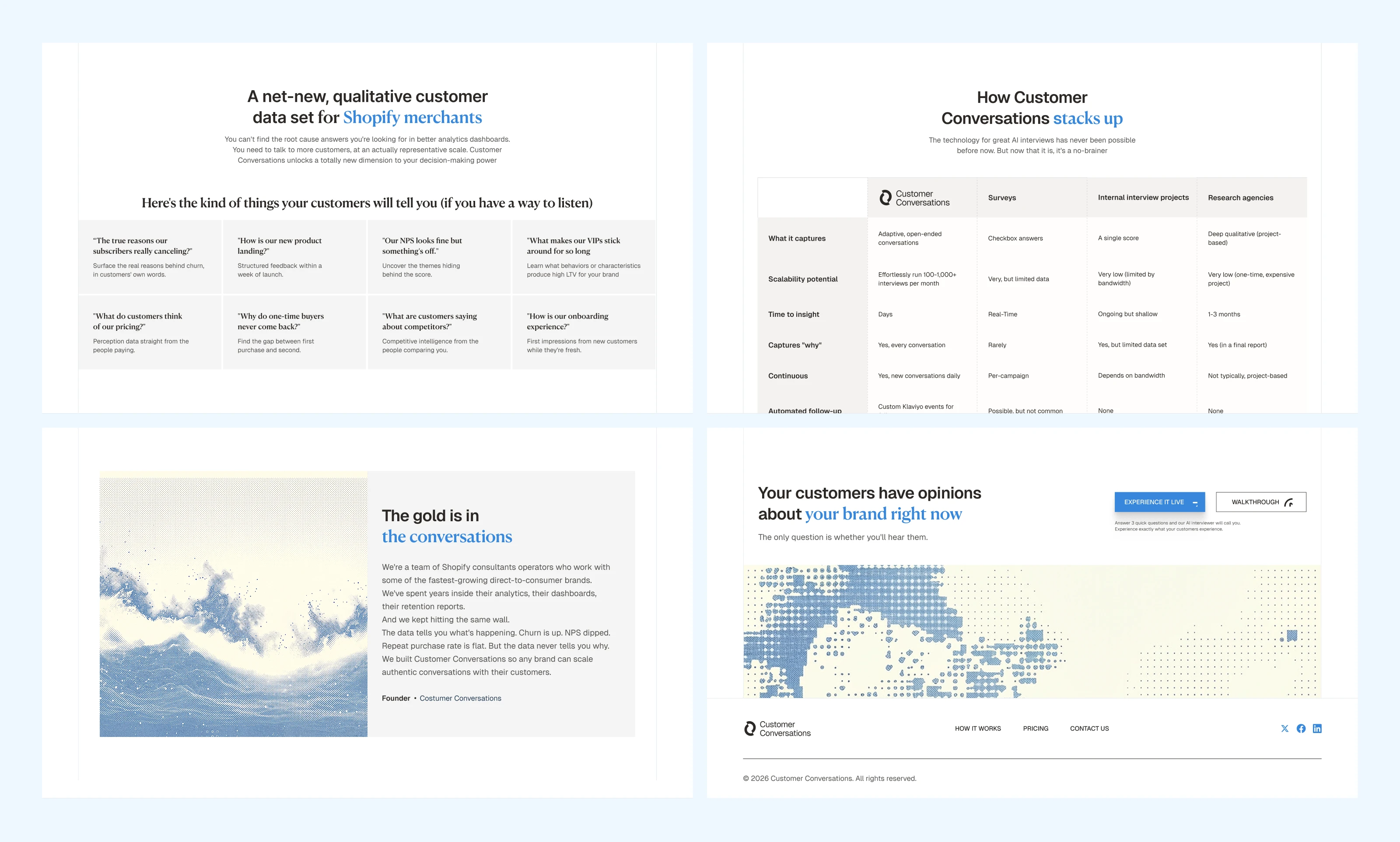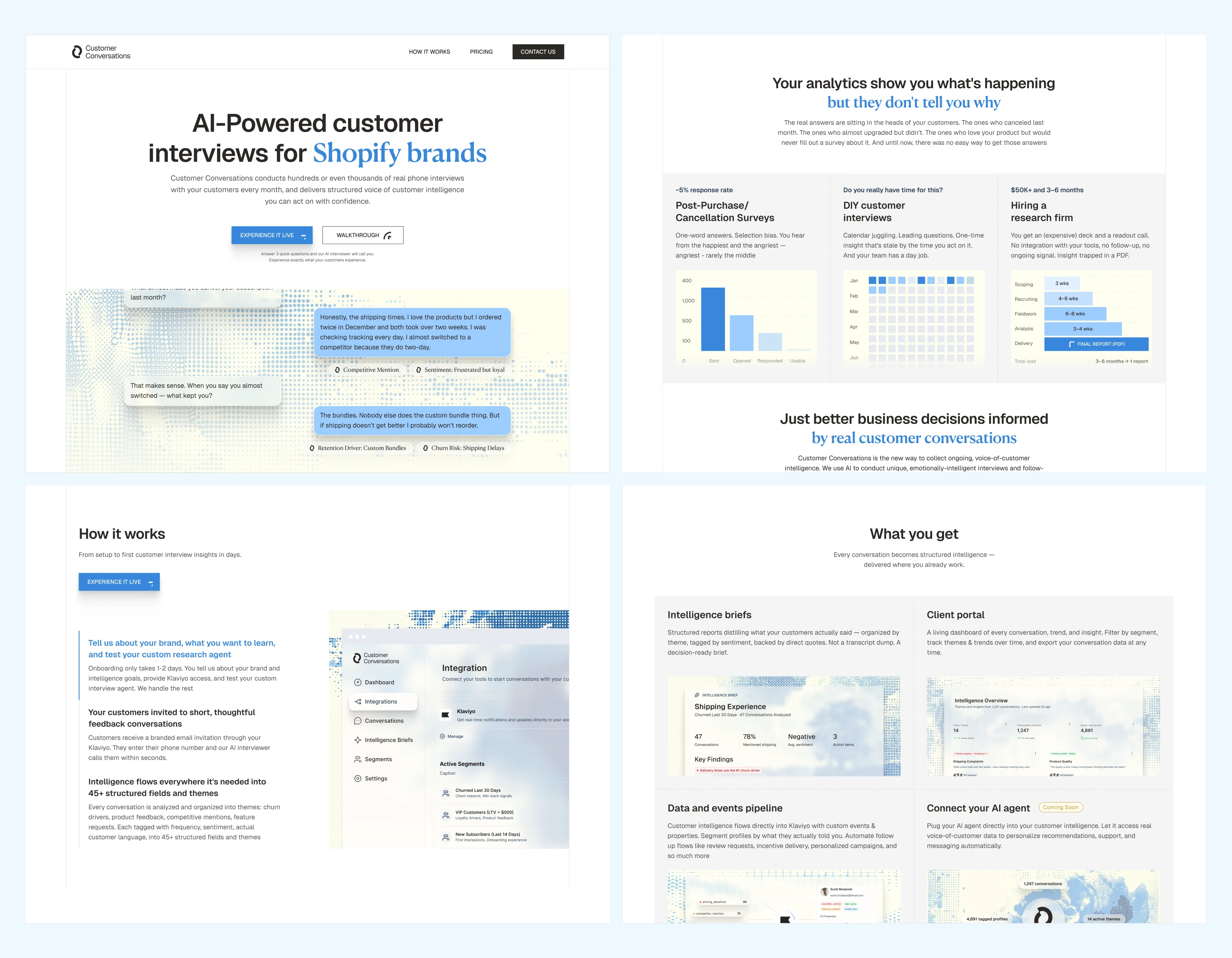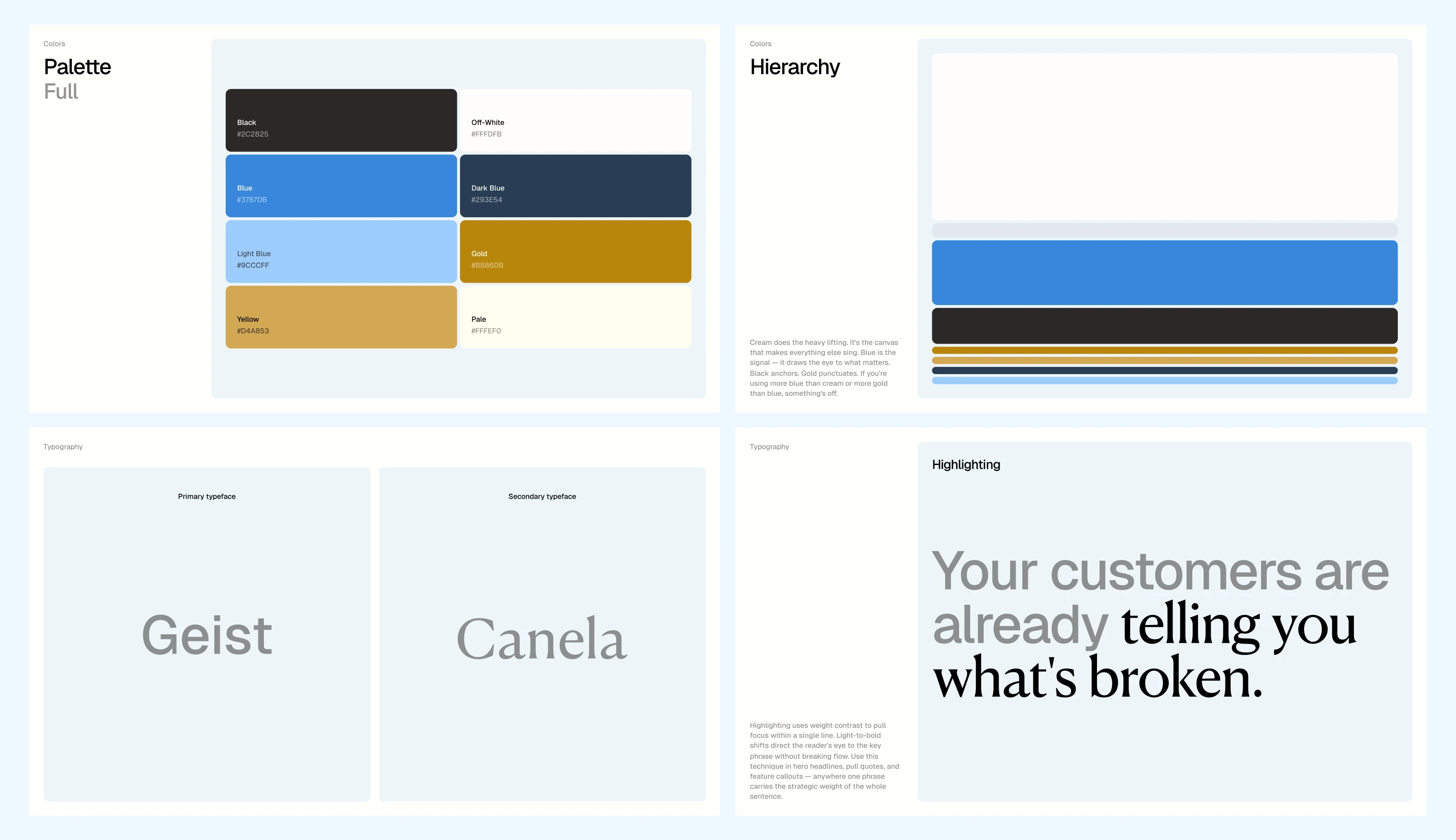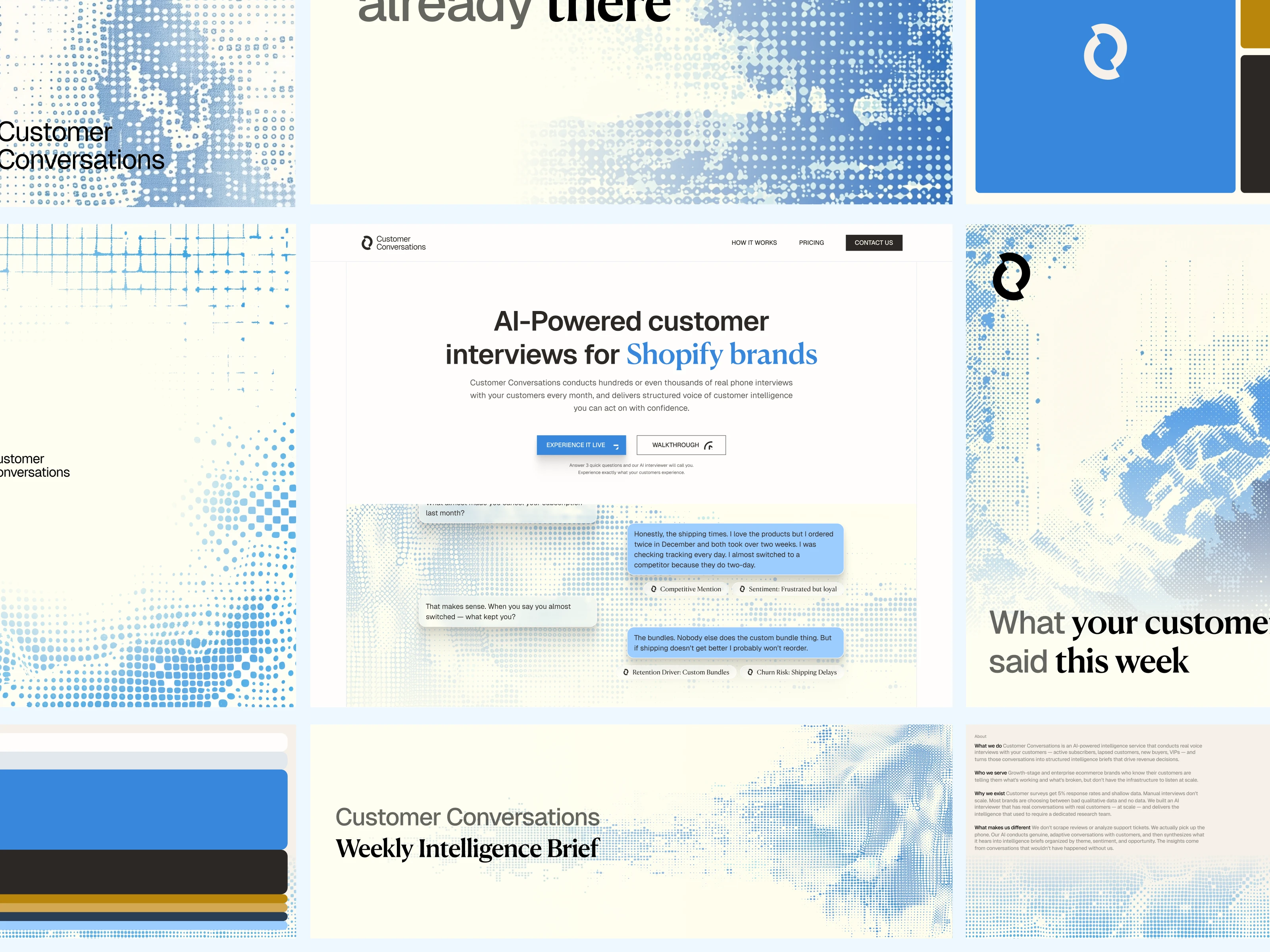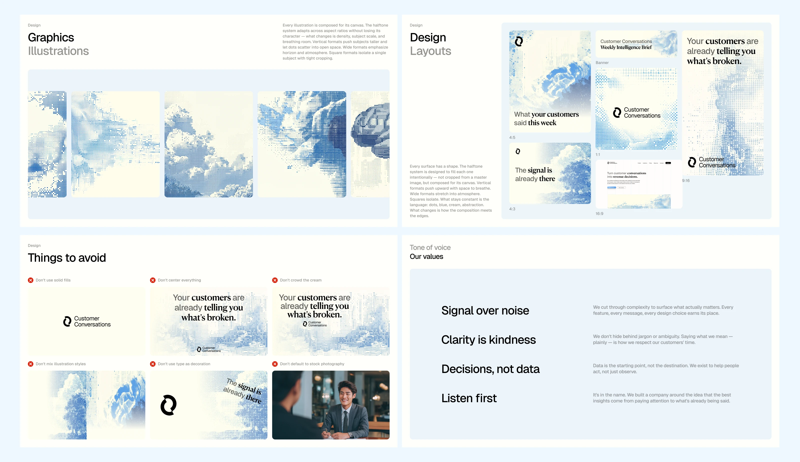 Brand identity system and homepage design for an AI-powered customer intelligence product. We went from zero to launch-ready in three weeks.