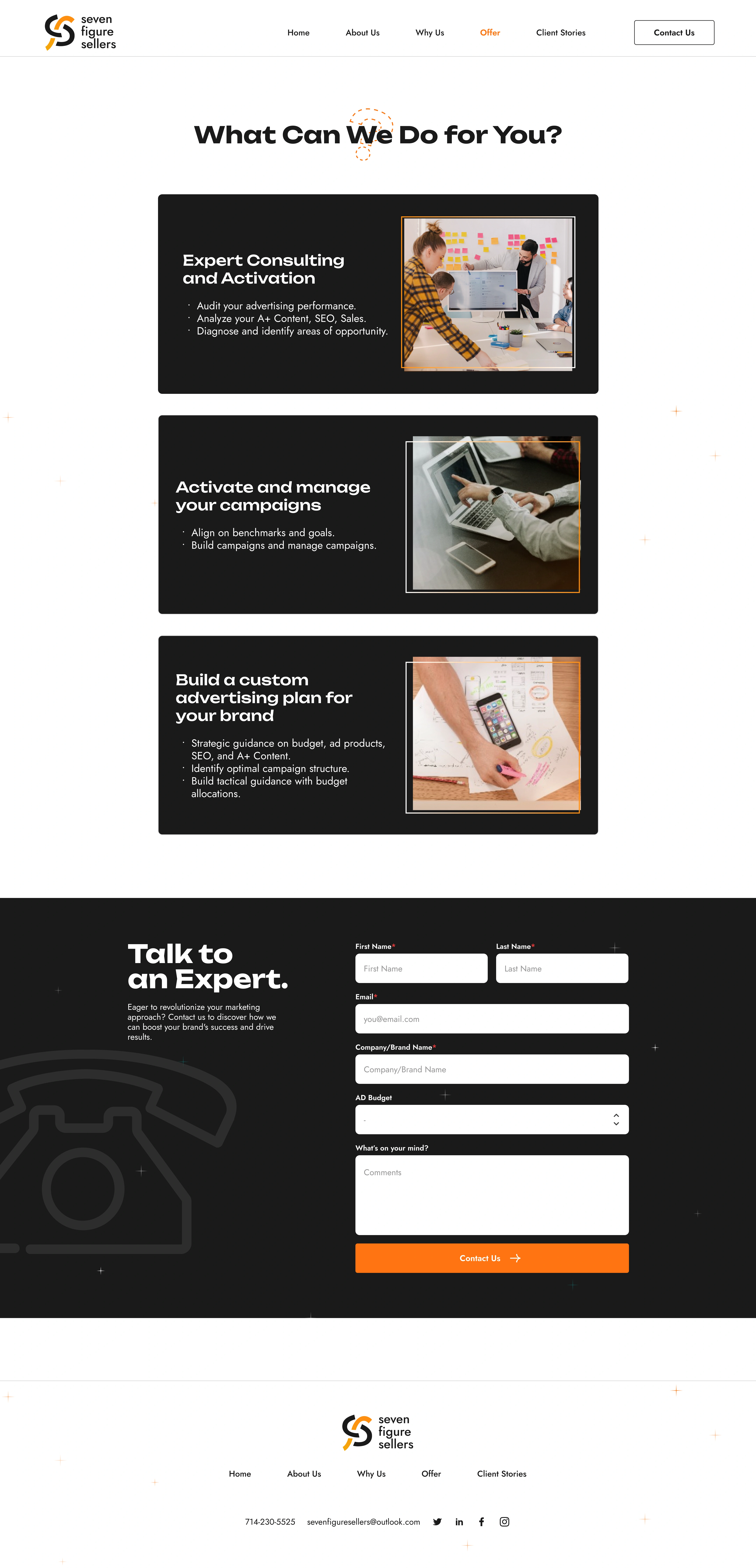 The Seven Figure Sellers project focused on creating a strong brand identity and website design that positions the company as a trusted consulting partner.