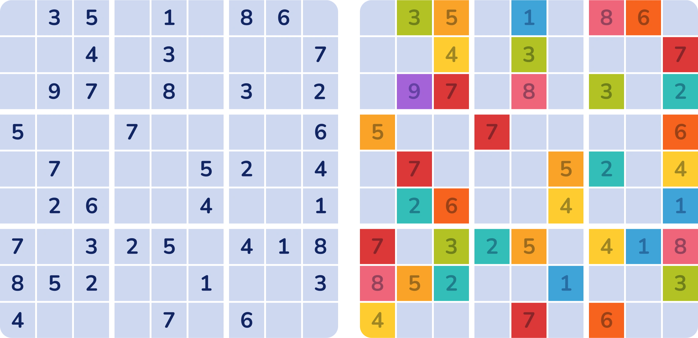 Replacing numbers with colors wasn’t just cosmetic - it fundamentally altered the cognitive demands, error states, and user experience of Sudoku.