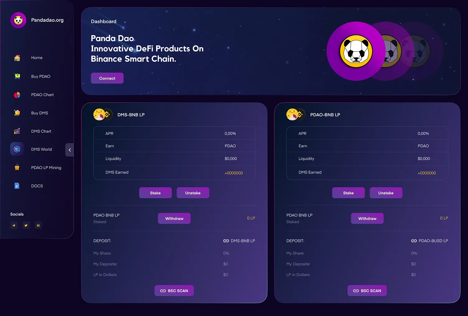 PDAO needed a modern, user-friendly DeFi dashboard to simplify staking, liquidity tracking, and earnings management on the Binance Smart Chain. The goal was to create a clean interface that makes complex blockchain actions intuitive for users.