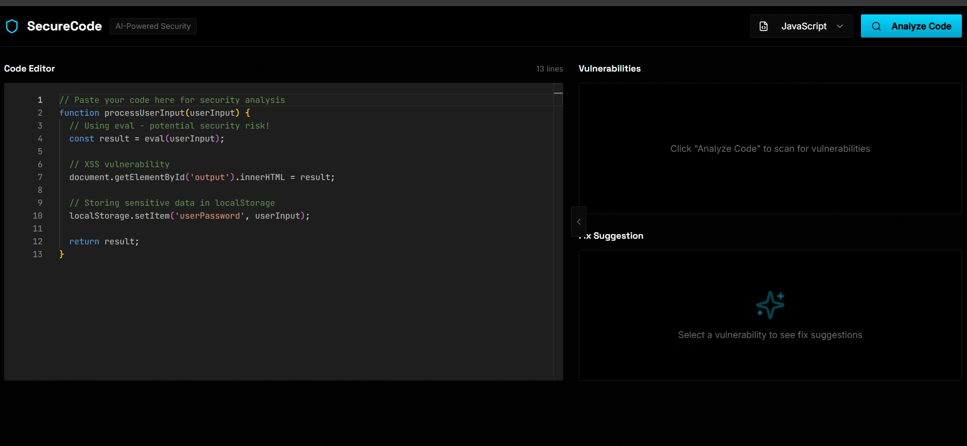 SecureCode is an AI-powered secure coding assistant built for a software product company that wanted to help its engineering teams identify and fix security vulnerabilities early in the development lifecycle.