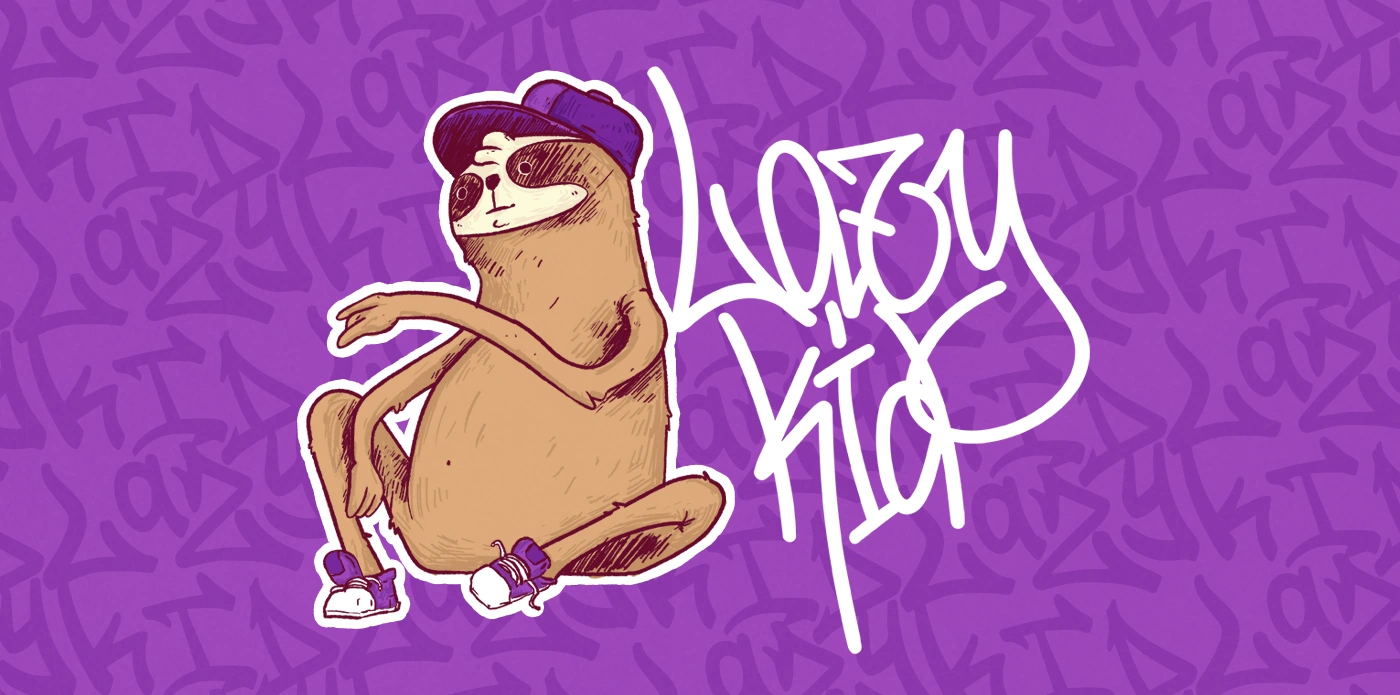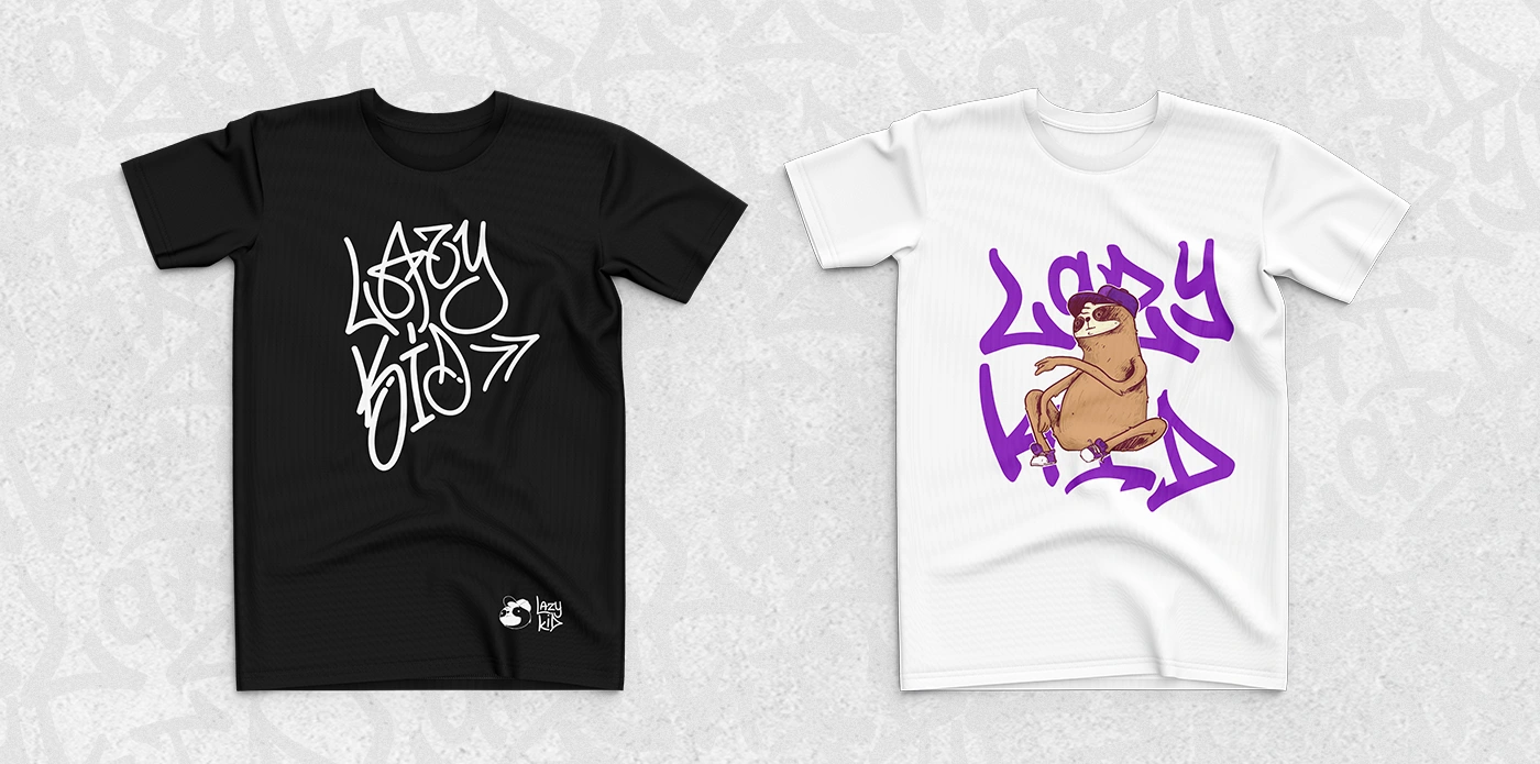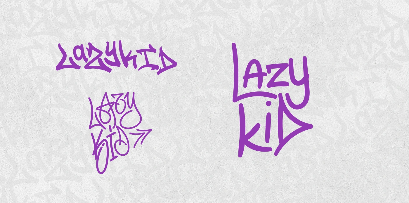 O principal conceito da revitalização da identidade da Lazy Kid, foi manter as principais caracteristicas e temáticas que são importantes para a marca. Essa pegada underground, grafite, streetwear, grunge, mantendo as cores da marca, com o roxo/rosa e o mascote da preguiça. Mas ao mesmo tempo trazer modernidade e praticidade na aplicação, mudamos o selo e a logo, para que a aplicação fique mais moderna e simples de fazer, algo minimalista para poder ser usado em pequenas aplicações, como num selo de álbum por exemplo. E o mascote foi redesenhado para ficar estilizado, seguindo inspirações do grafite, algo cartunesco e livre.