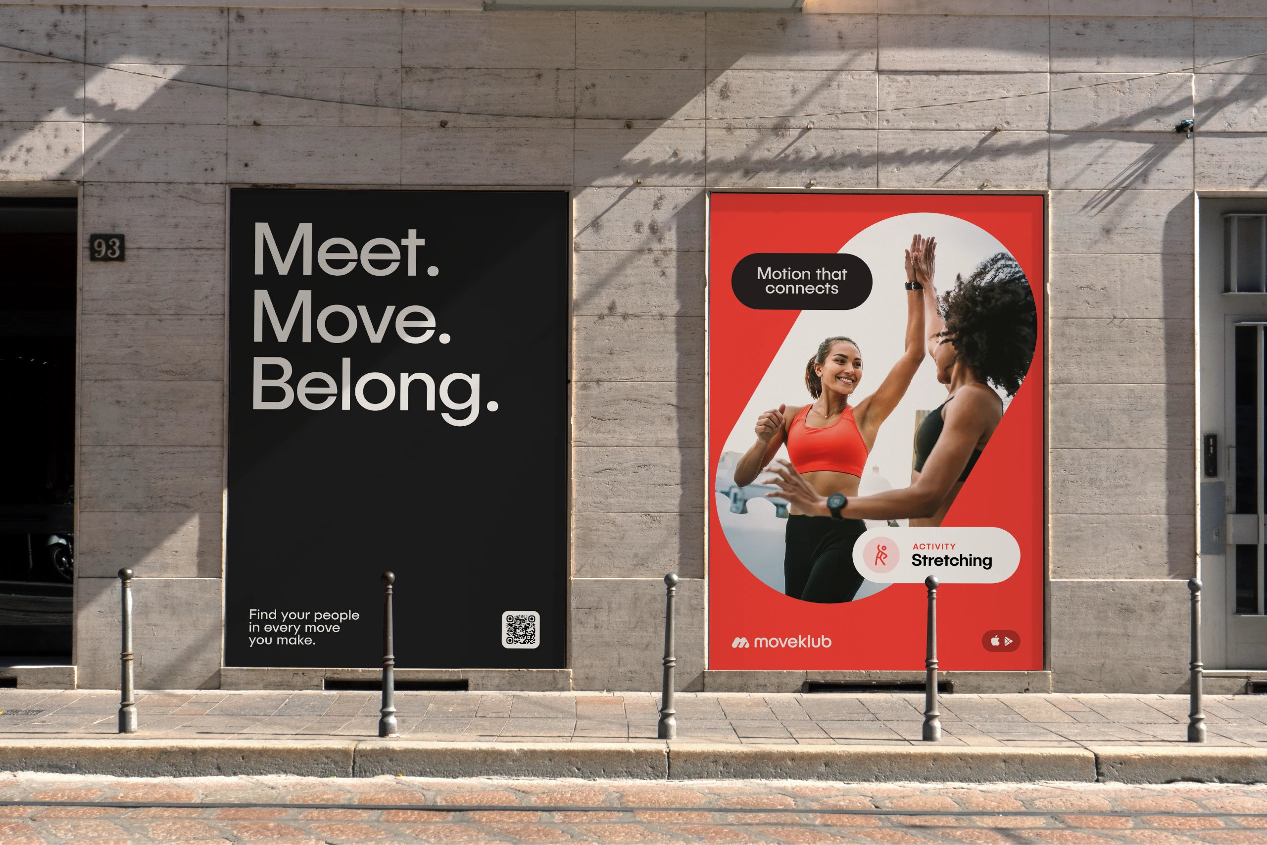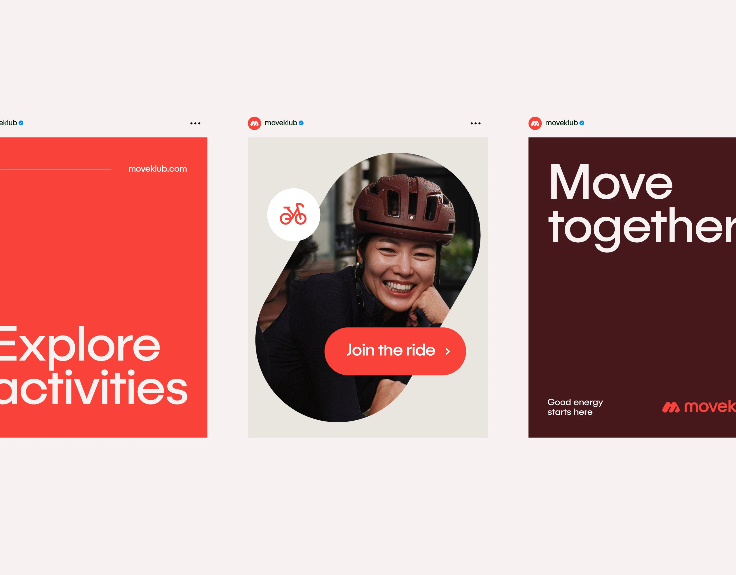The warm red sets the tone, bringing a feeling of presence and focus. Typography adds a modern and steady voice, while the rounded forms make the system feel approachable and balanced. Together, they create a visual language that feels active without being loud. Real moments, natural movement and small interactions bring the identity to life and make it feel honest.