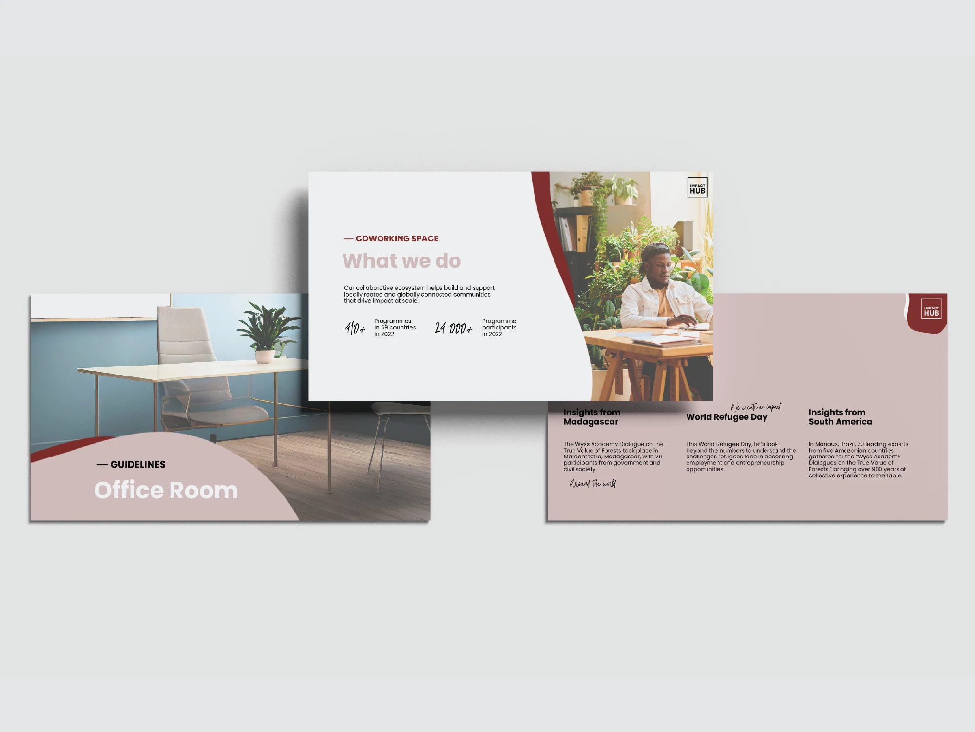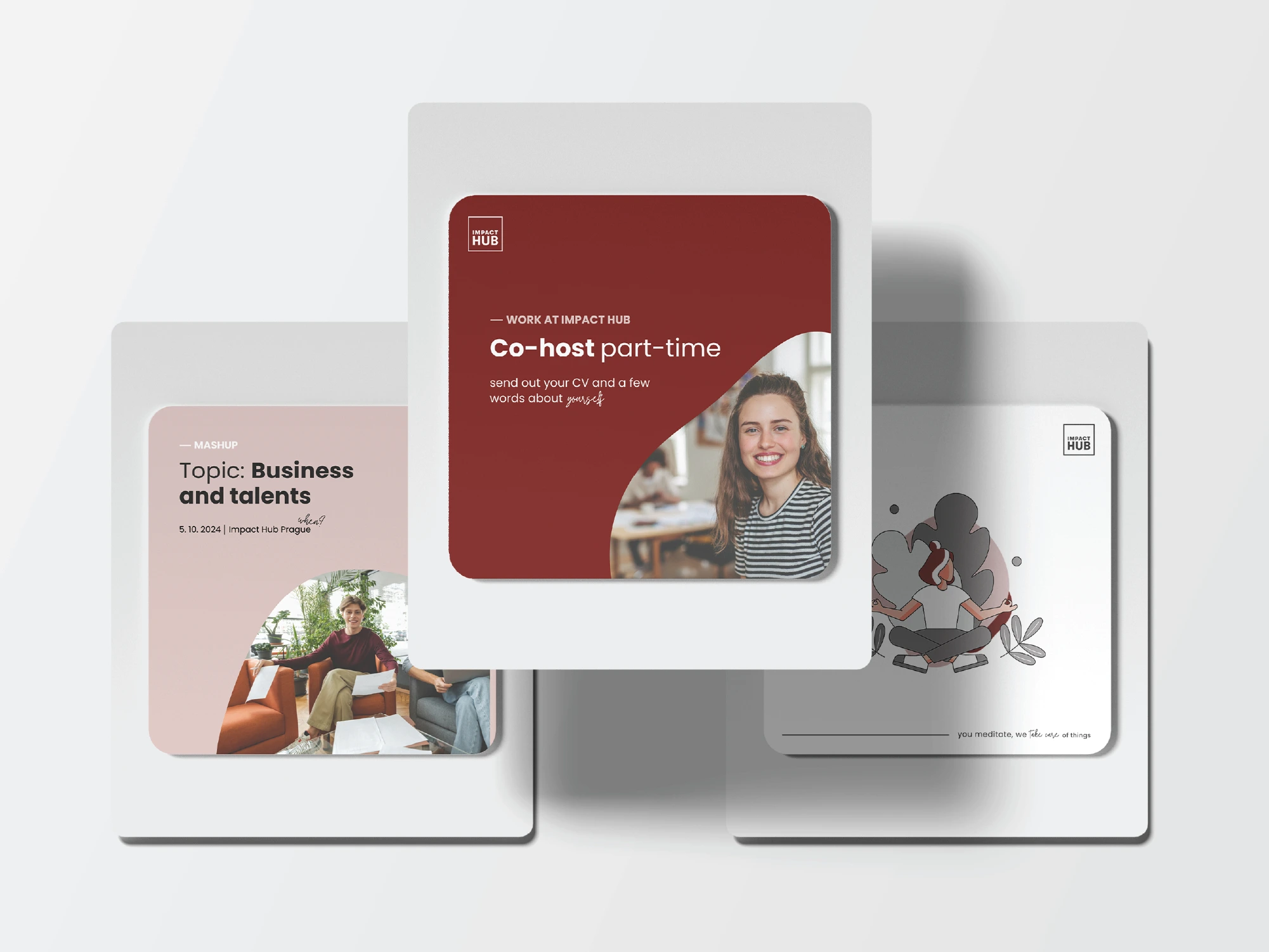 Together, my client and I decided to choose Canva as a platform to create a template library. Its functions are adapted to users of different abilities and it makes working with it so simple. The next step was designing the templates themselves using graphic elements, colors, illustrations, and brand fonts. I created templates with a clean and memorable layout in several options. They are aligned with the brand's visual style and give a cohesive impression. Templates are now used across social networks, for event presentations, or for communicating in the open space with posters.