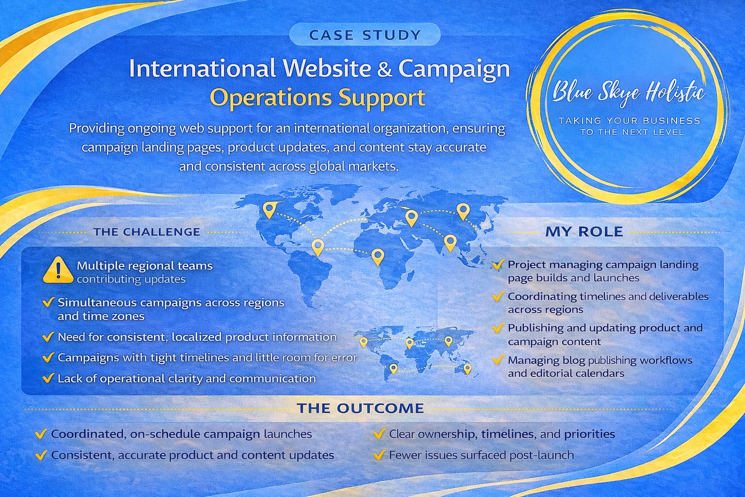 Managed landing pages, product updates, and blog publishing across multiple regions, helping international teams stay aligned, organized, and on schedule.