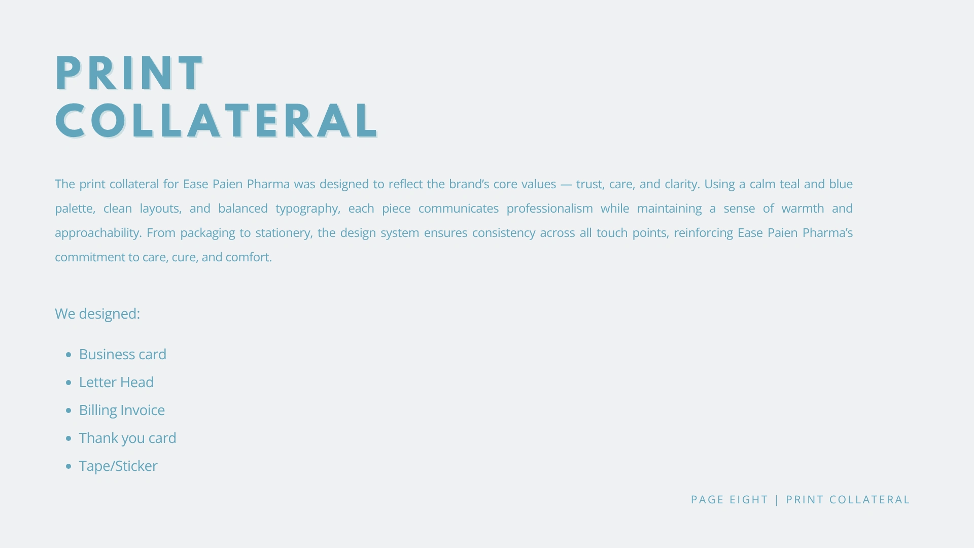 The Ease Paien Pharma branding project focused on creating a visual identity that communicates trust, care, and scientific credibility.