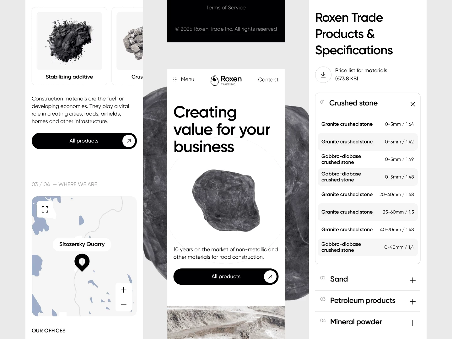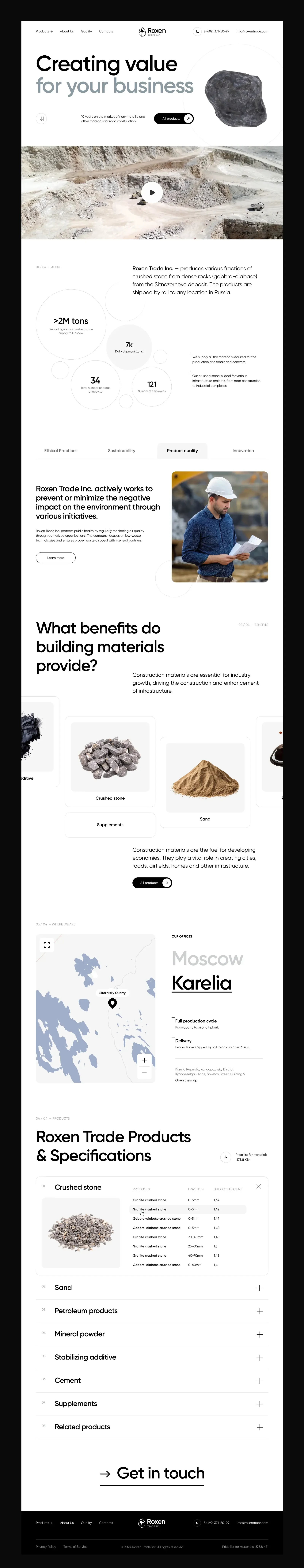 Delivered a website for a construction materials company, combining brand presentation with a clear catalog structure and industrial visual language.