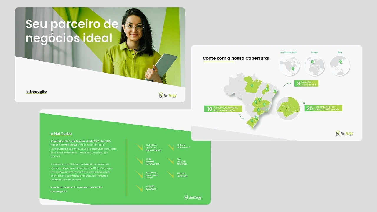 The Challenge: Net Turbo Telecom, an Internet and Cybersecurity provider, had a functional 20-slide presentation, but the design did not match the quality of their services. The original deck looked too basic and outdated. They needed a visual upgrade to convey authority, safety, and high value to their corporate clients.